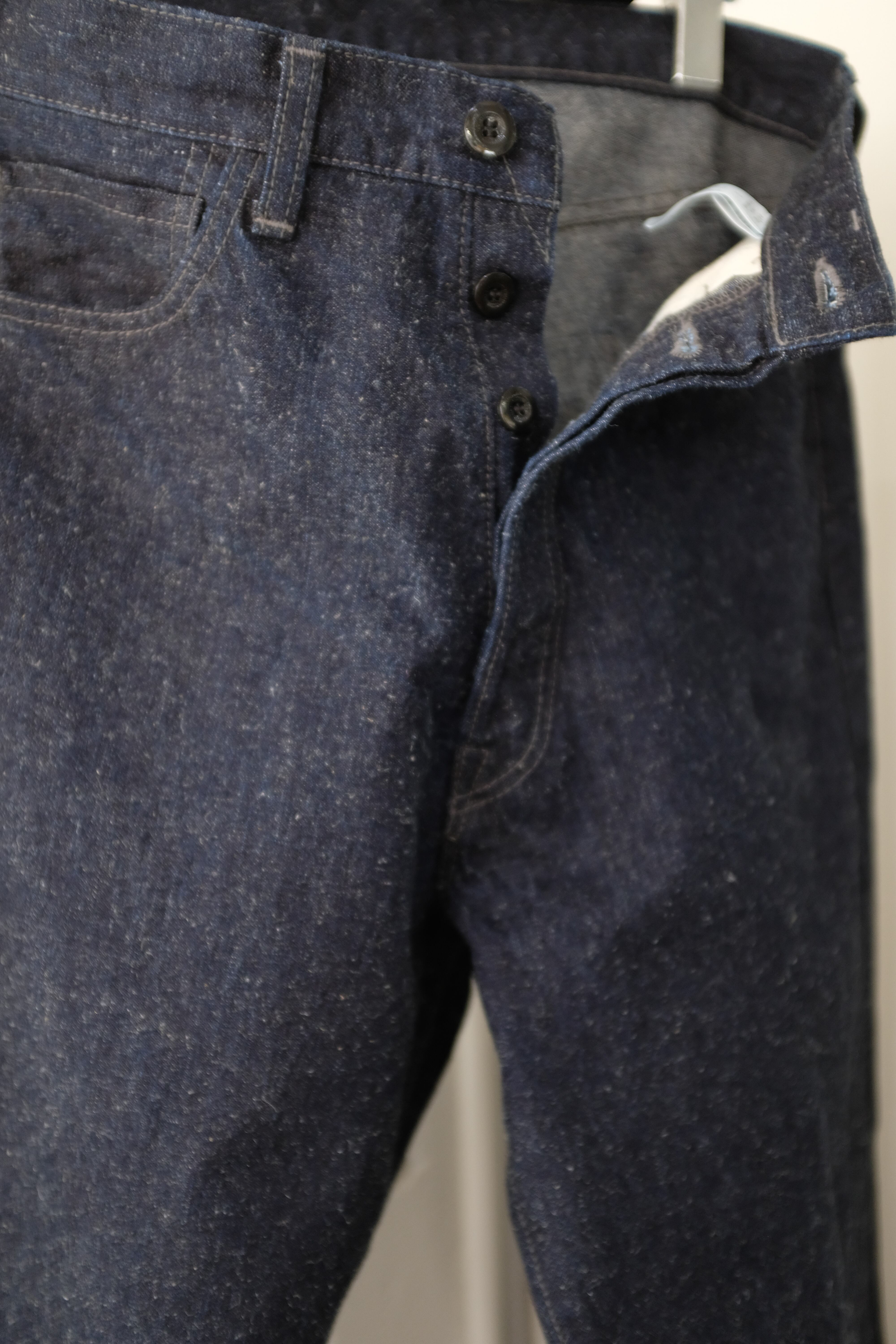 今シーズン新たに開発されたcotton hemp素材のデニム。生地は程よい厚みでハリ感がありサラッとした肌触りが心地良く、夏に向けても履きやすくなっています。