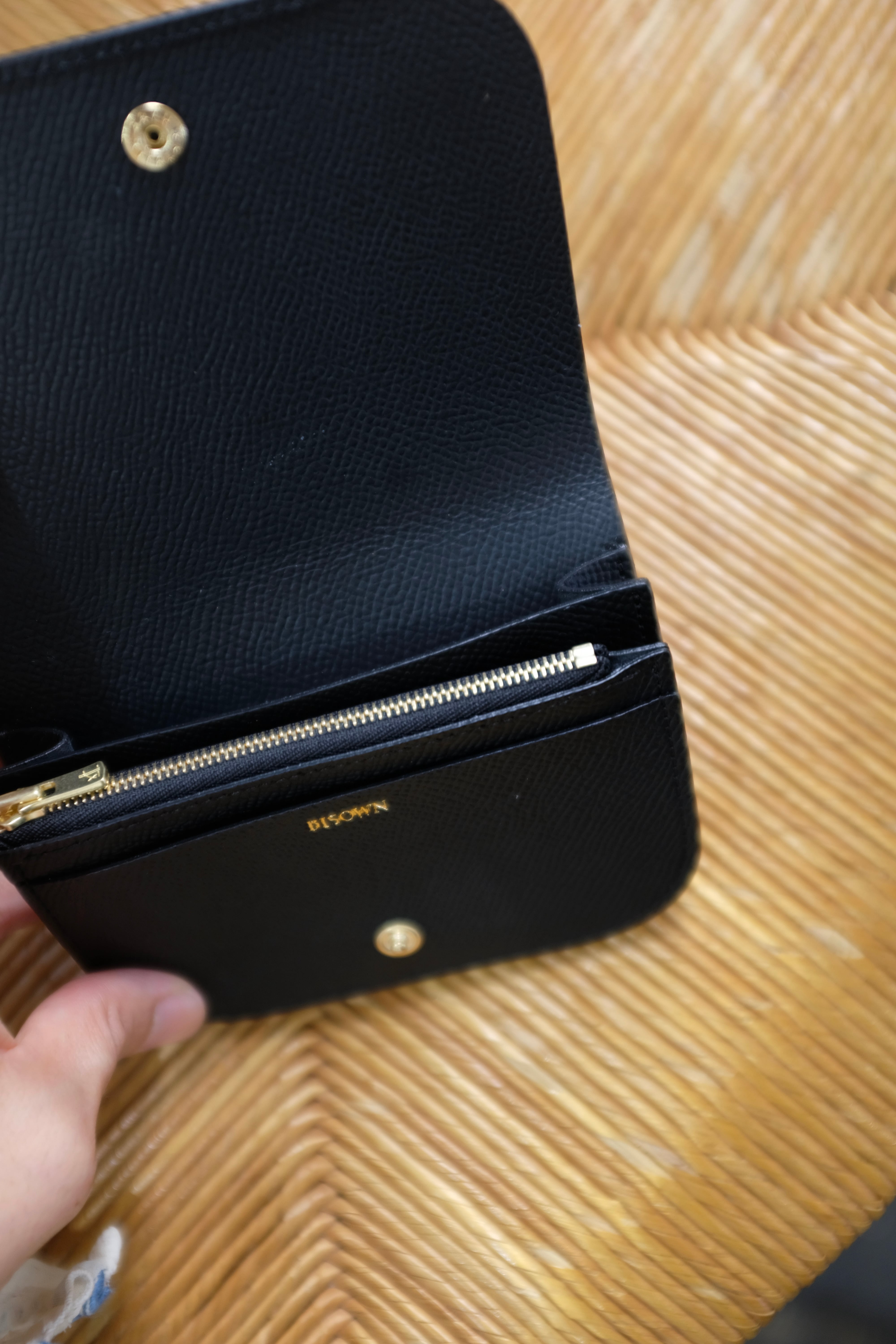 出し入れしやすい縦型に使用する仕様で小銭、カードもたっぷり入るようにしたコンパクト財布。
