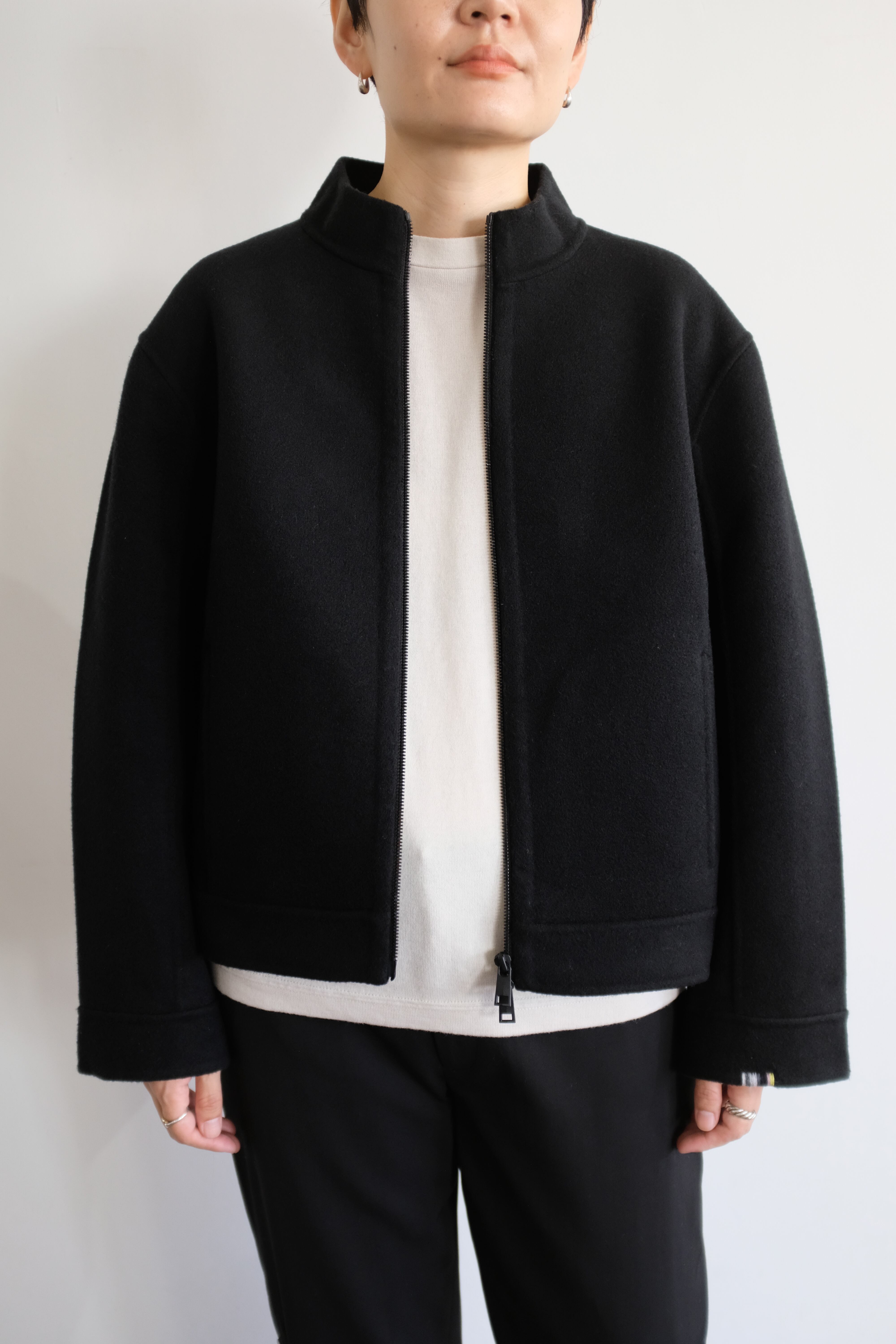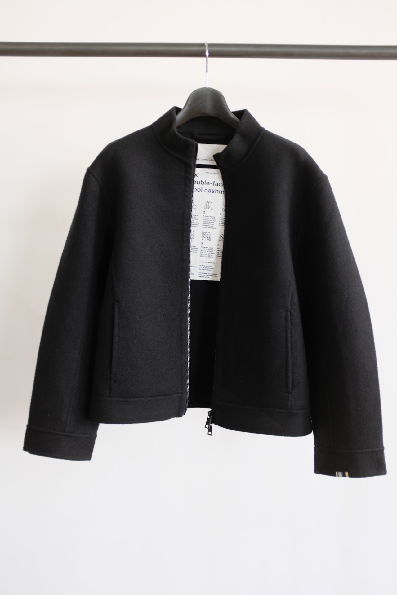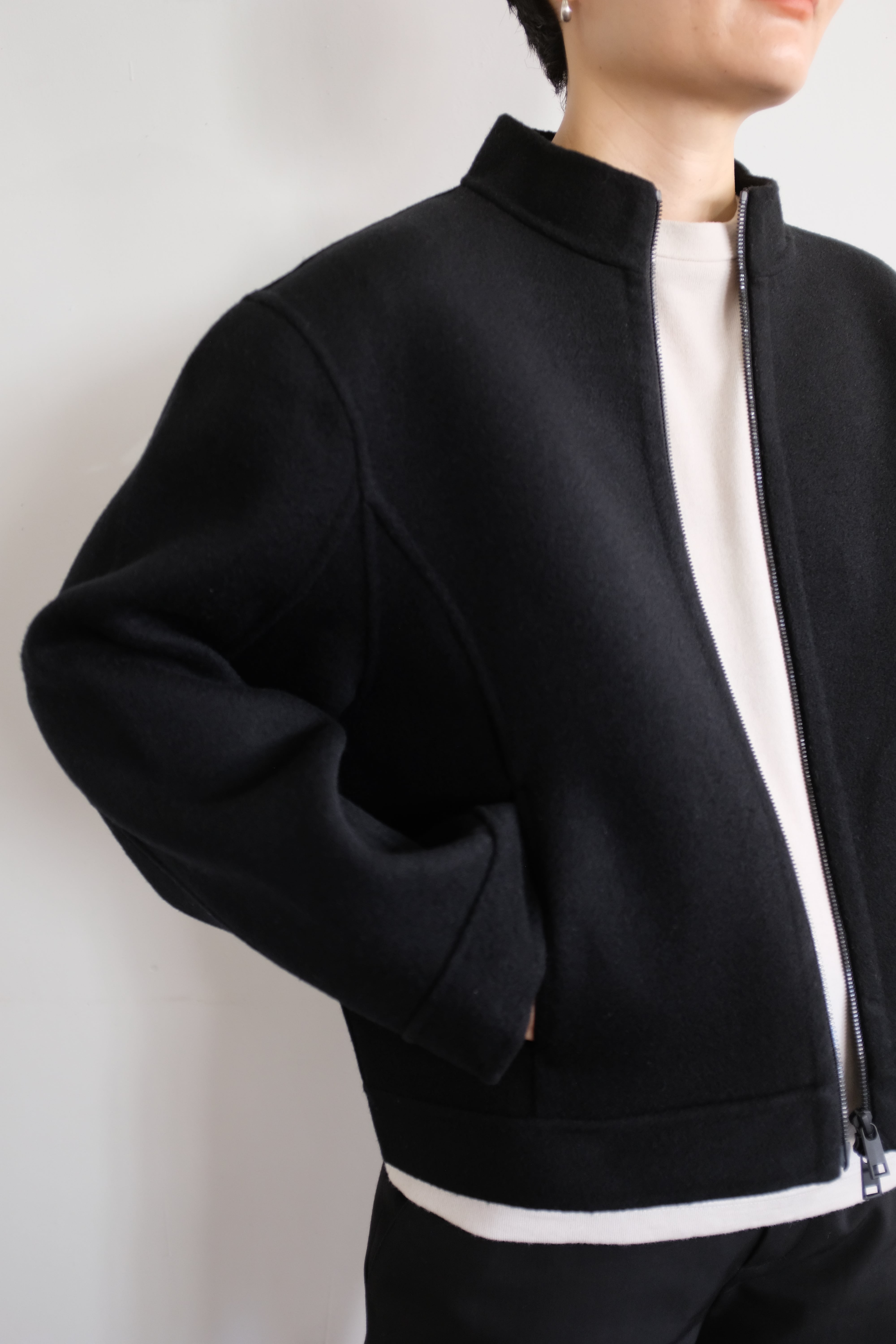 デザインはクラシックなモーターサイクルジャケットからきておりクロップド丈でスポーツモードな雰囲気のスタイルは、マットなブラックのファスナーと立ち襟が特徴です。
