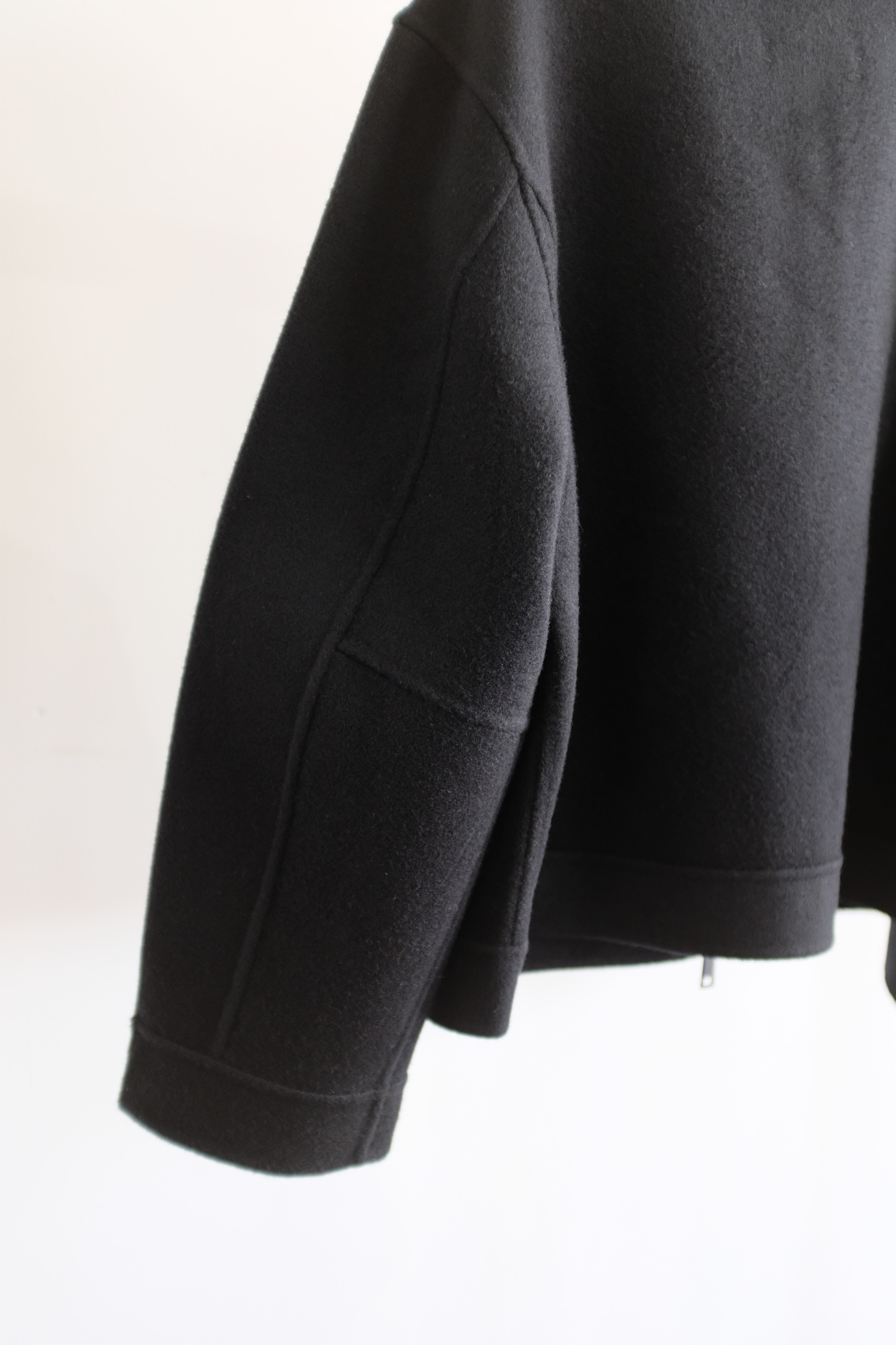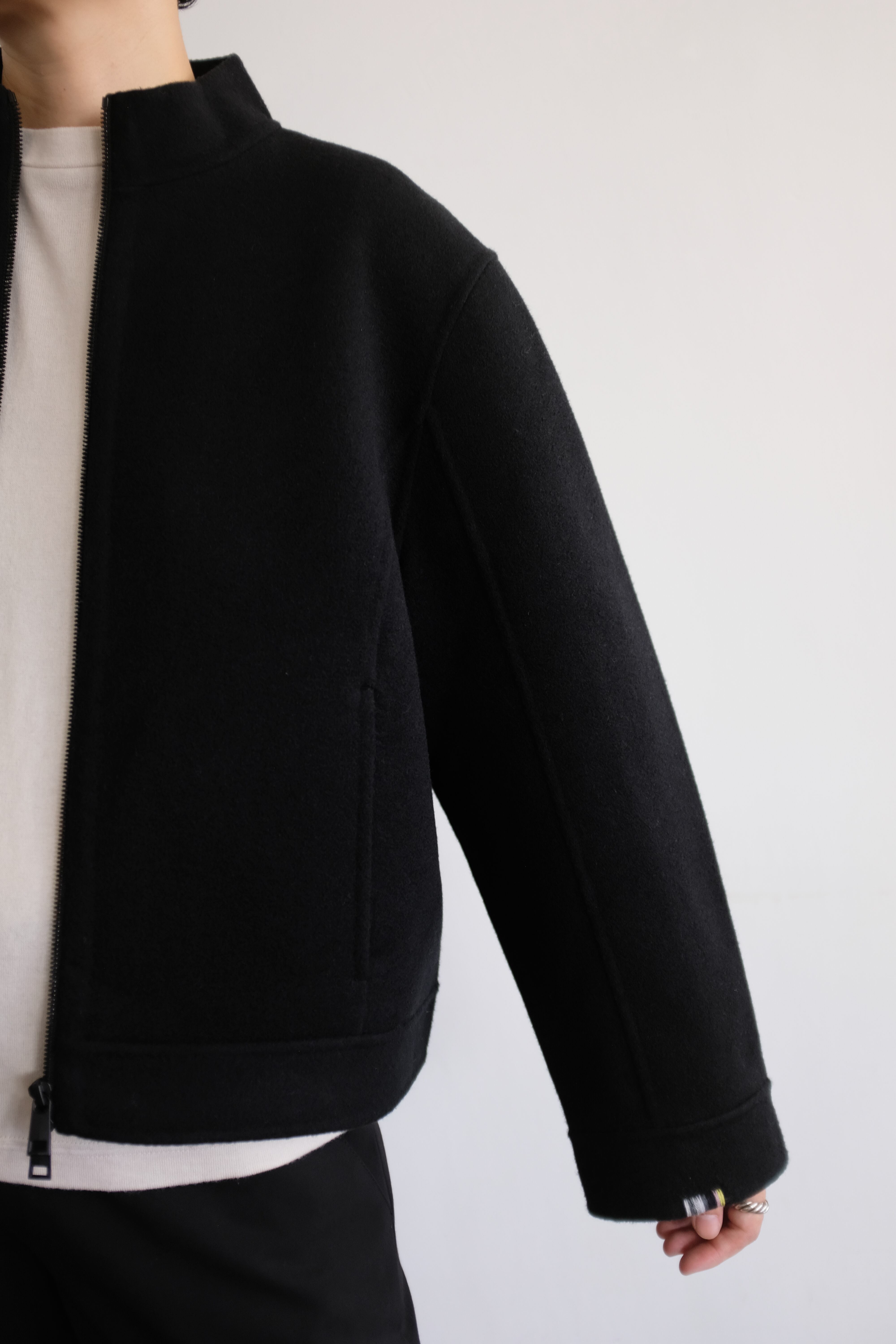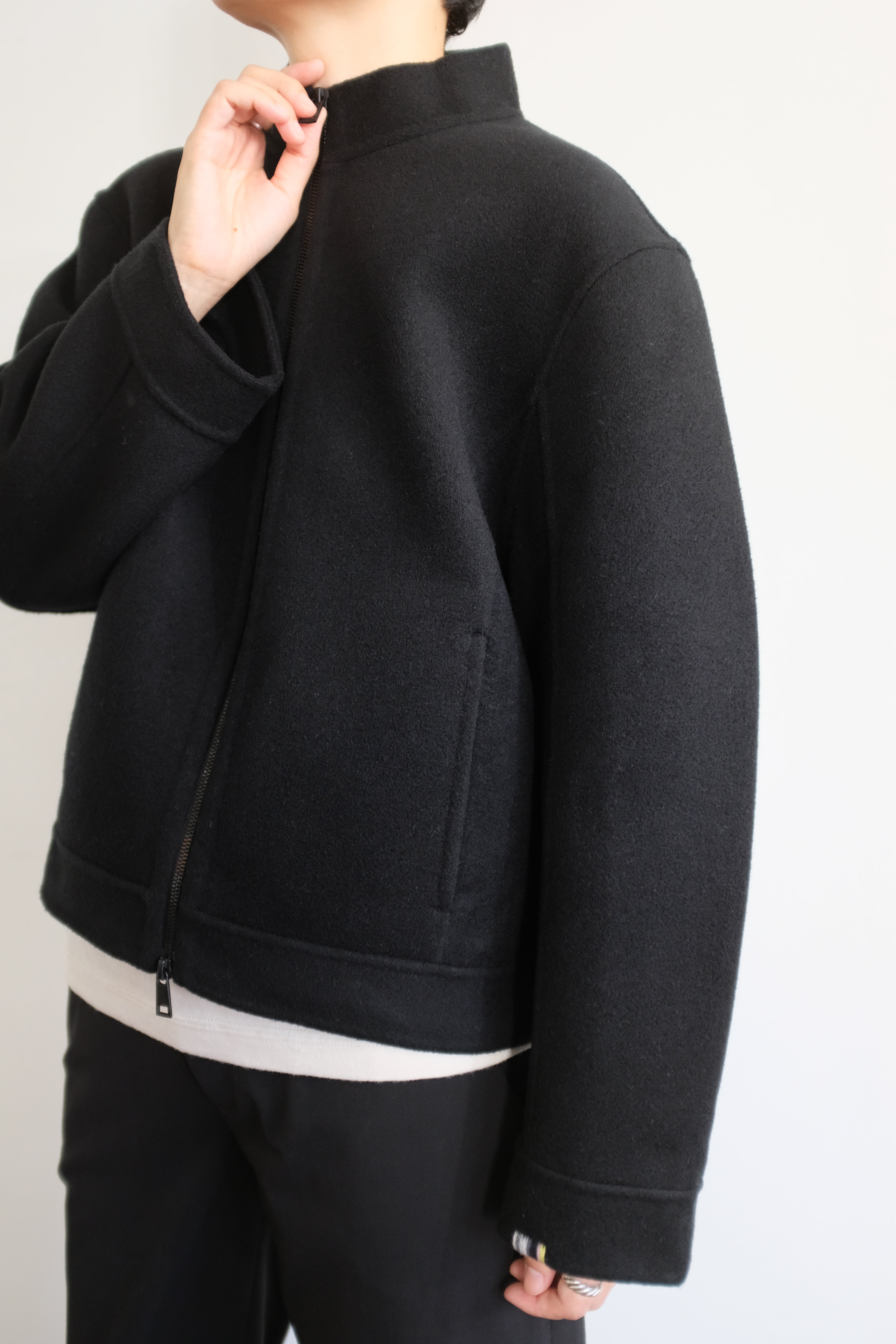 デザインはクラシックなモーターサイクルジャケットからきておりクロップド丈でスポーツモードな雰囲気のスタイルは、マットなブラックのファスナーと立ち襟が特徴です。