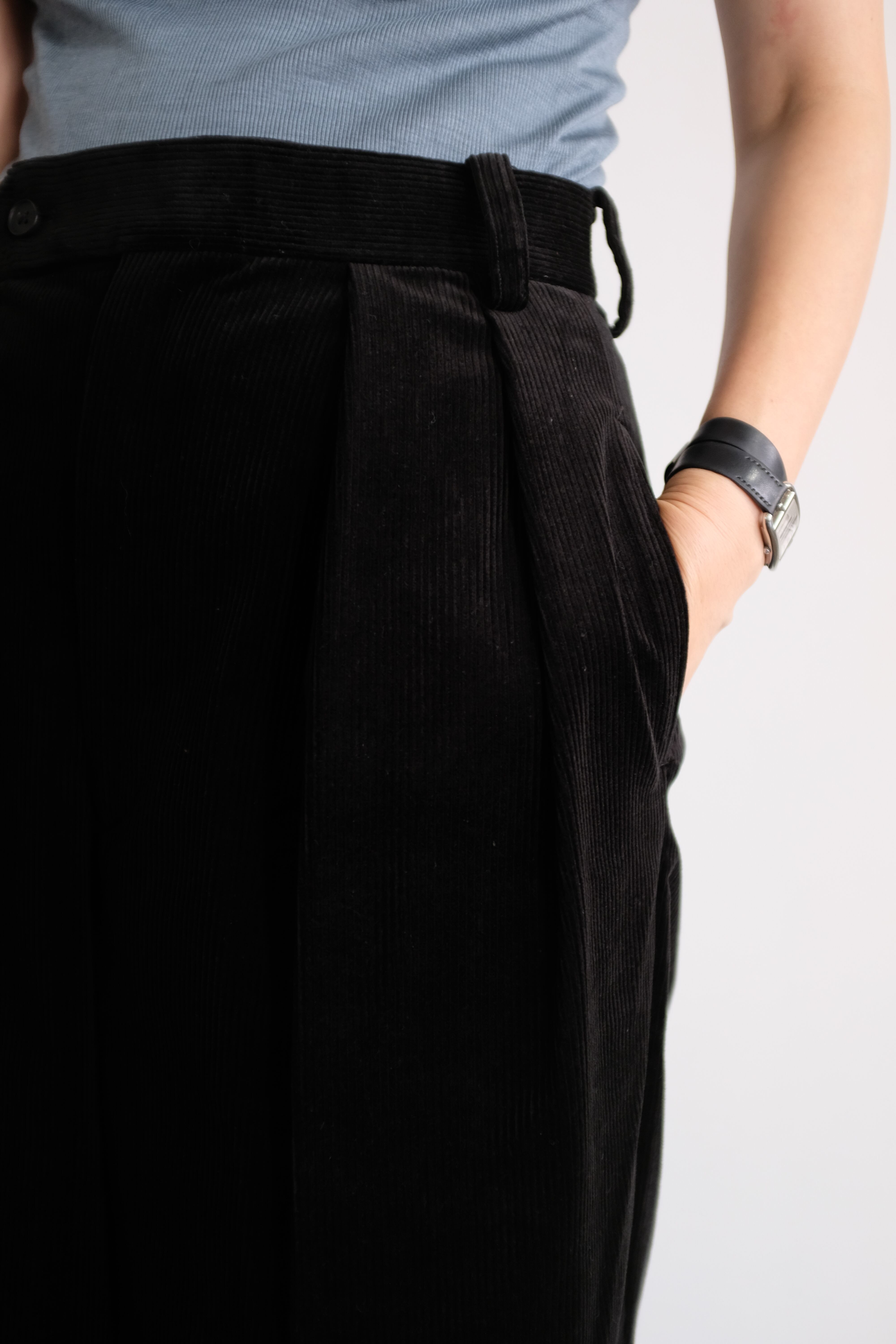 [BISOWN]CORDUROY2TUCK WIDETROUSERS / BLACK
