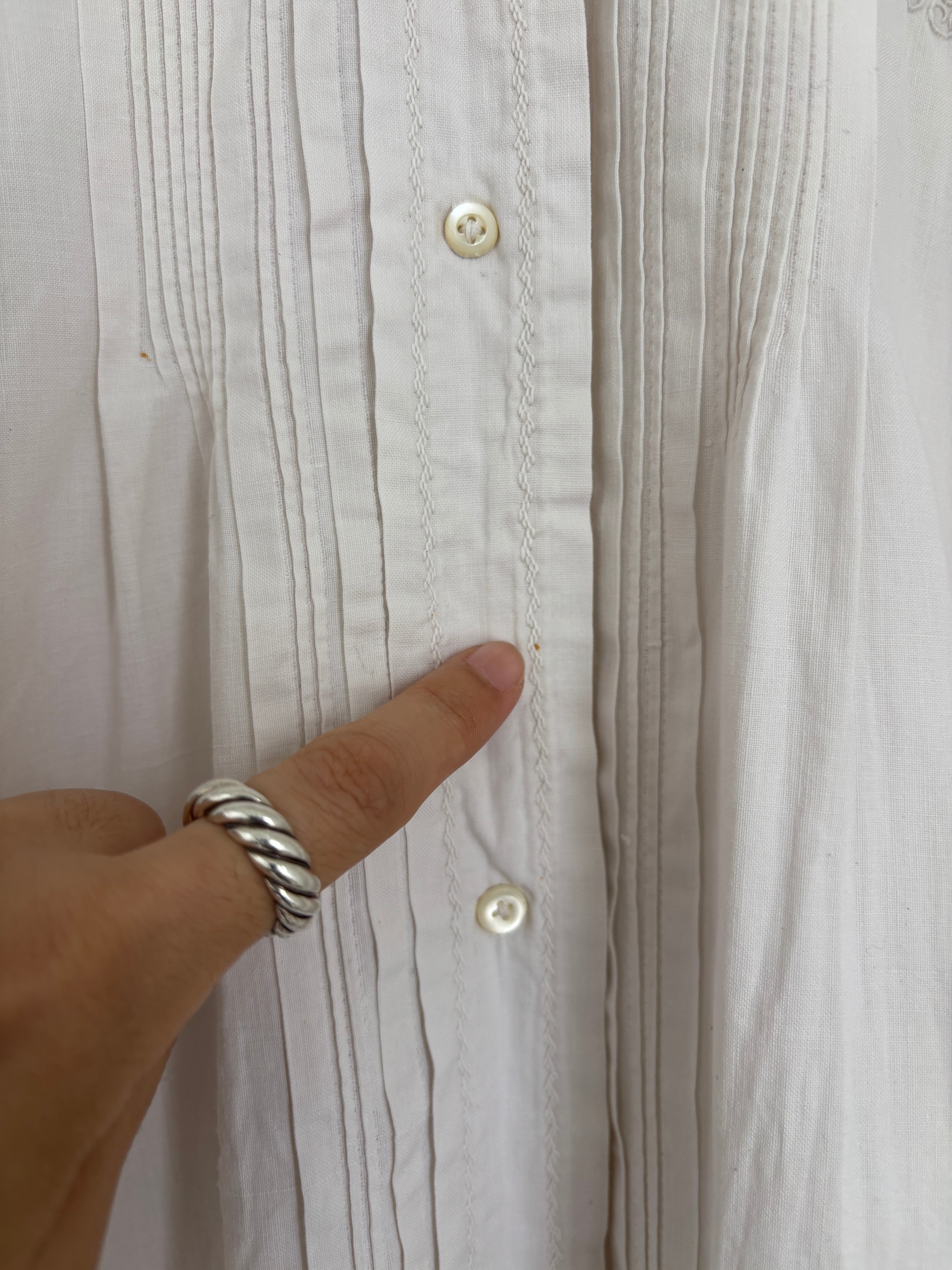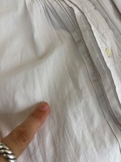 襟や袖のレース、胸元のプリーツや肩のギャザーが大変美しく、手仕事を感じられる一着。