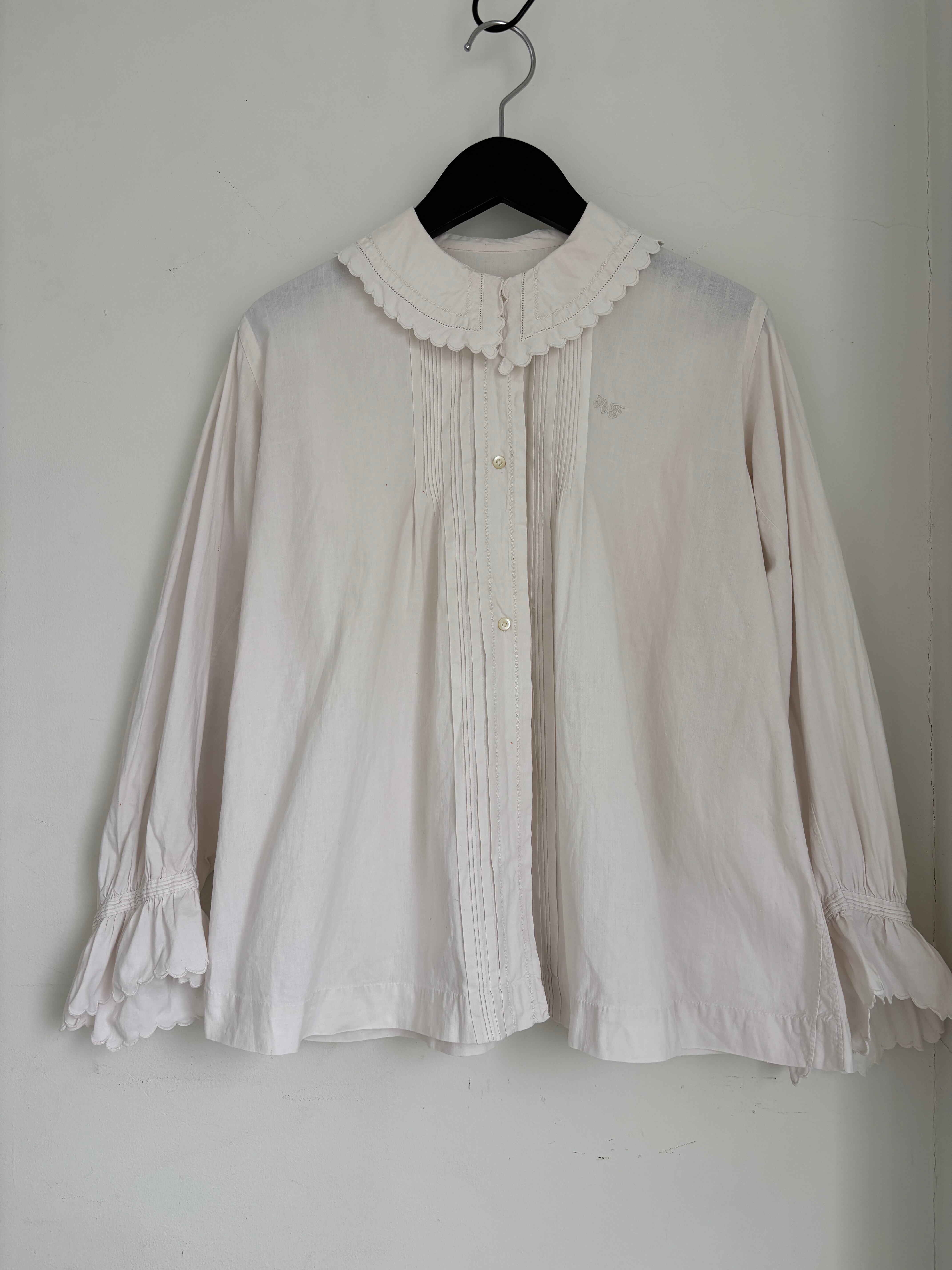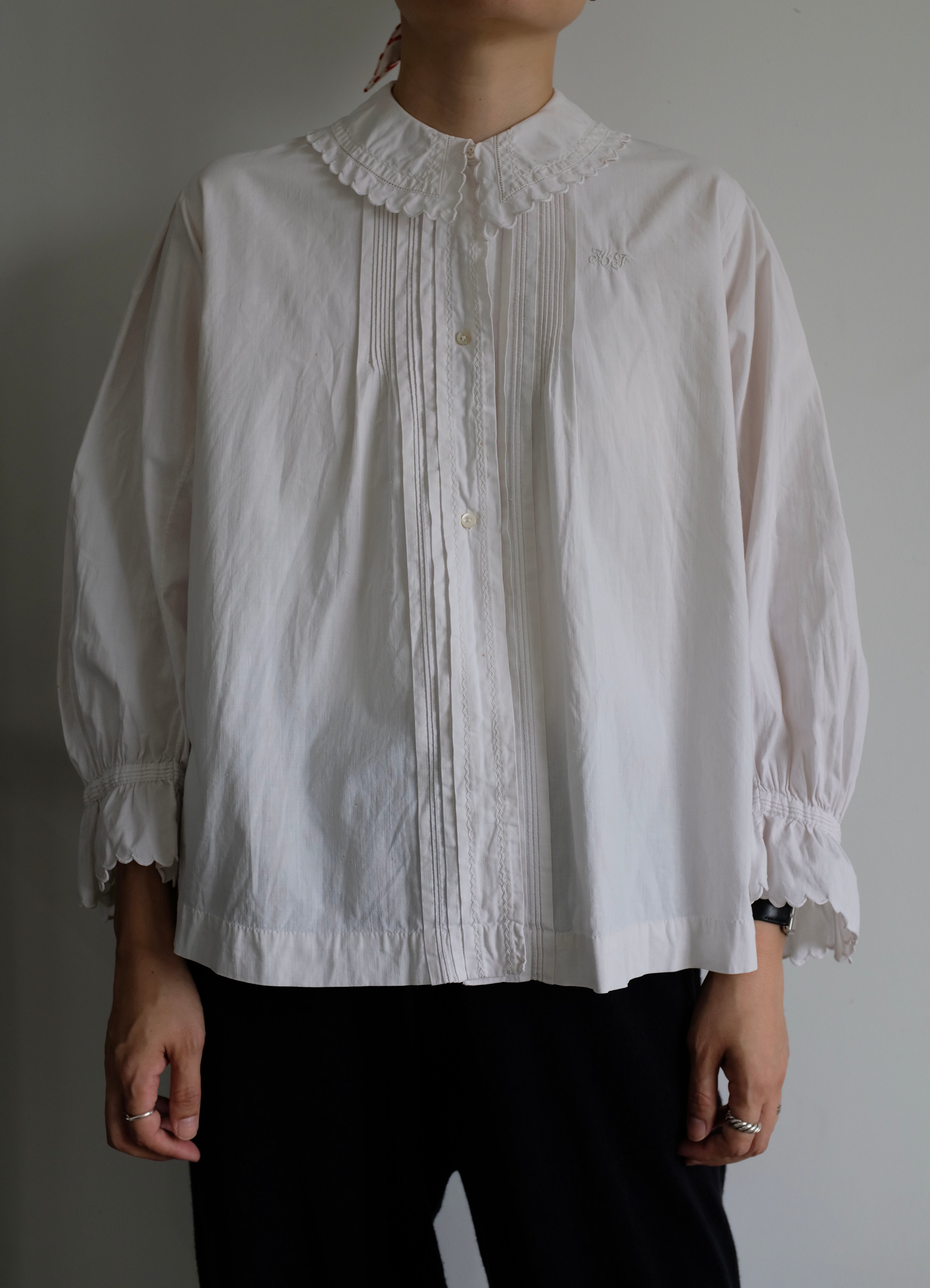 フランス1920年代頃のアンティークレースコットンブラウス。