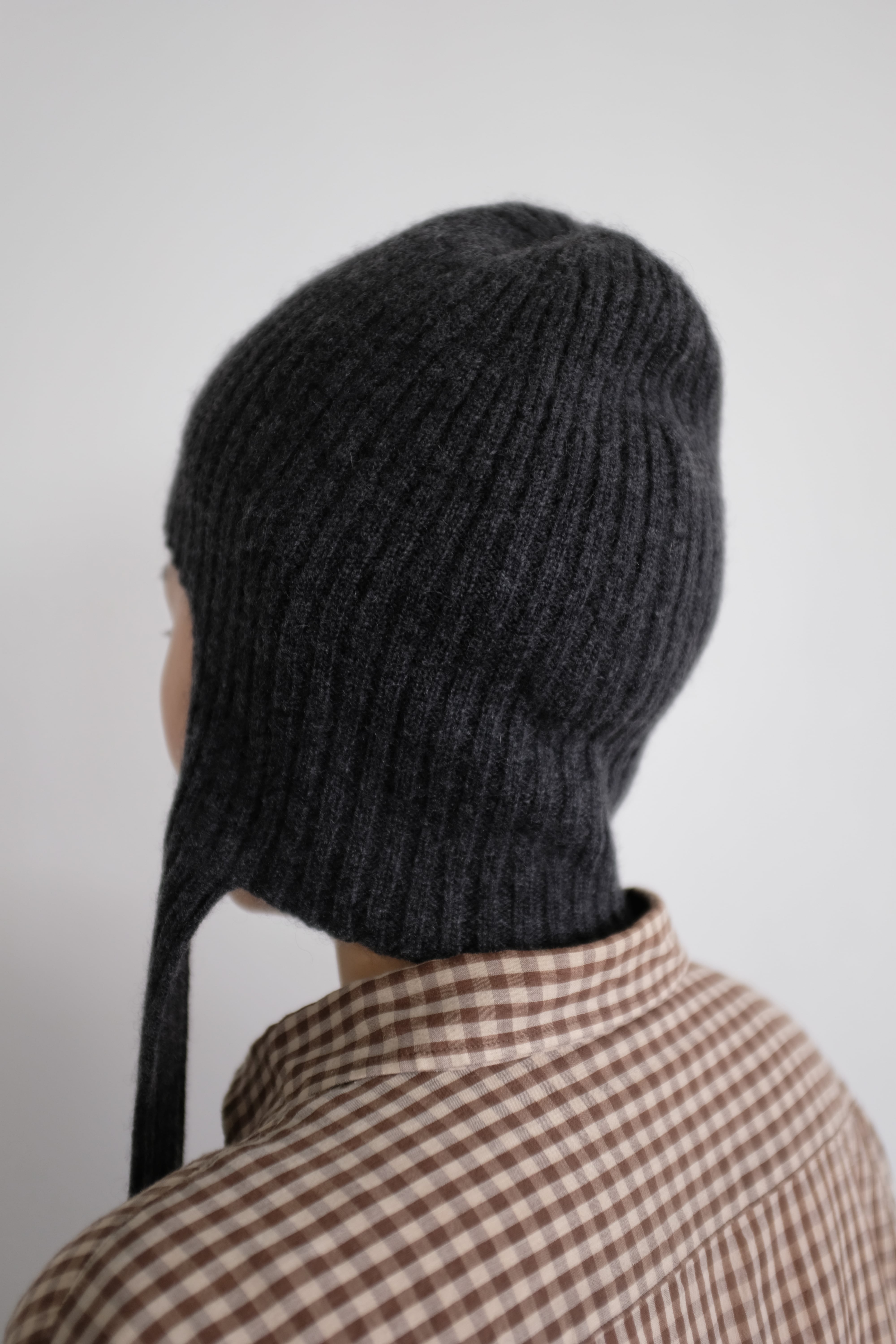 [babaco] Cashmere Ribbed Knit cap / Charcoal