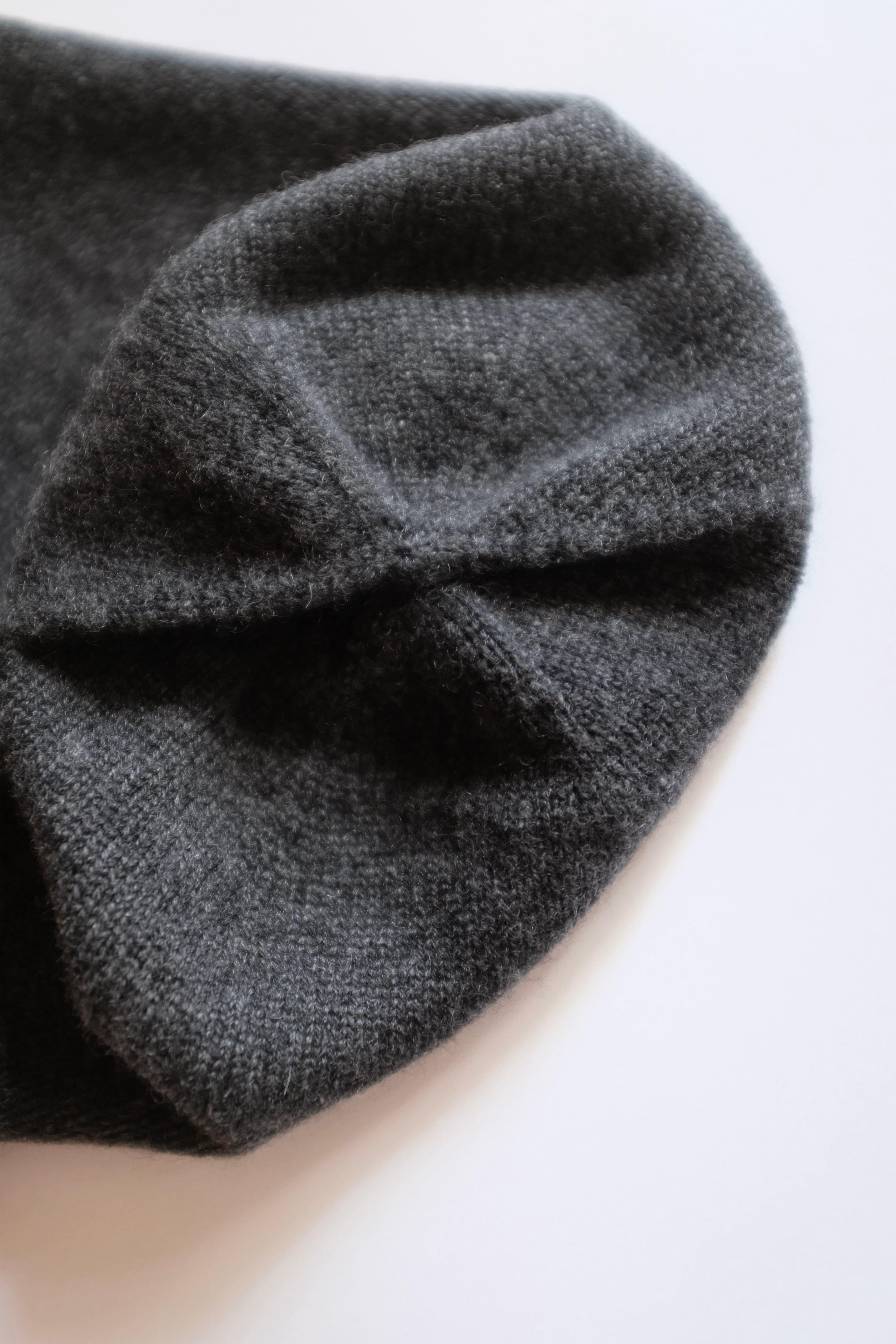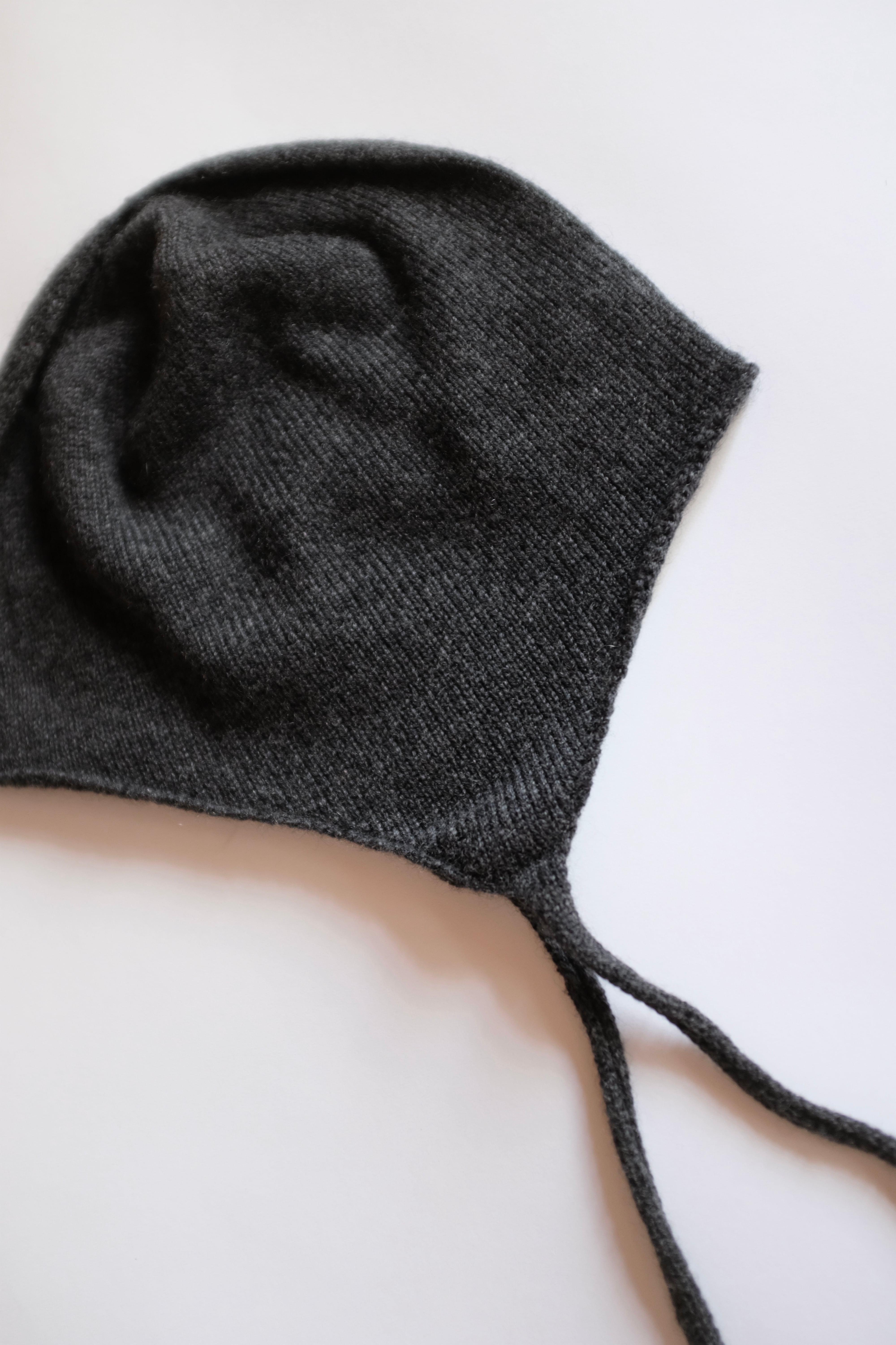 コンパクトで頭にフィットする、細い紐が特徴のホールガーメントのニットキャップです。