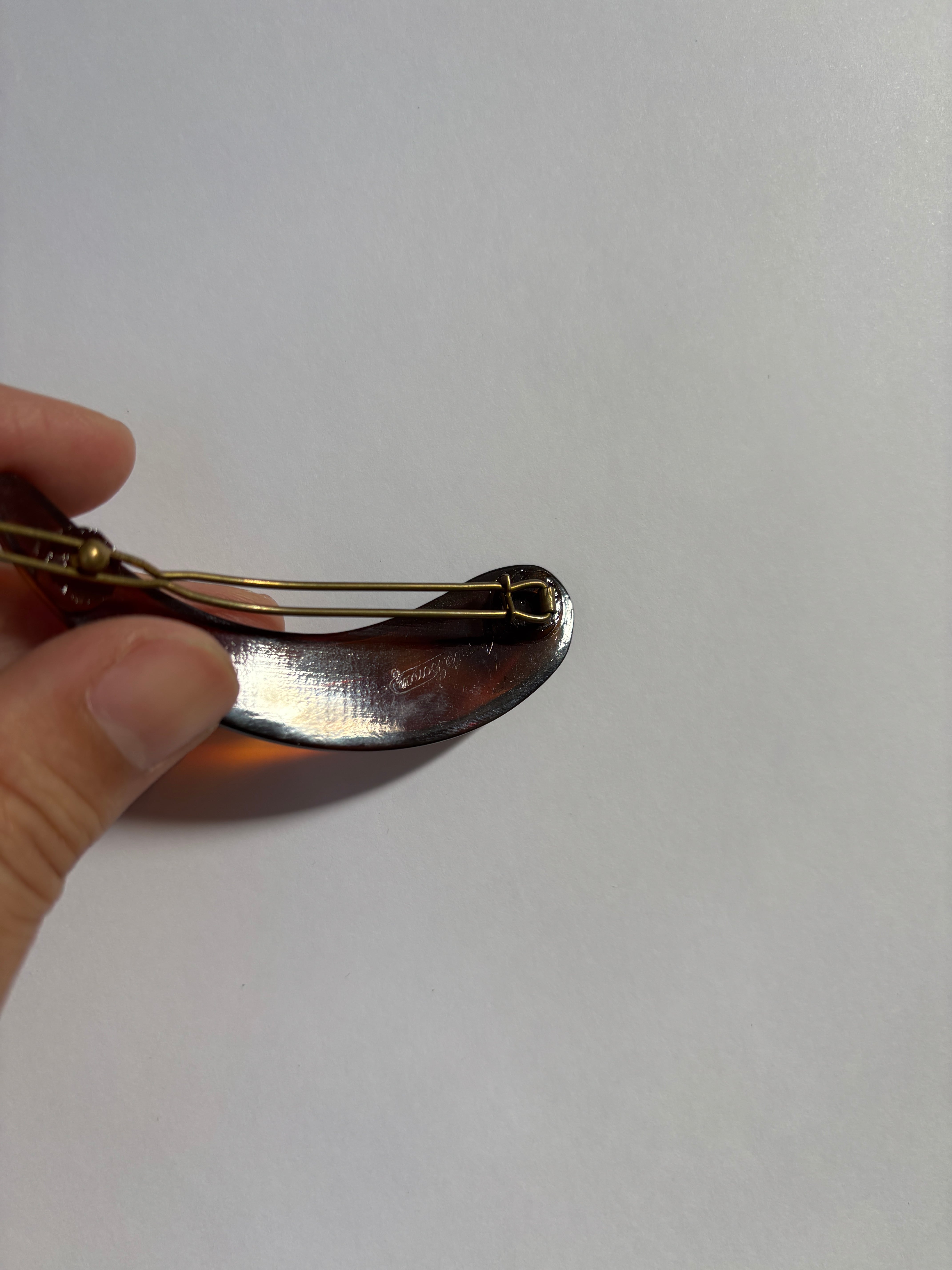 裏側に刻印付き。セルロイド製で上質感もあり大変作りも綺麗なお品です。