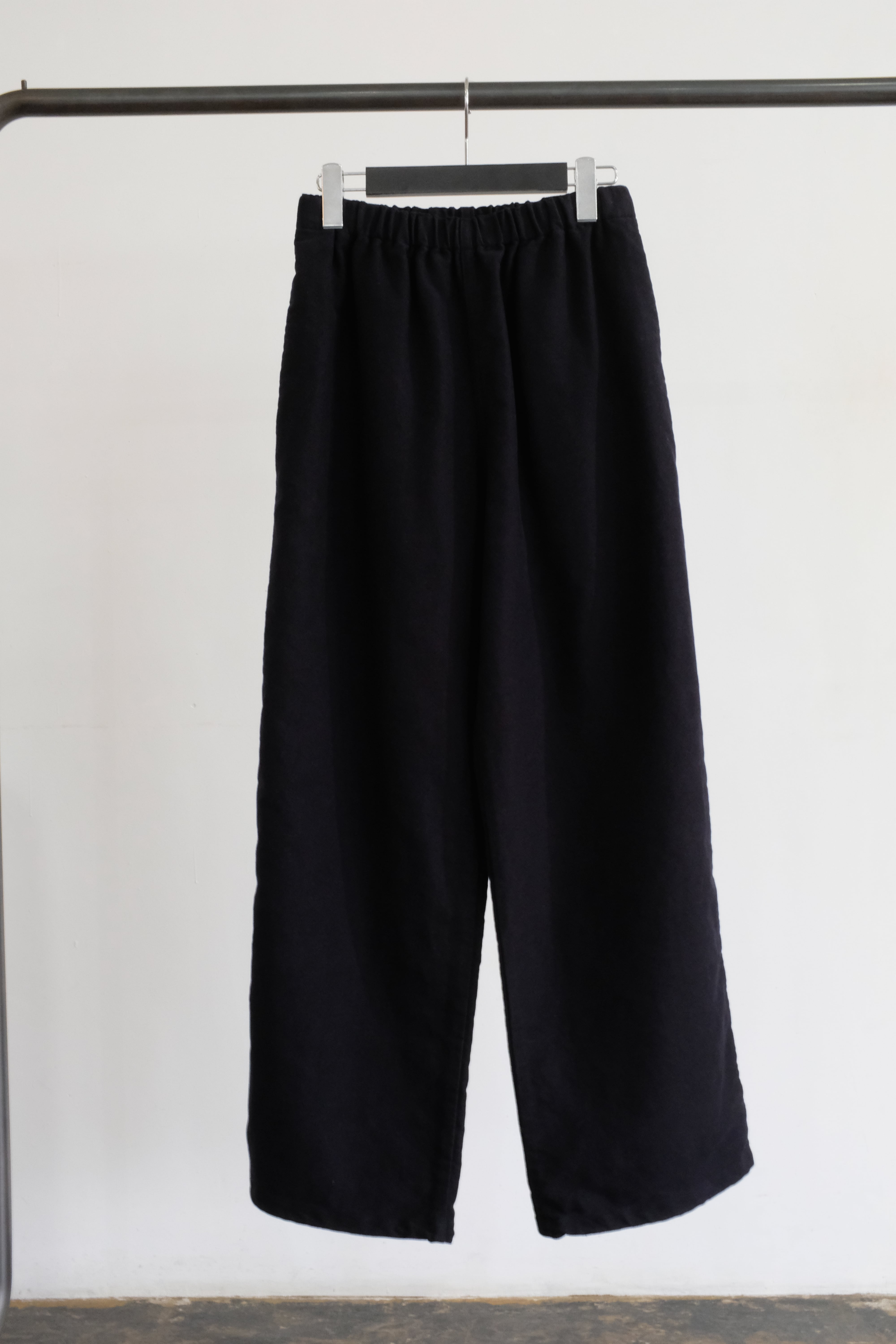 ウエストドローコードなので様々な体型の方が着られるストレートシルエットのイージーパンツです。