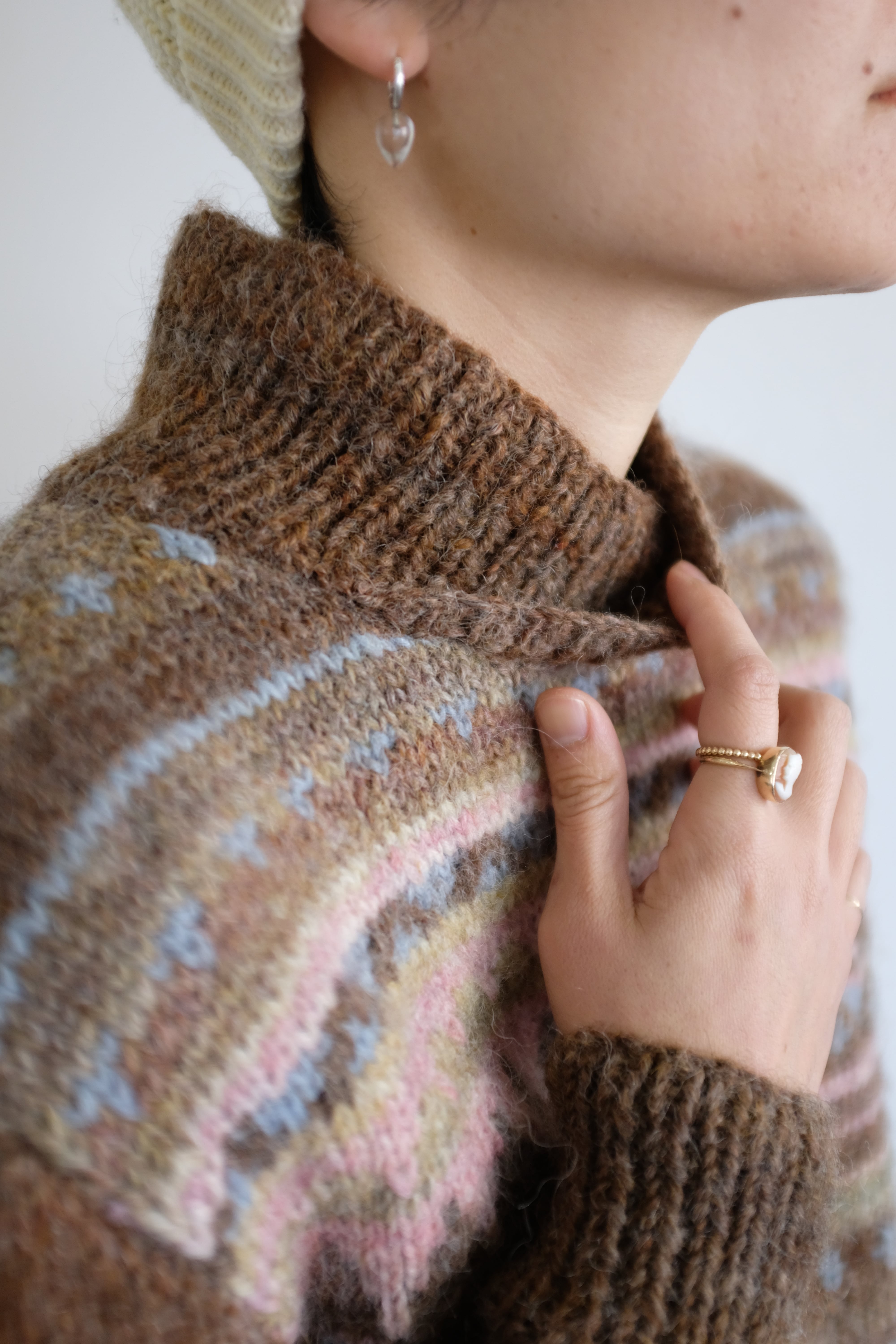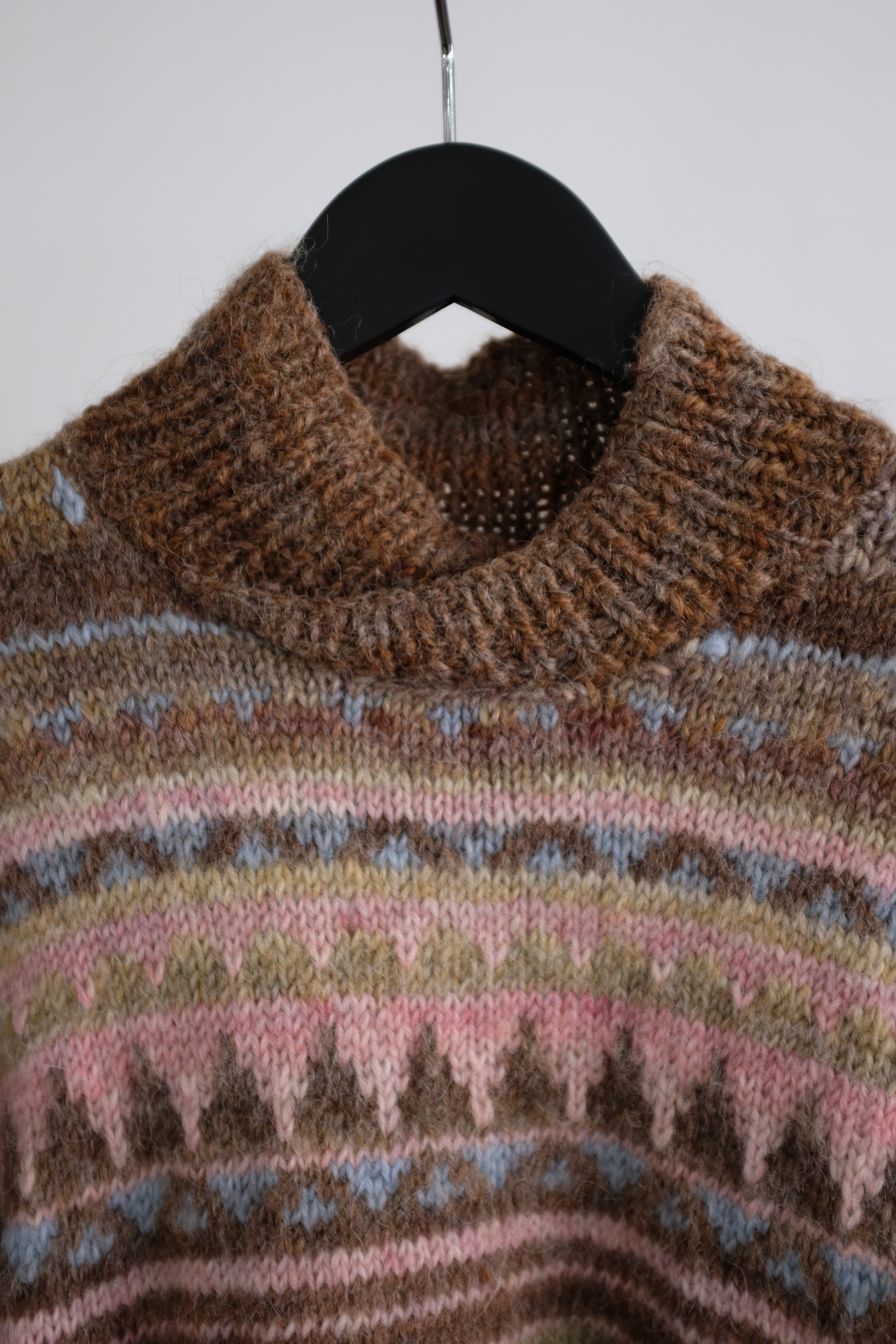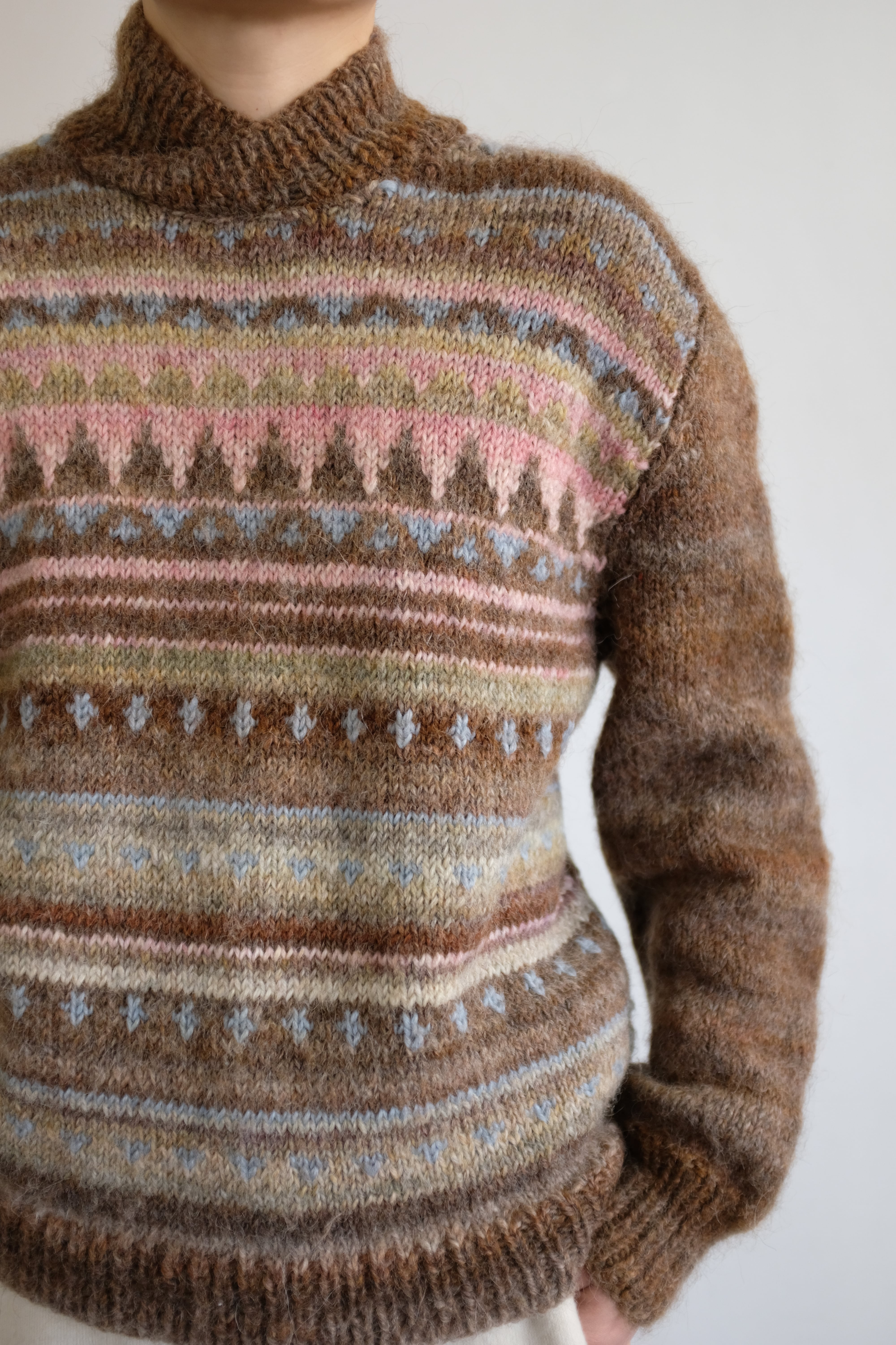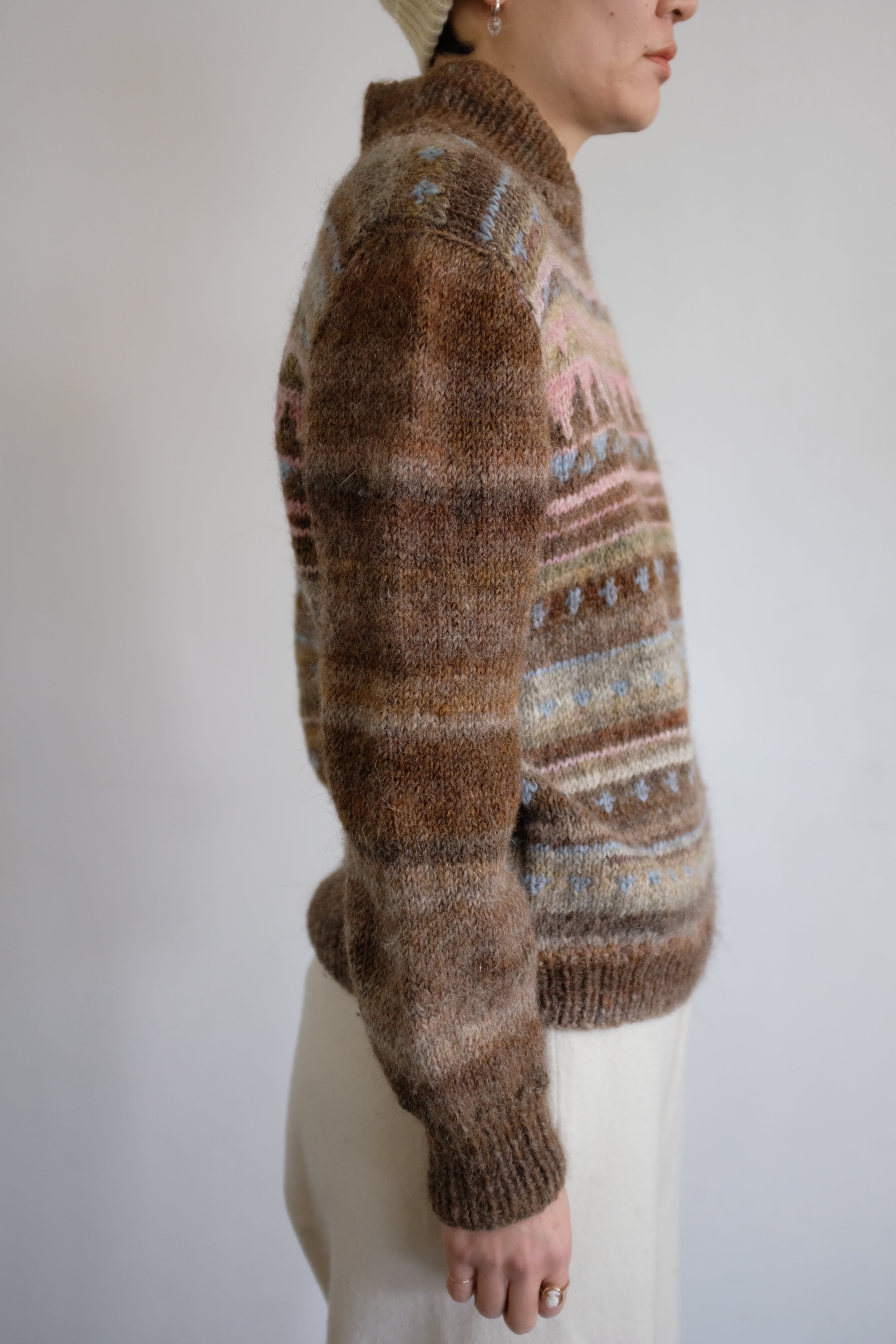 編み柄や柔らかな配色が素敵なモヘアのハンドニット。