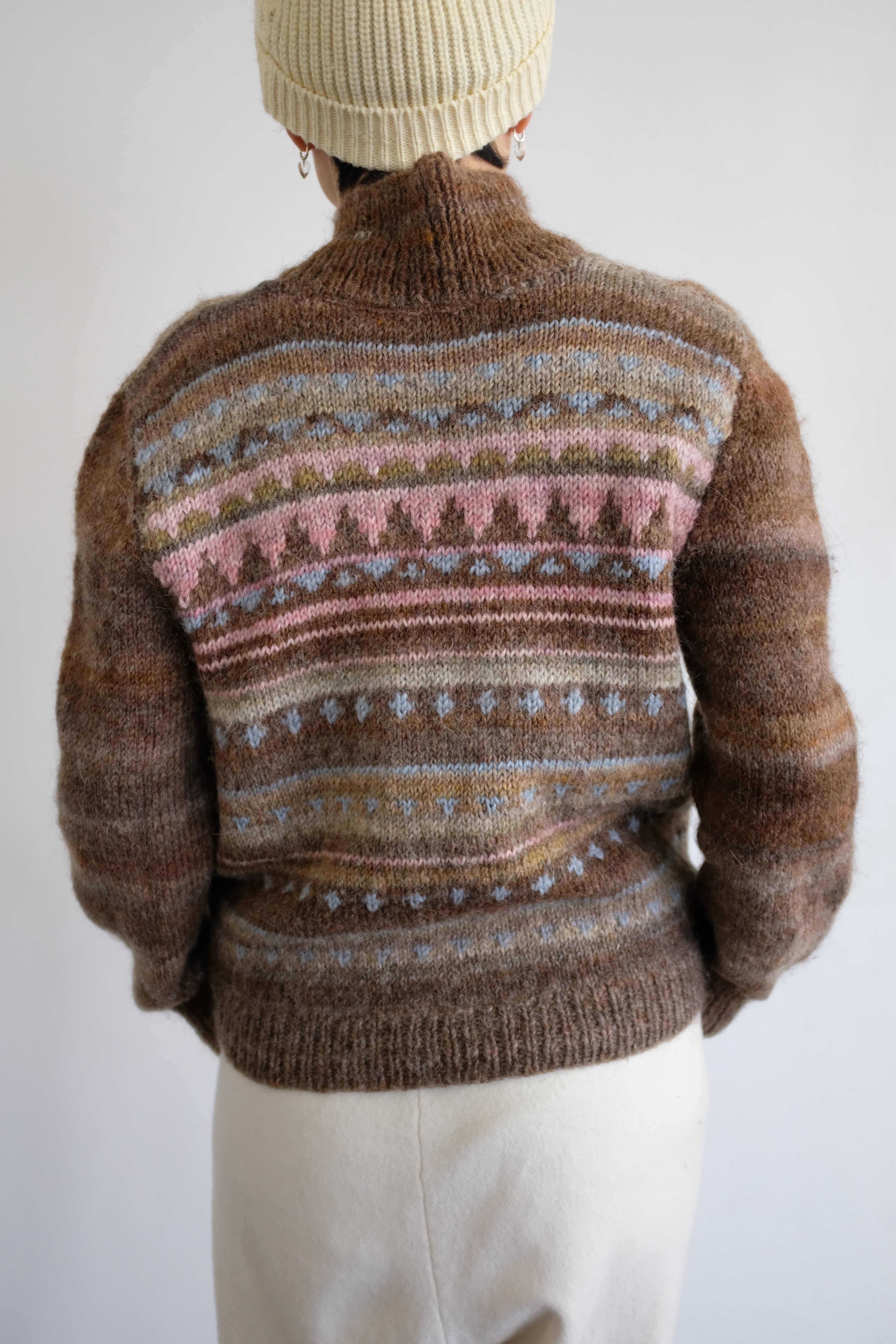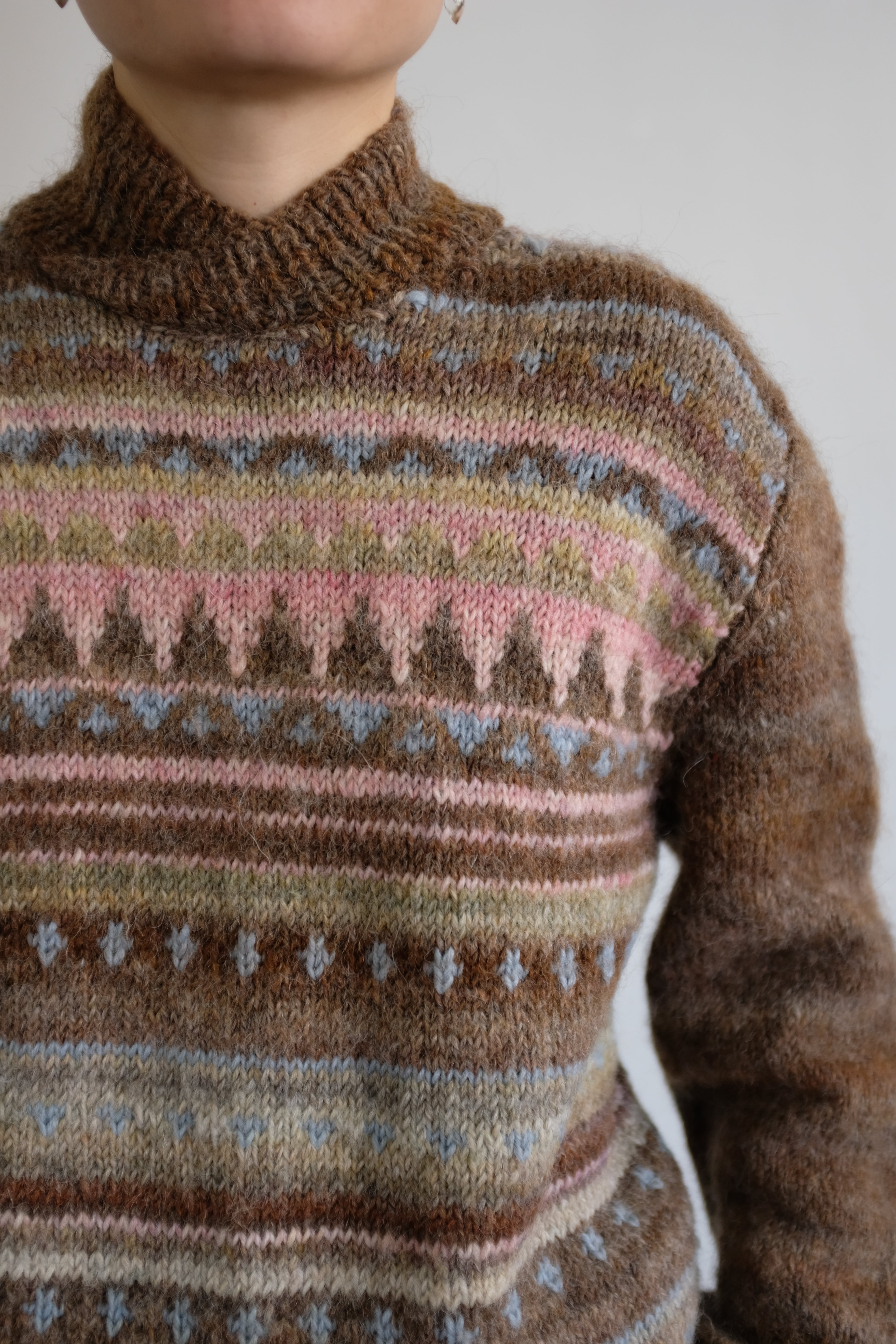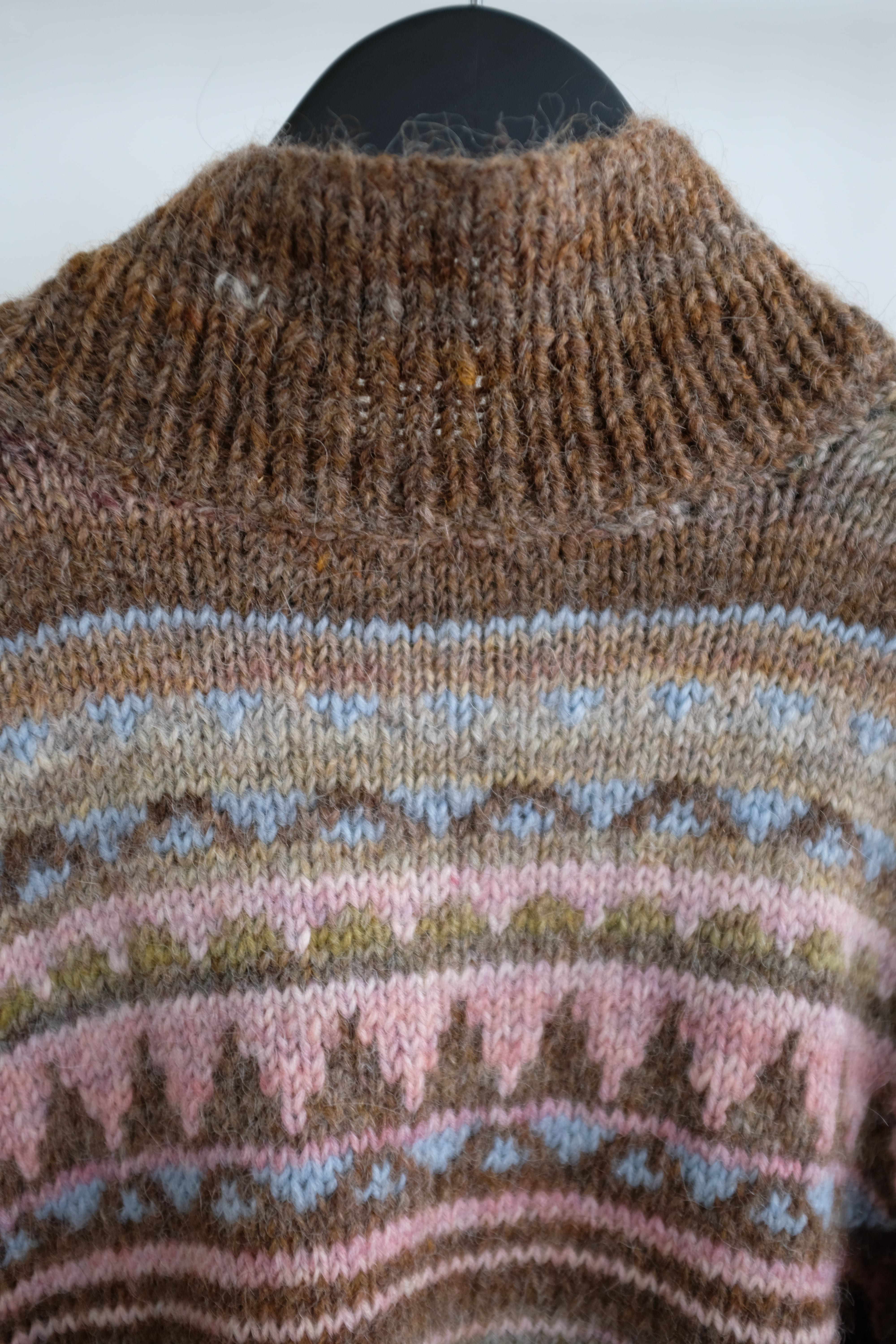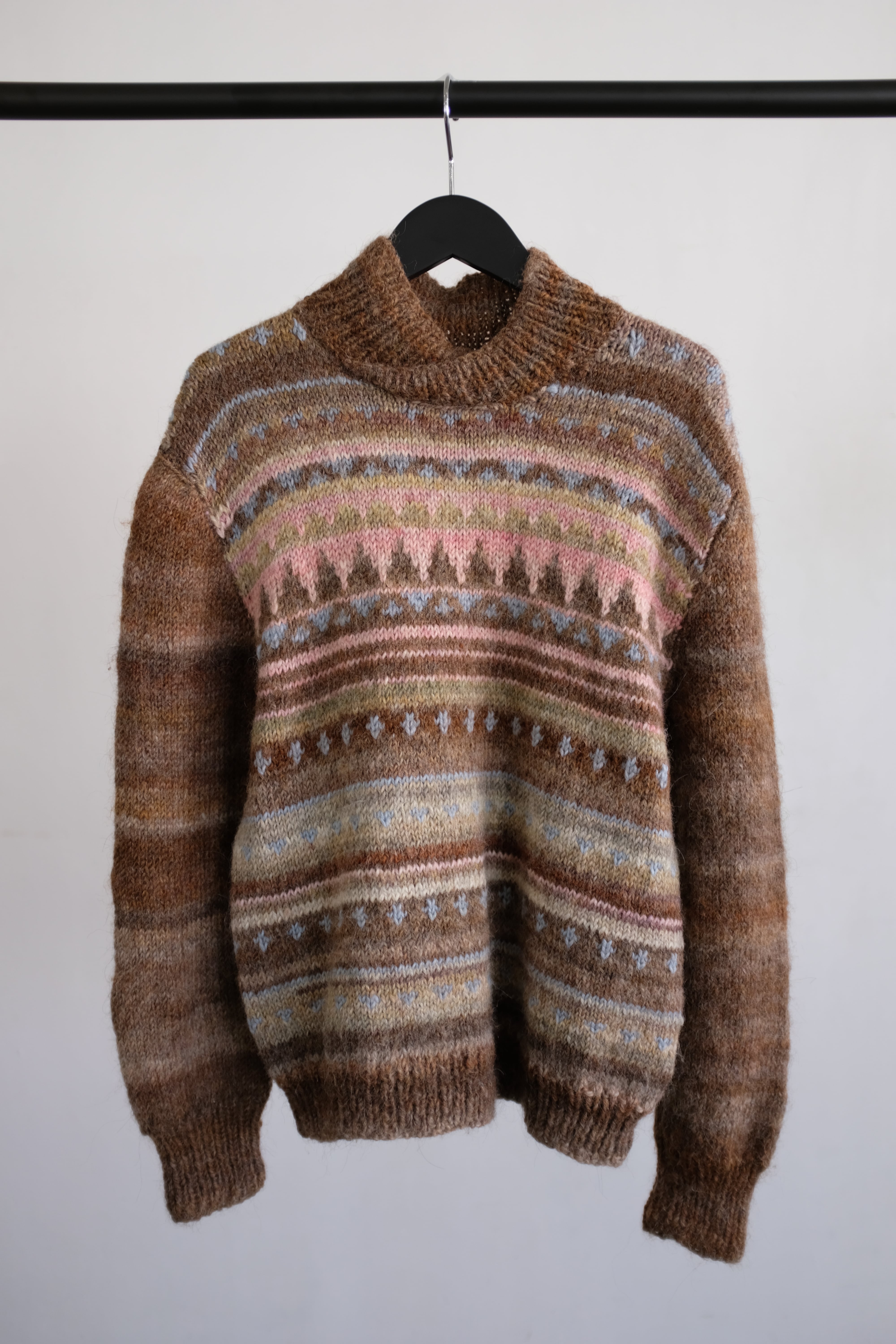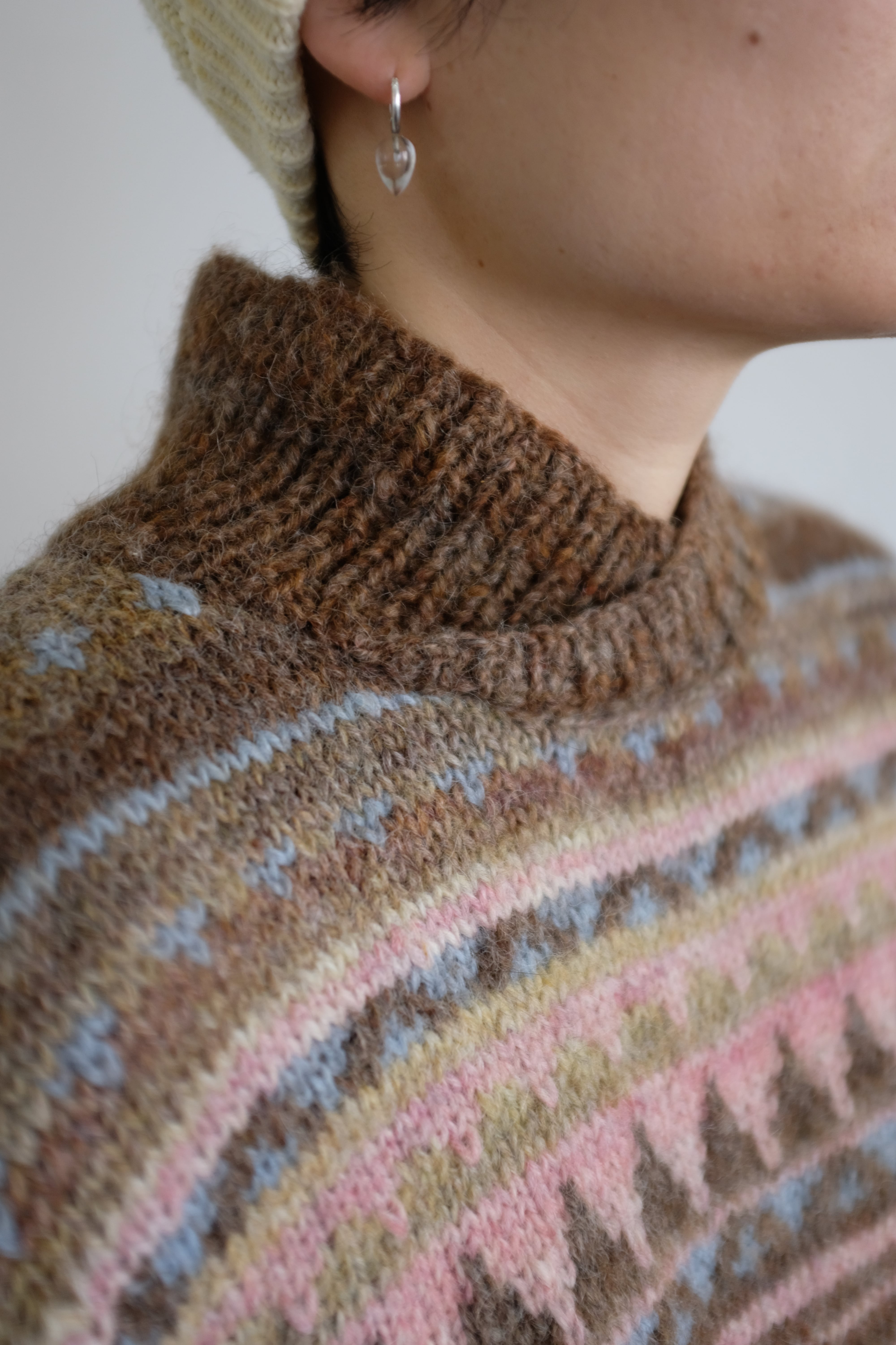 編み柄や柔らかな配色が素敵なモヘアのハンドニット。