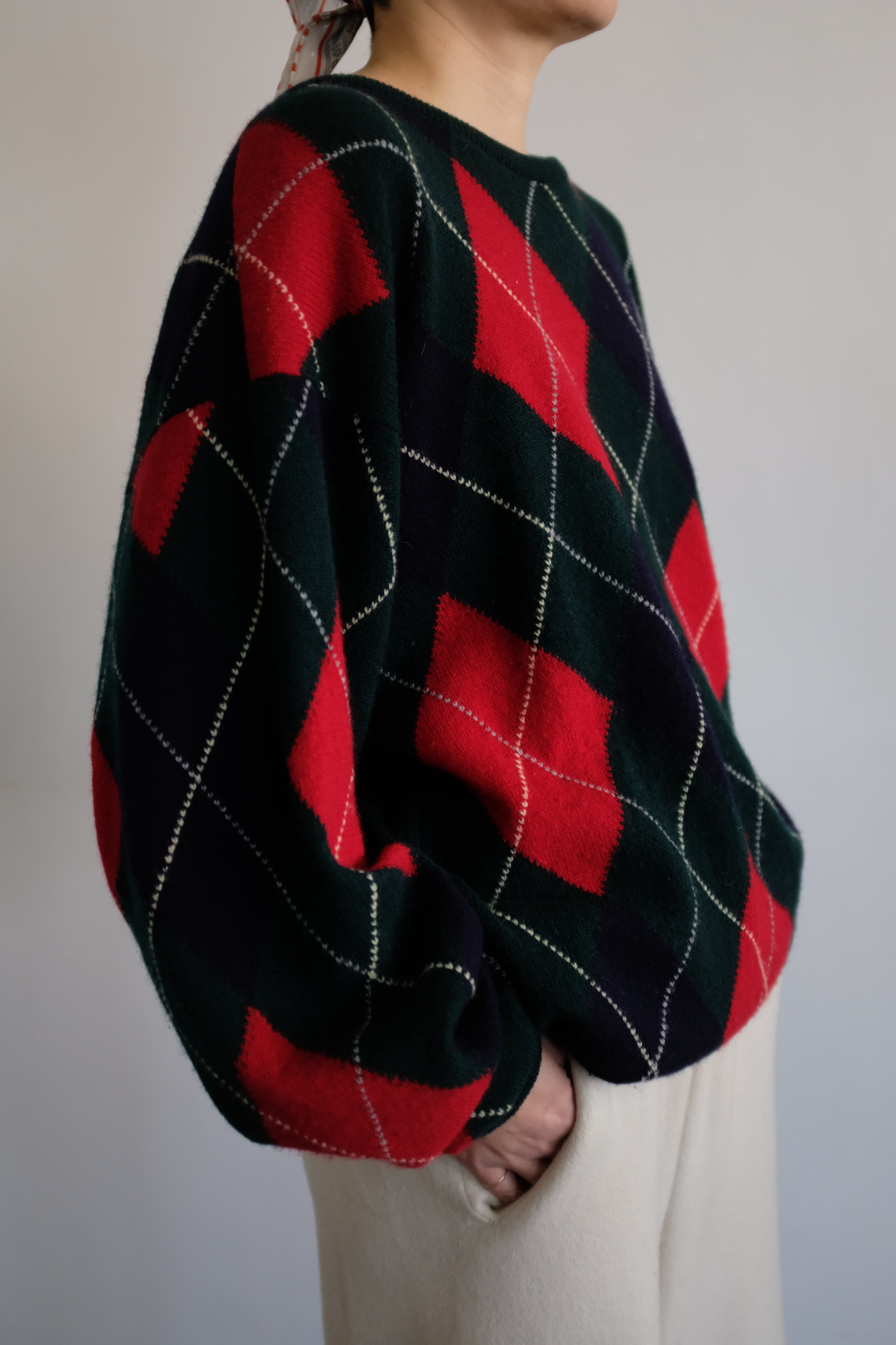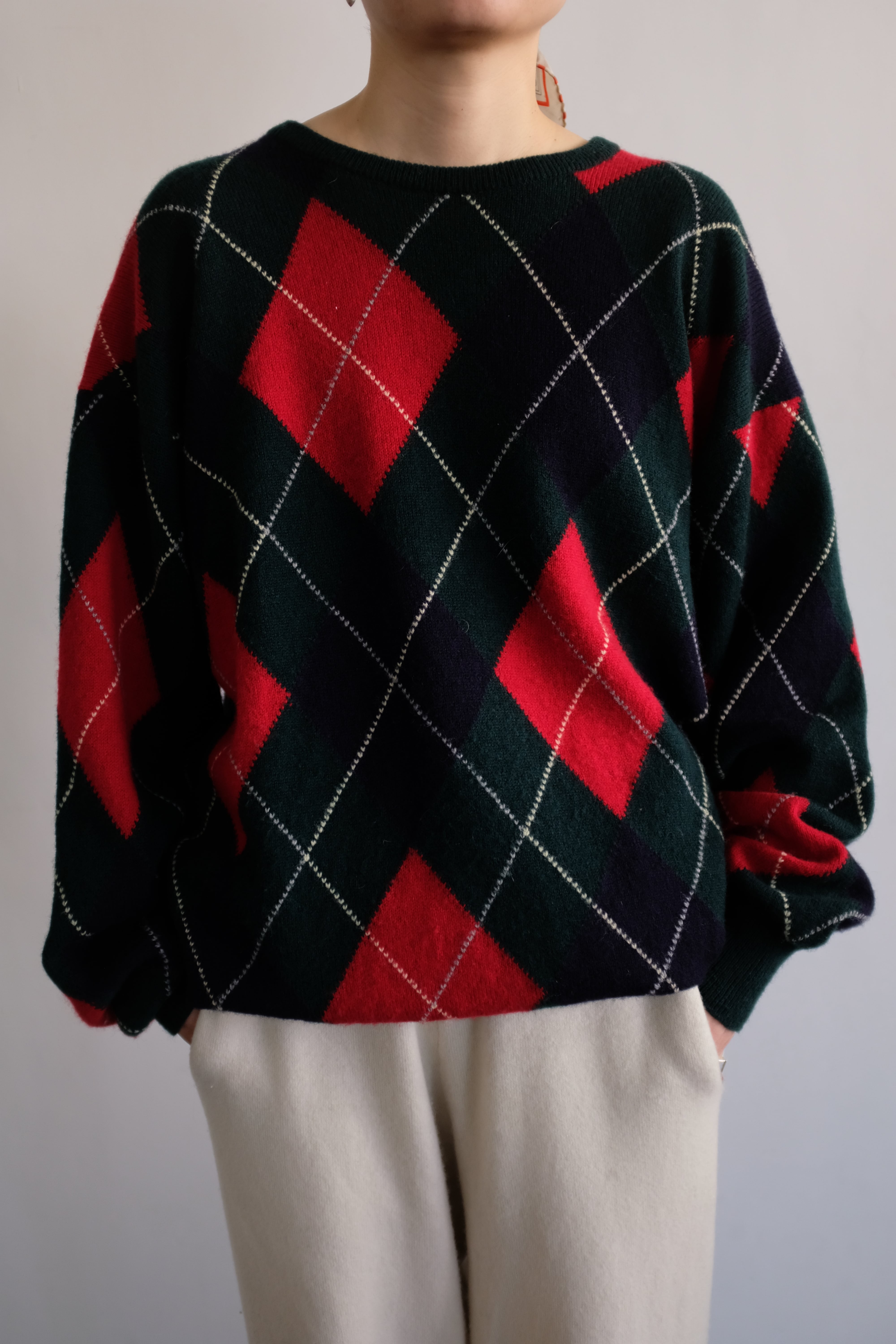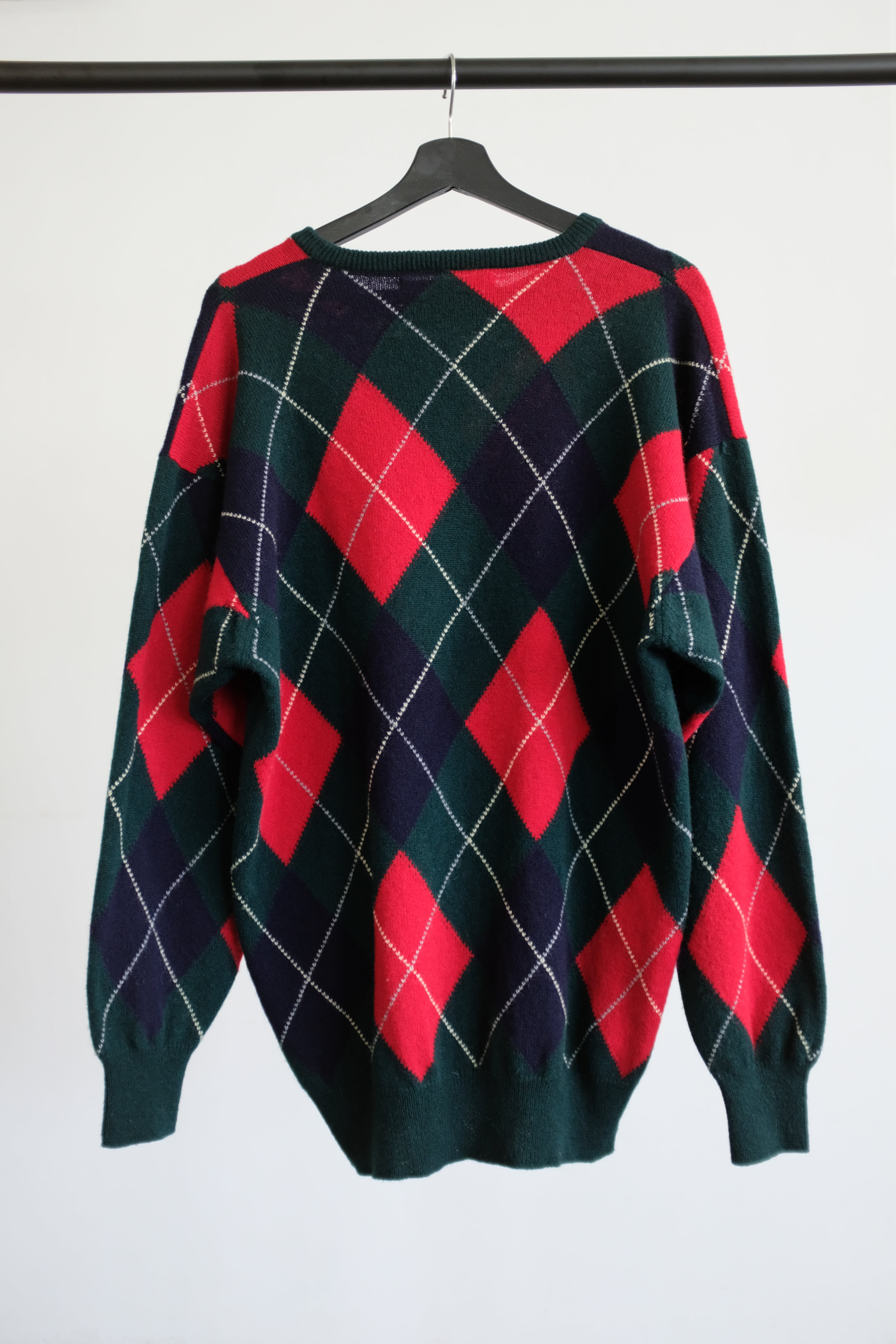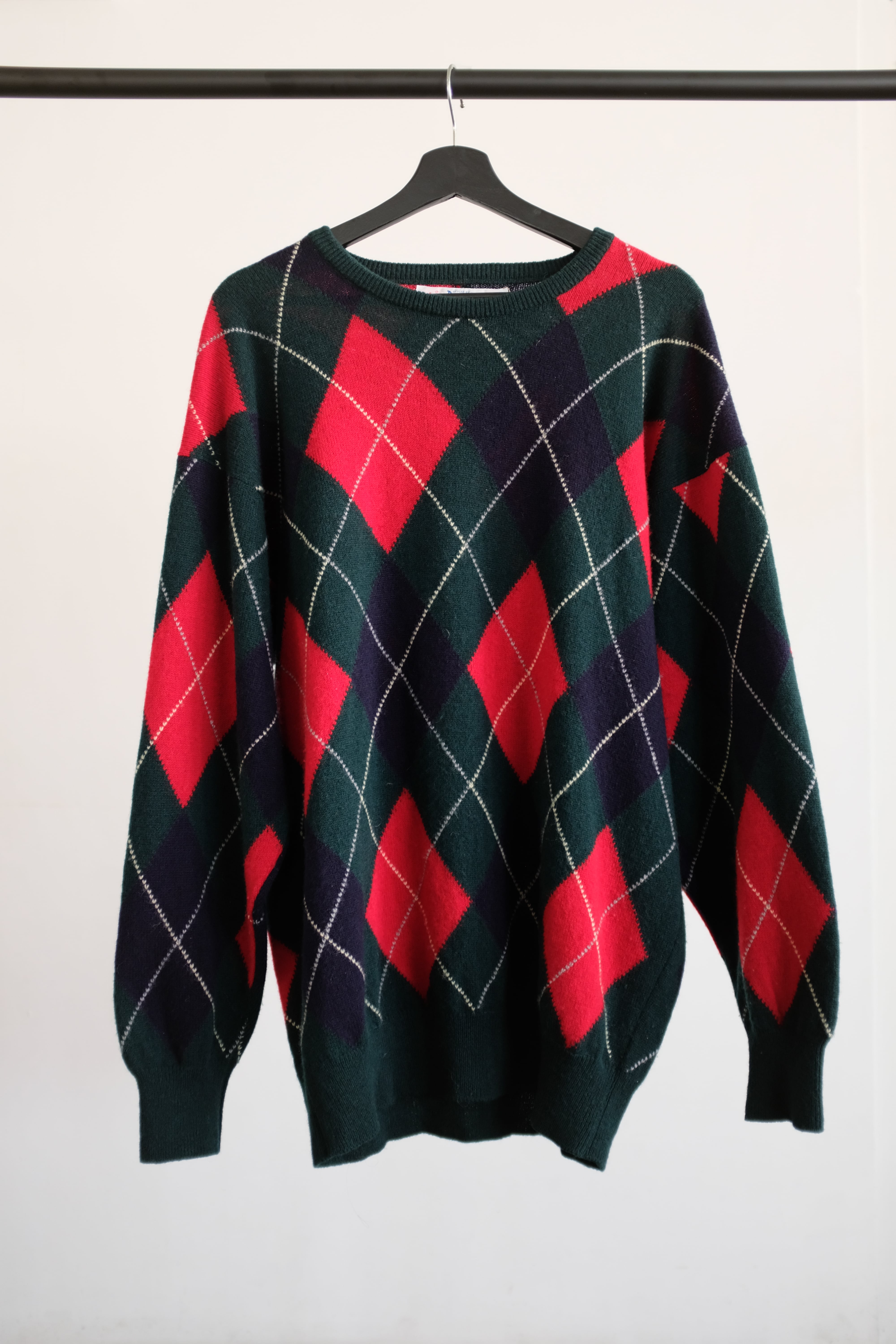 [vintage]"Pringle" argyle knit sweater made in Scotland