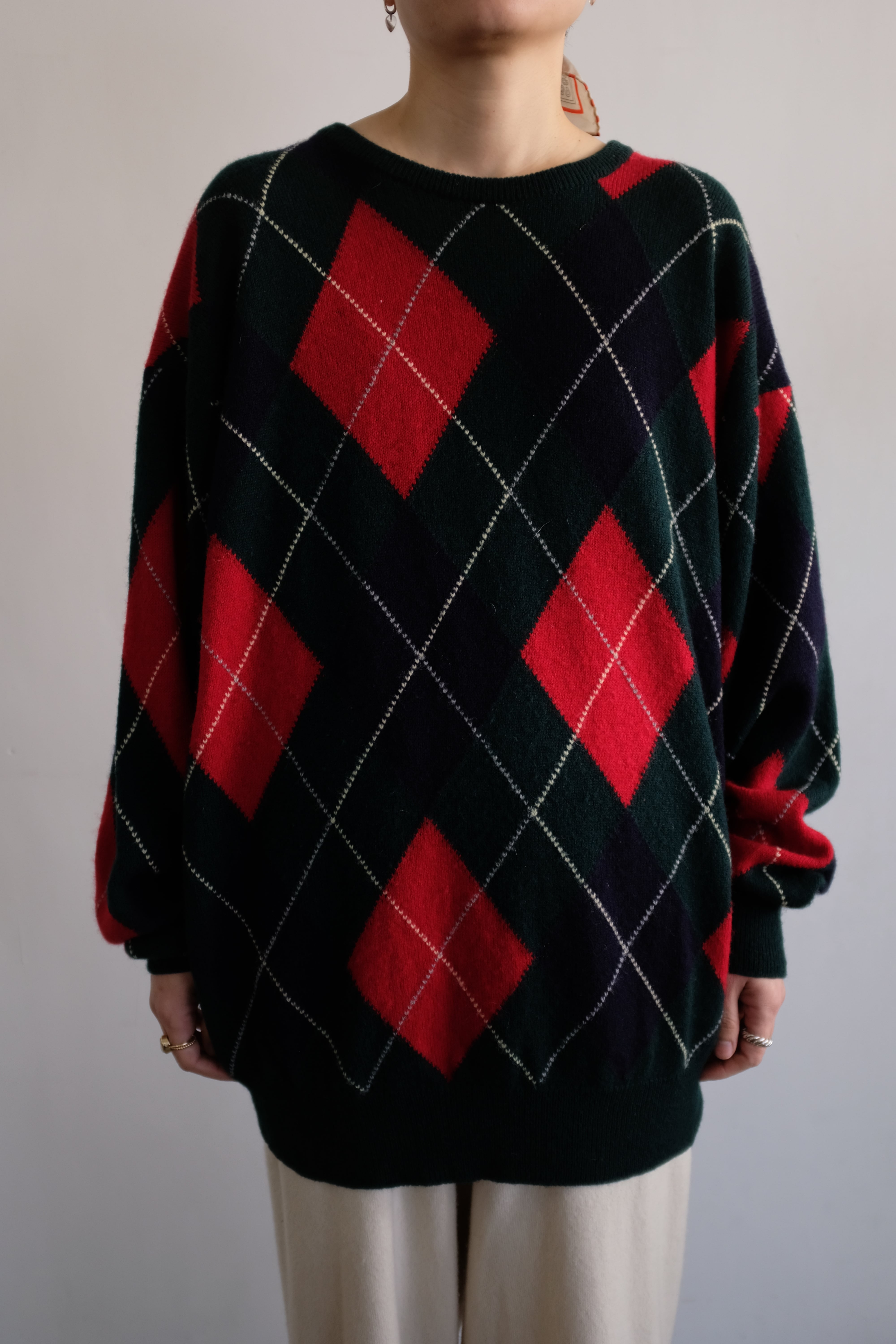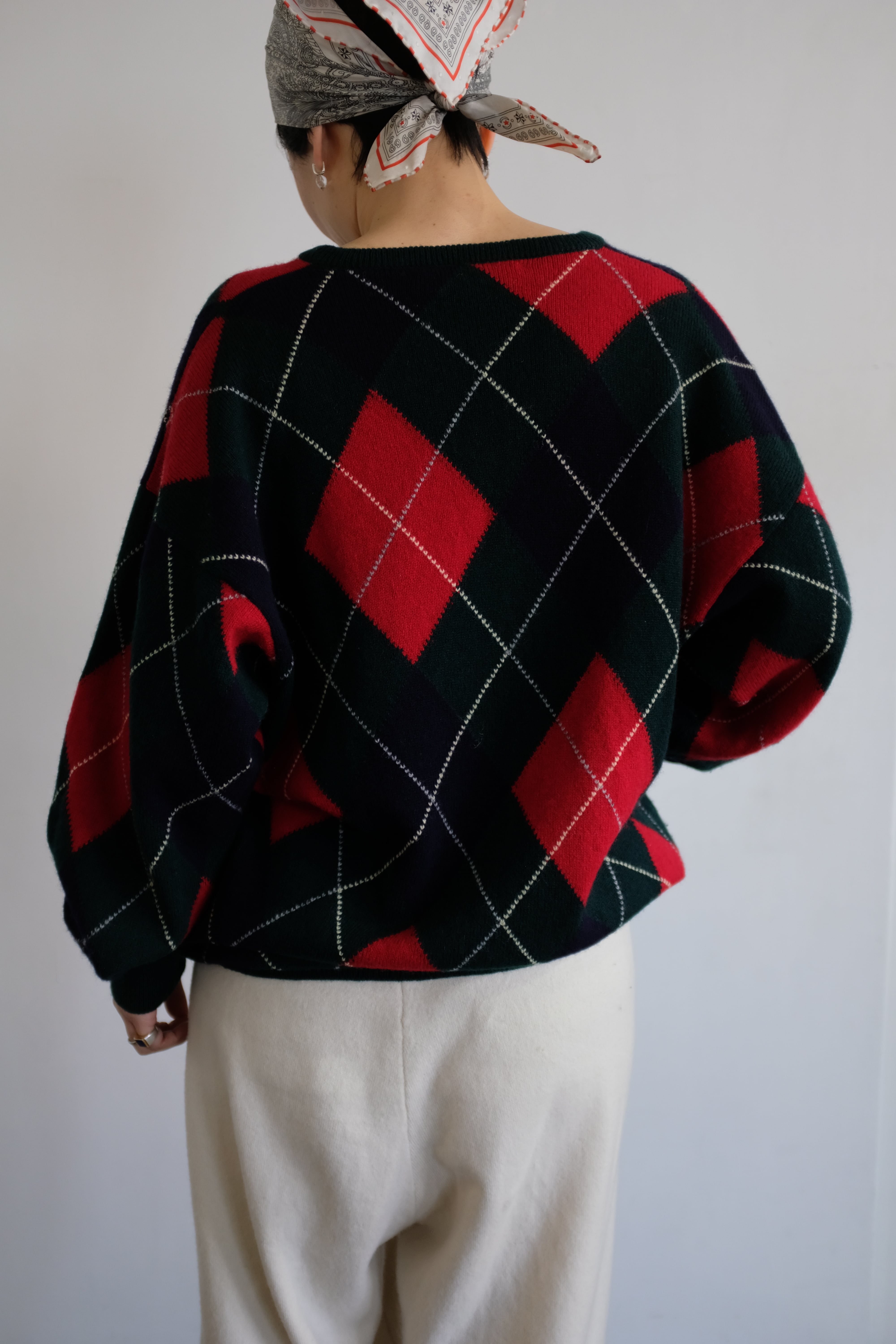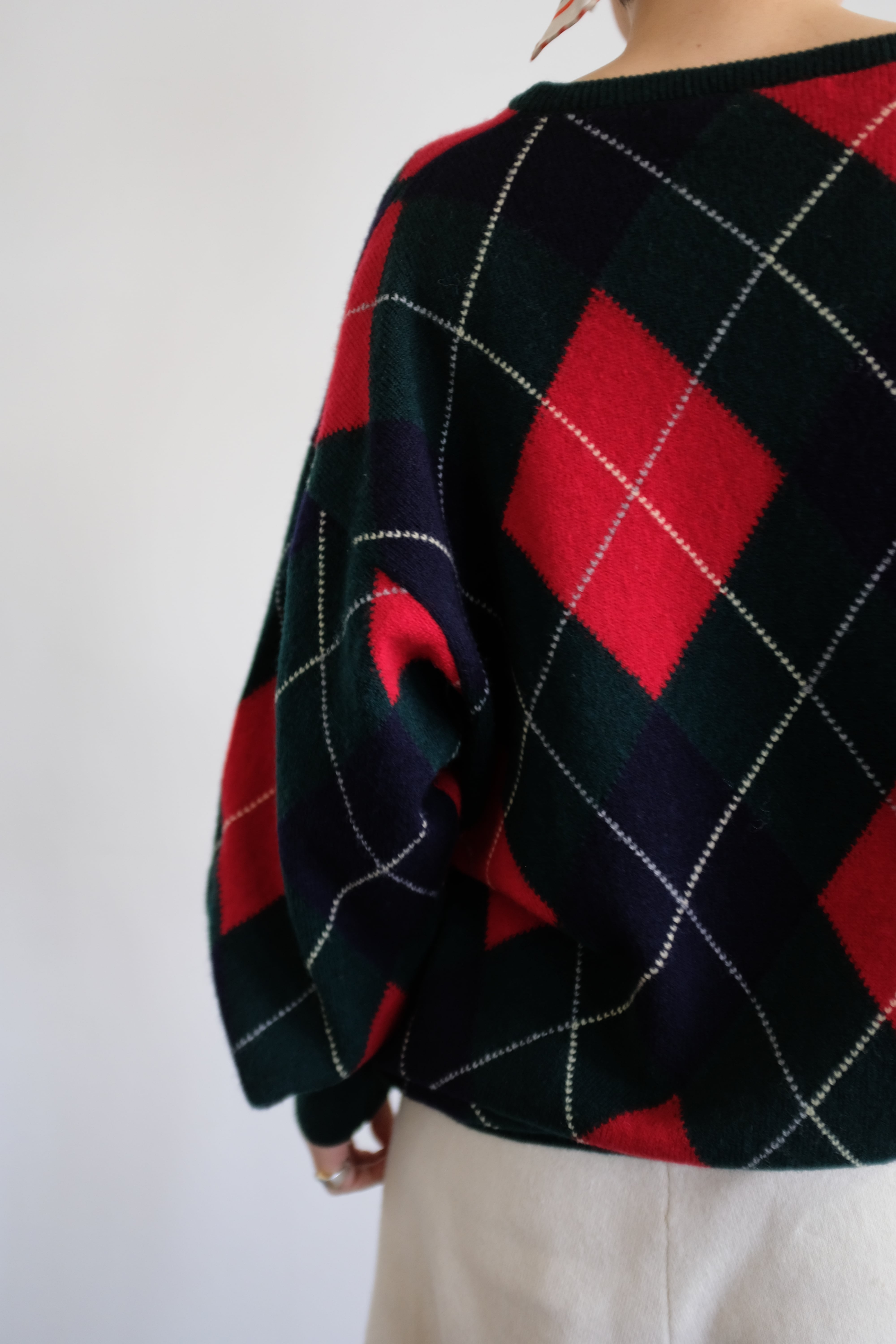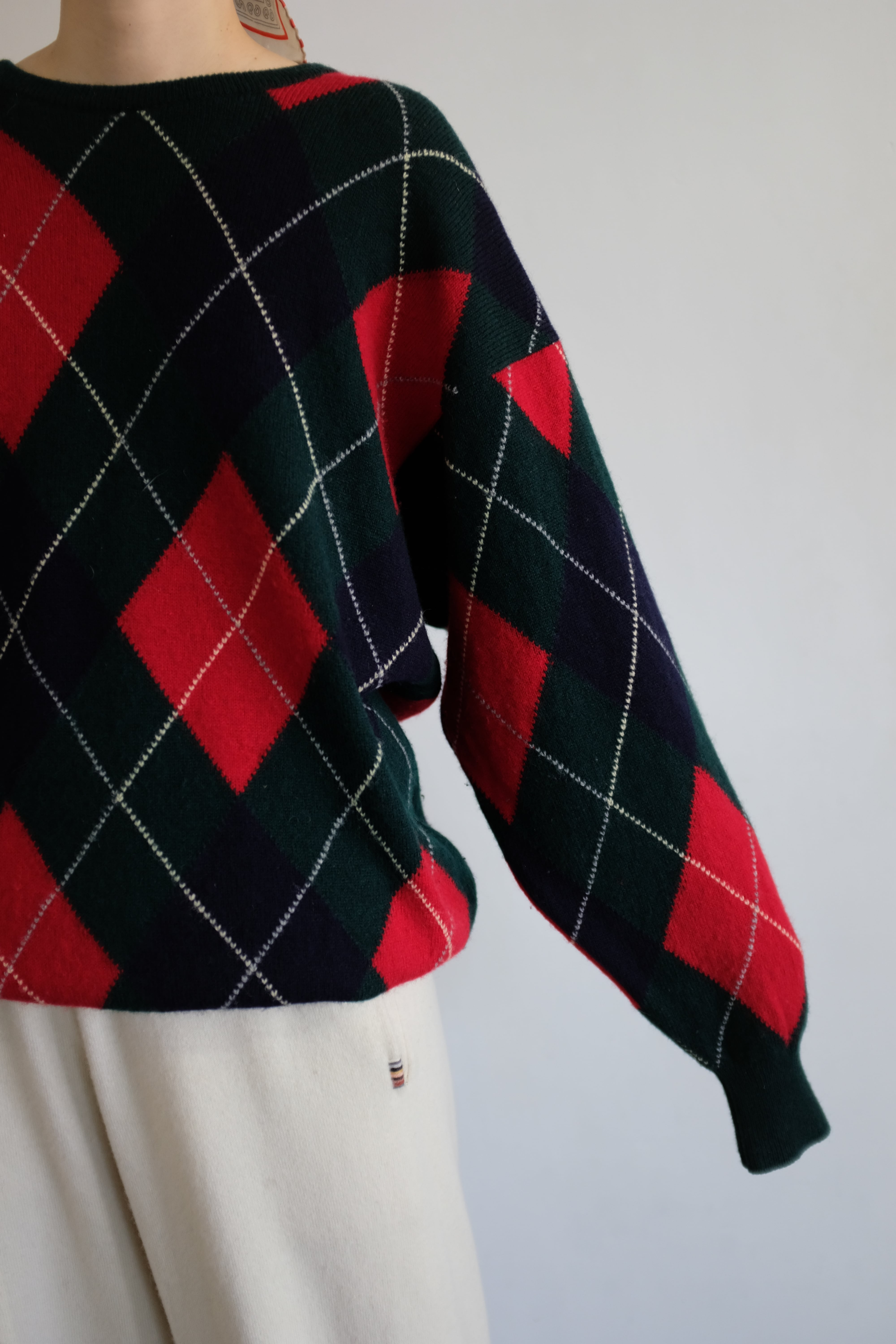 [vintage]"Pringle" argyle knit sweater made in Scotland