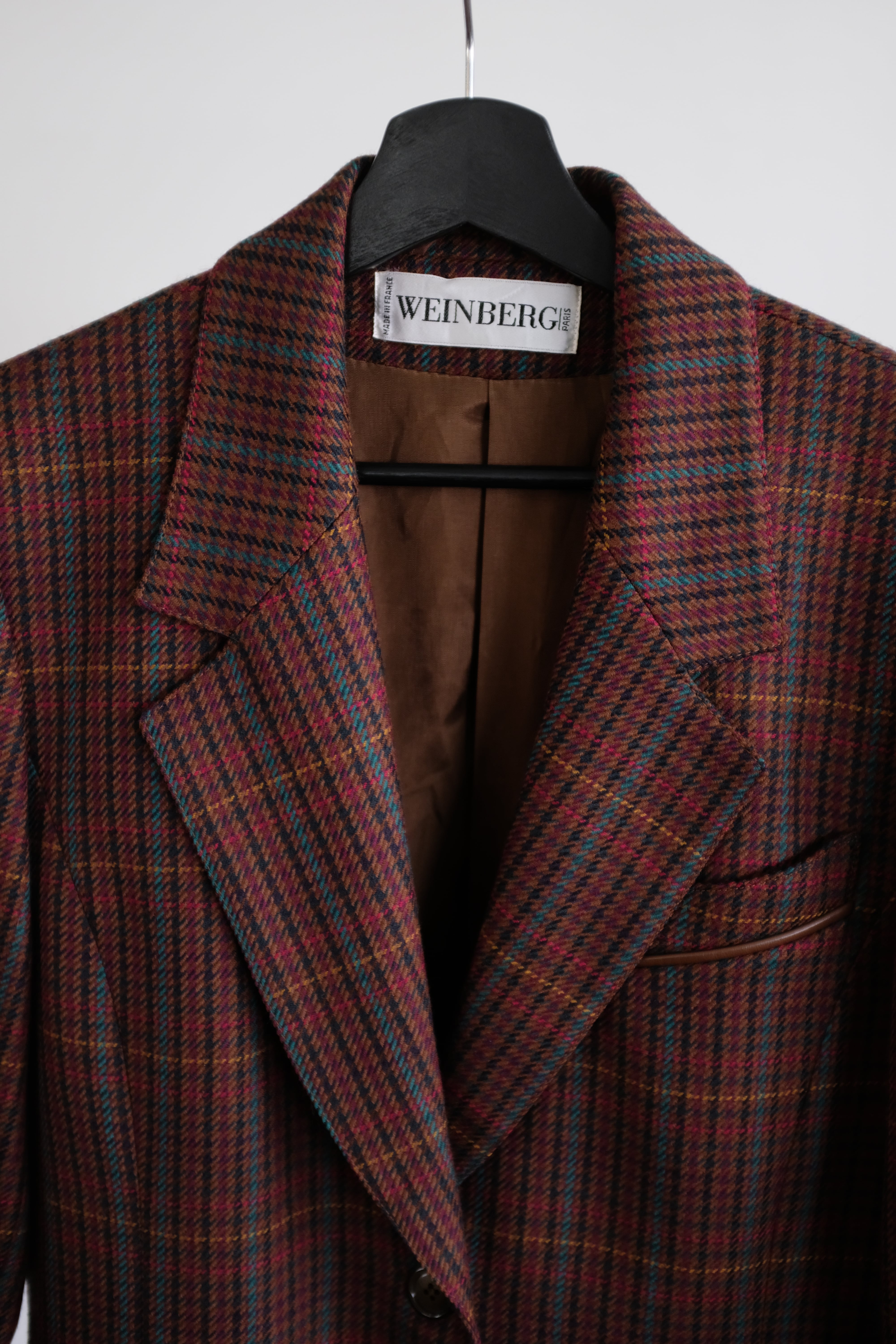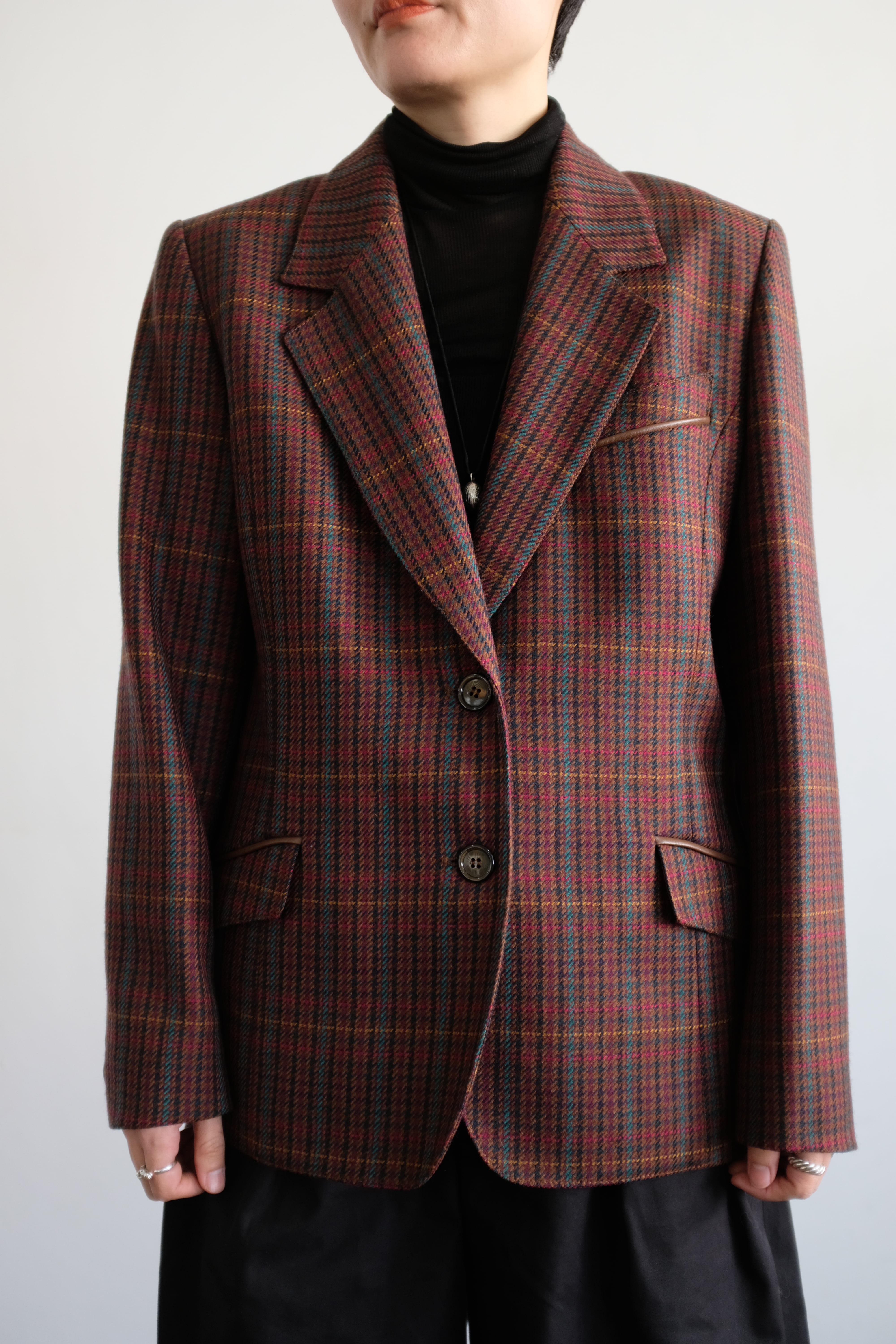 フランス製のウールテーラードジャケット。ポケットにレザーのパイピングがポイント。