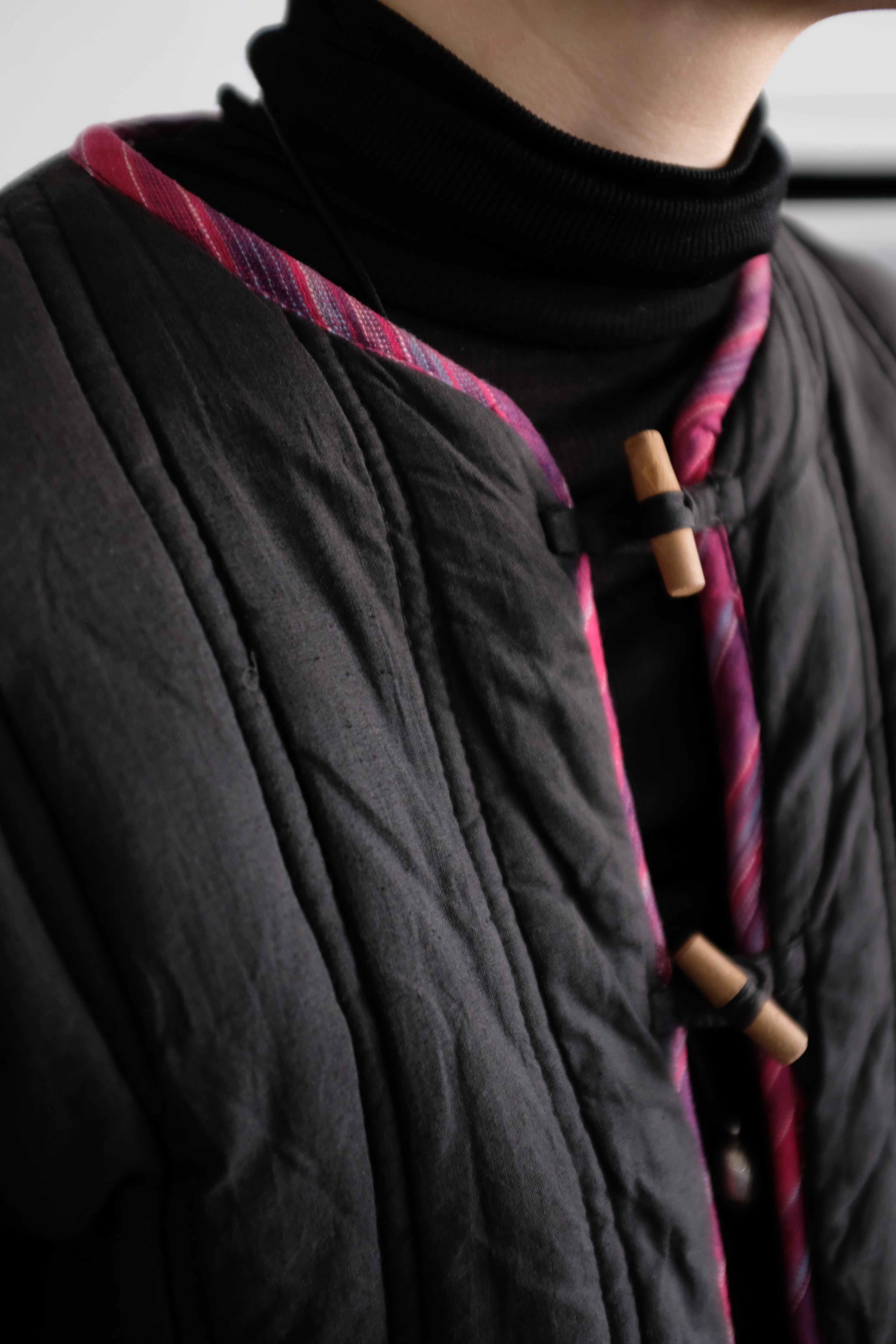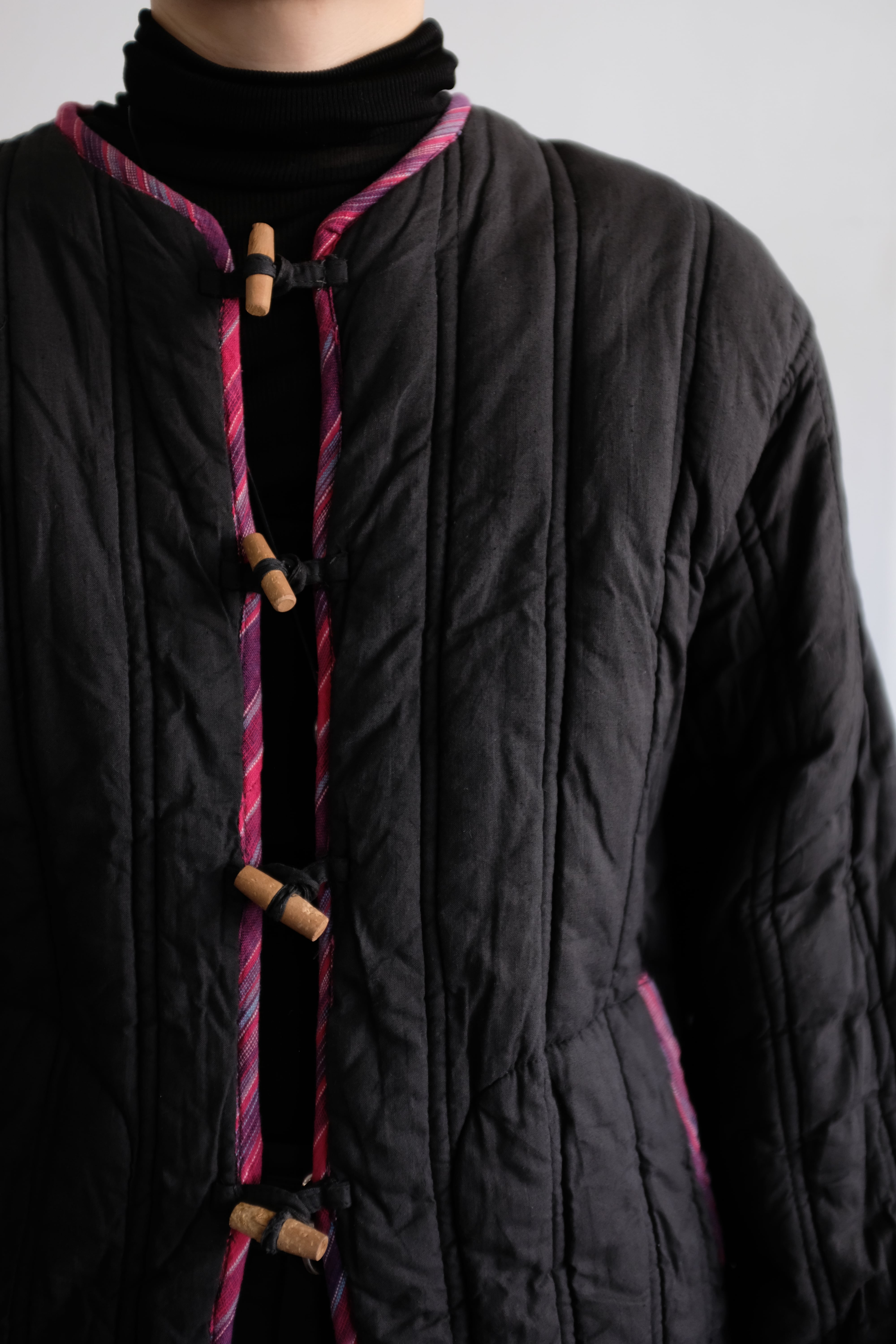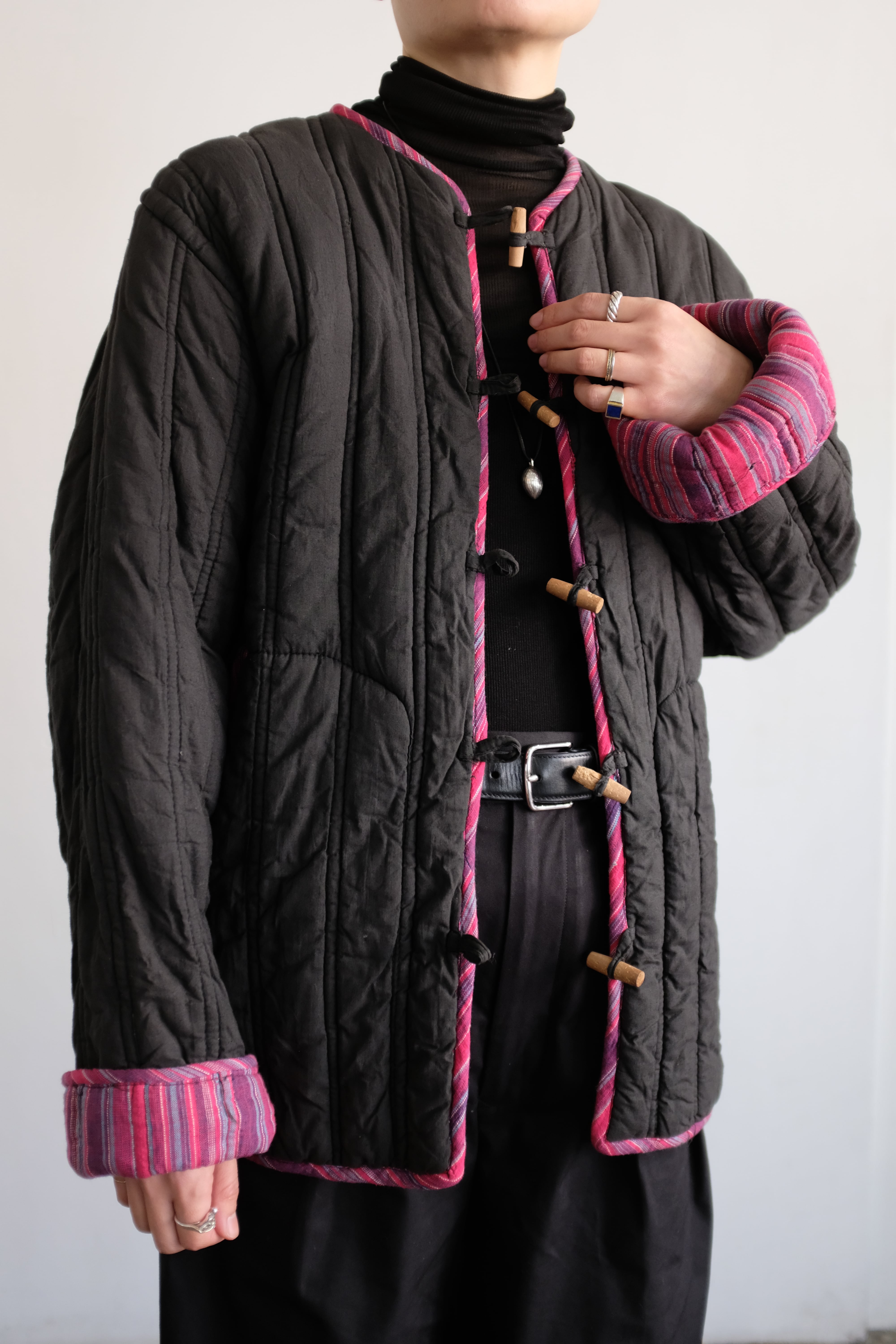 キルティングで保温性の高いチャイナ風ジャケット。