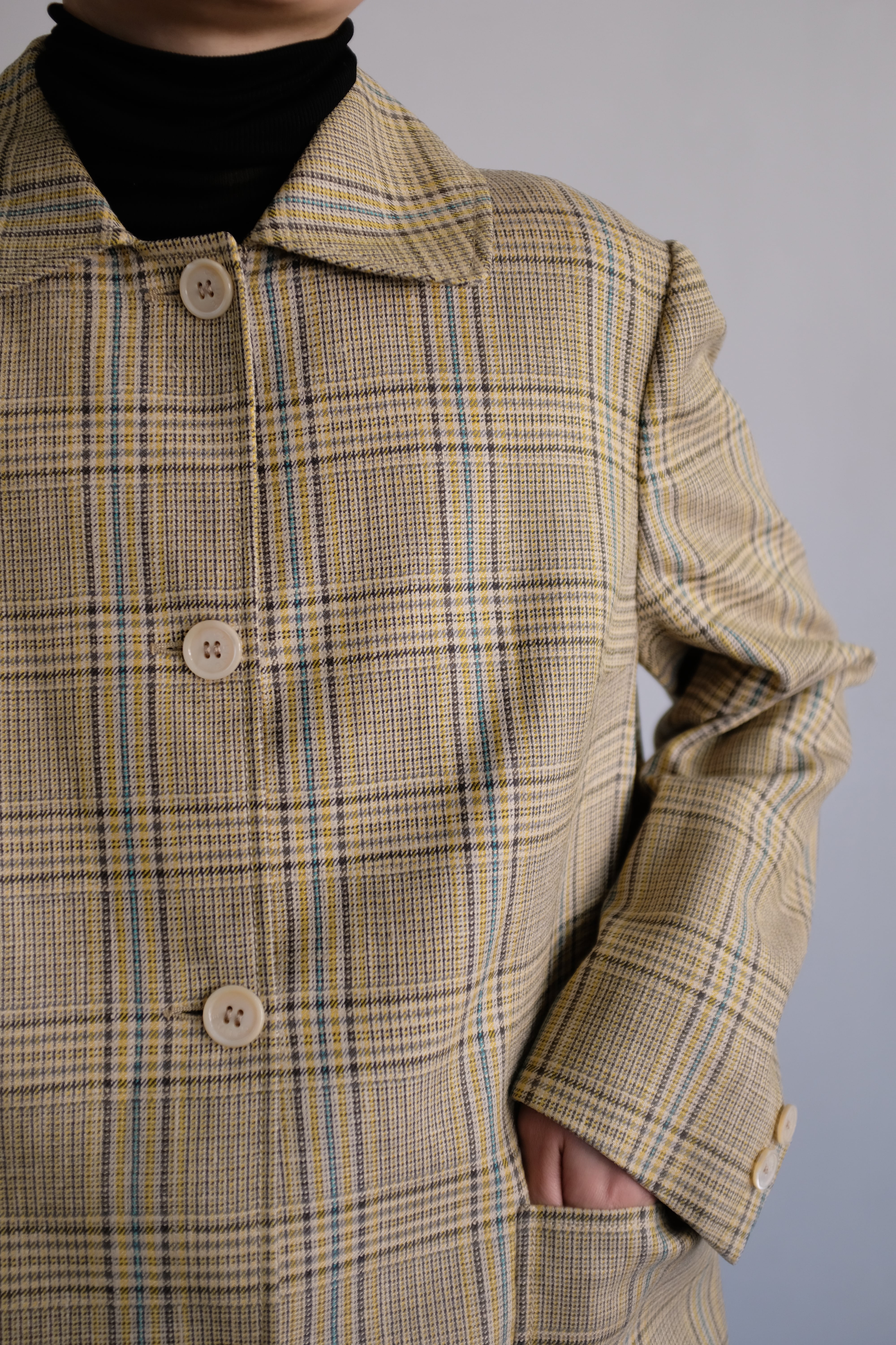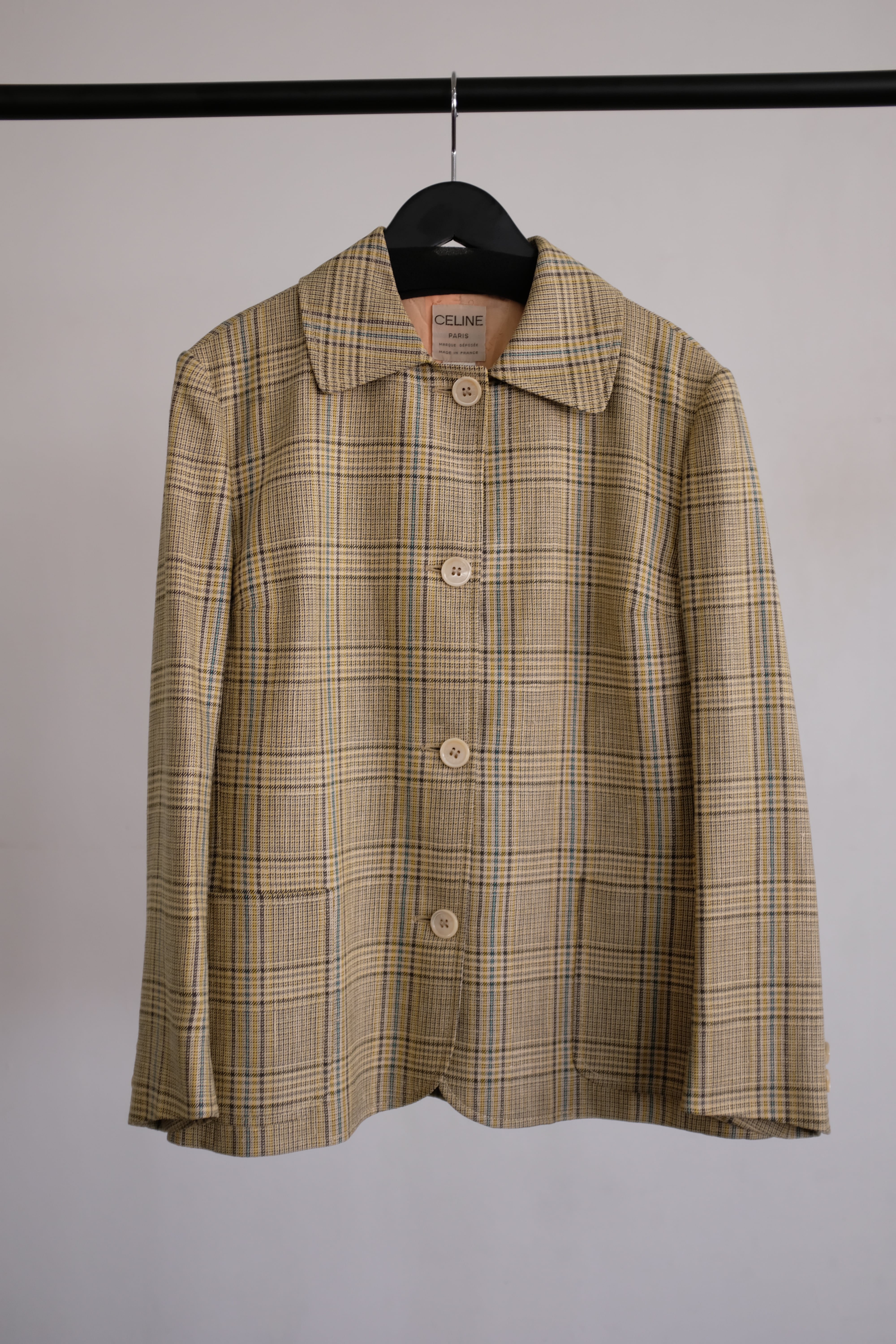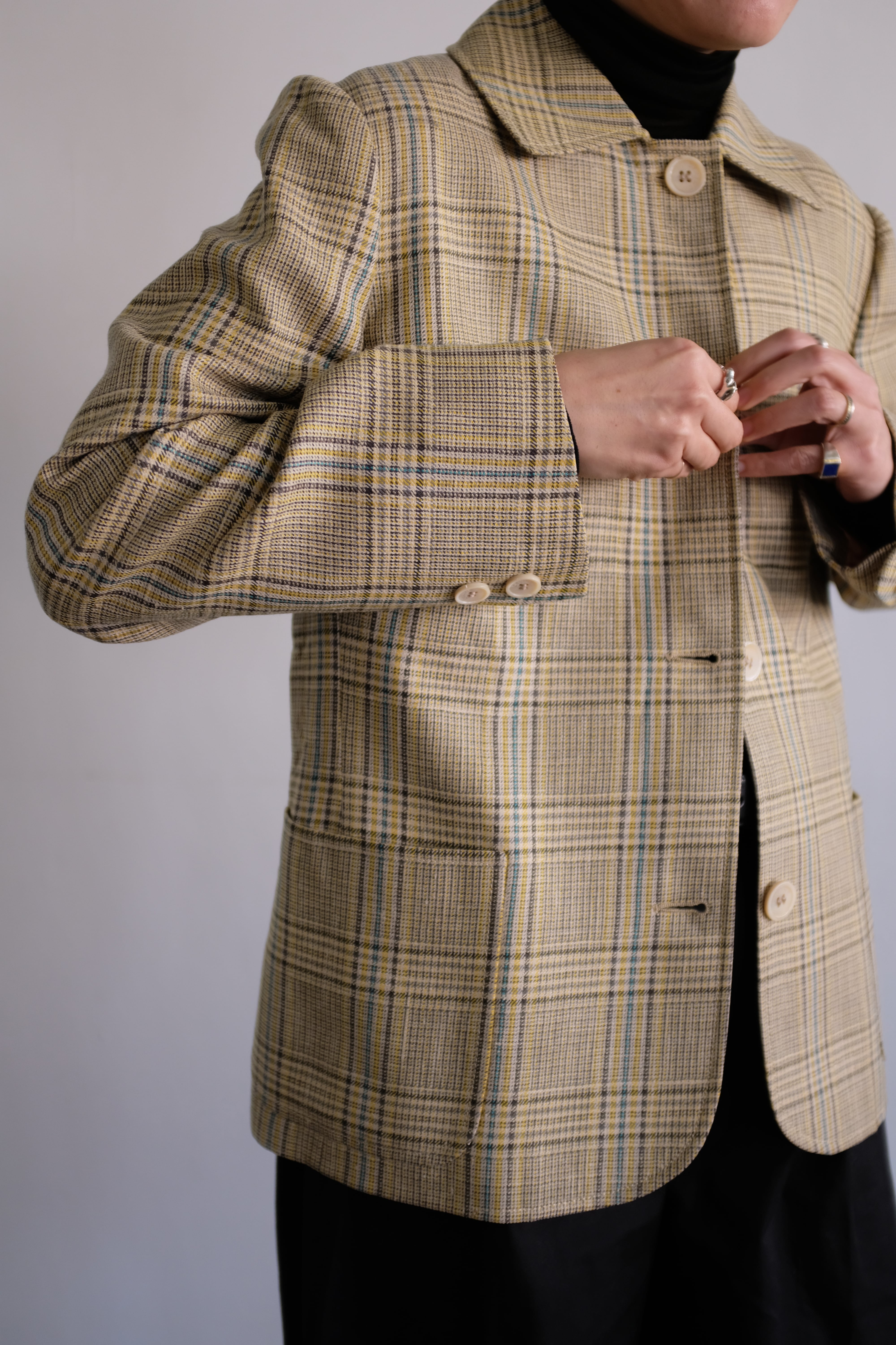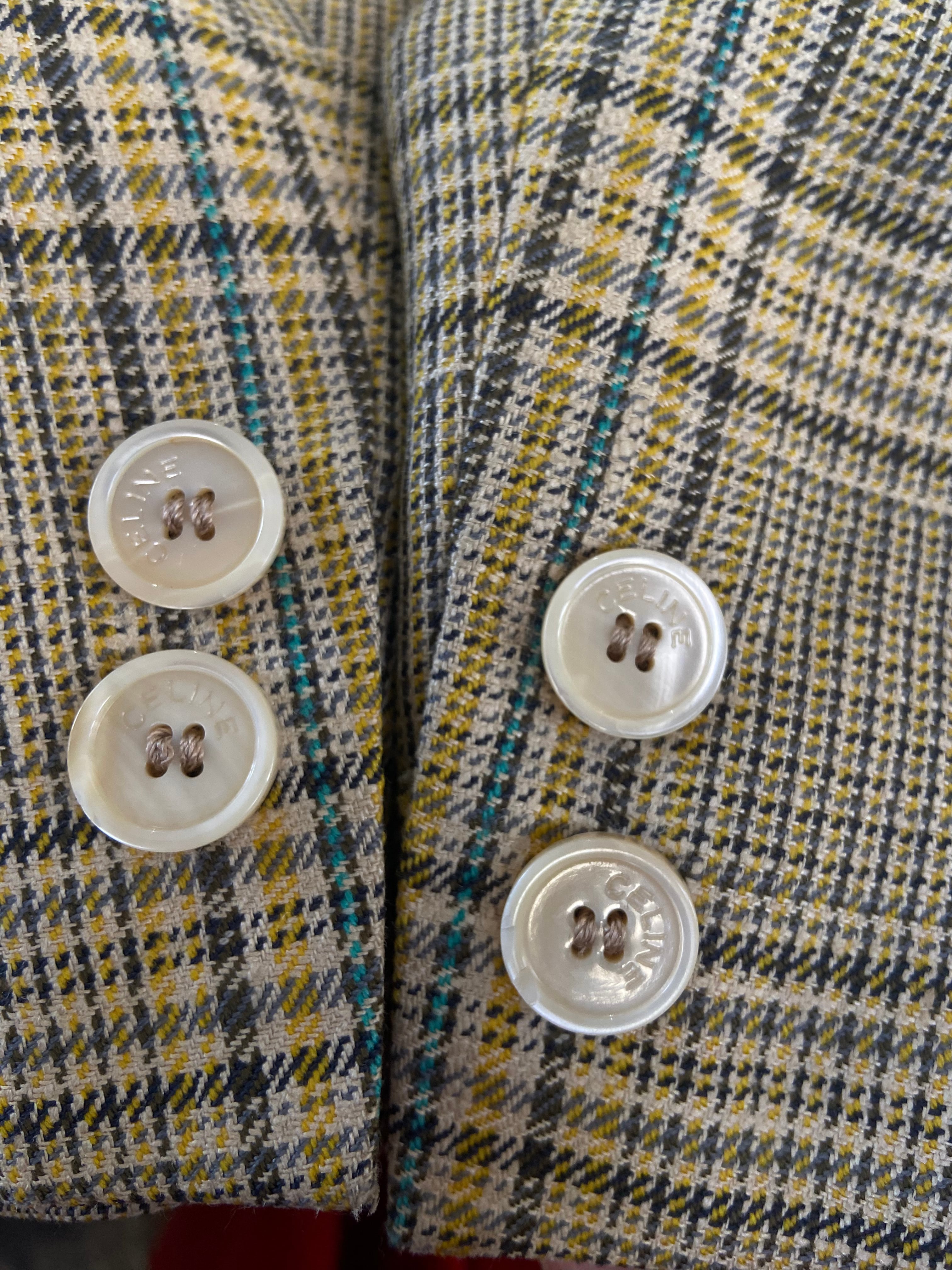 80sセリーヌのチェックウールジャケット。一見クラシカルなデザインですがボックスシルエットで古くかんじさせないのが流石のブランド。チェックの配色も良く春先まで重宝しそうです。
