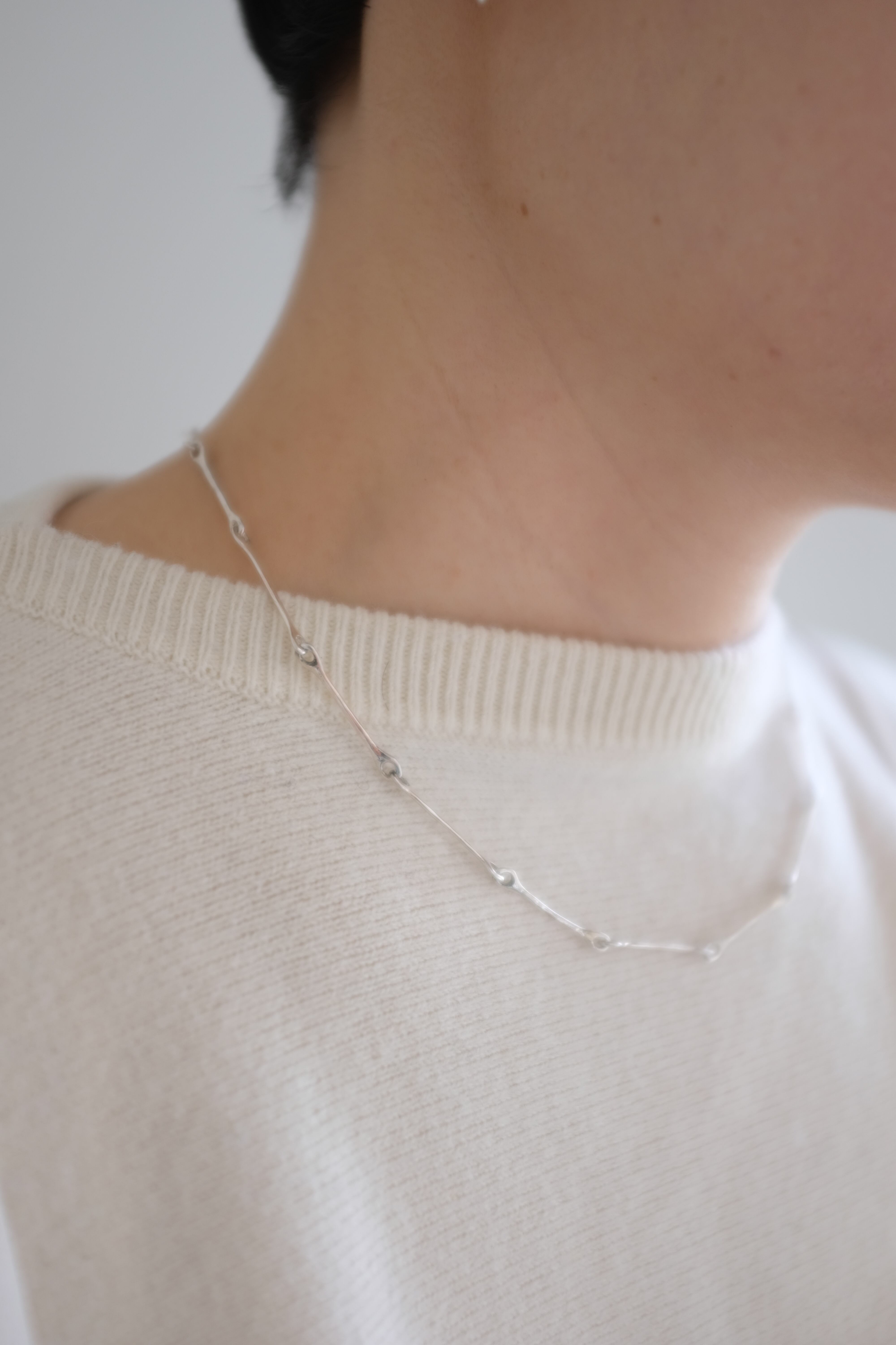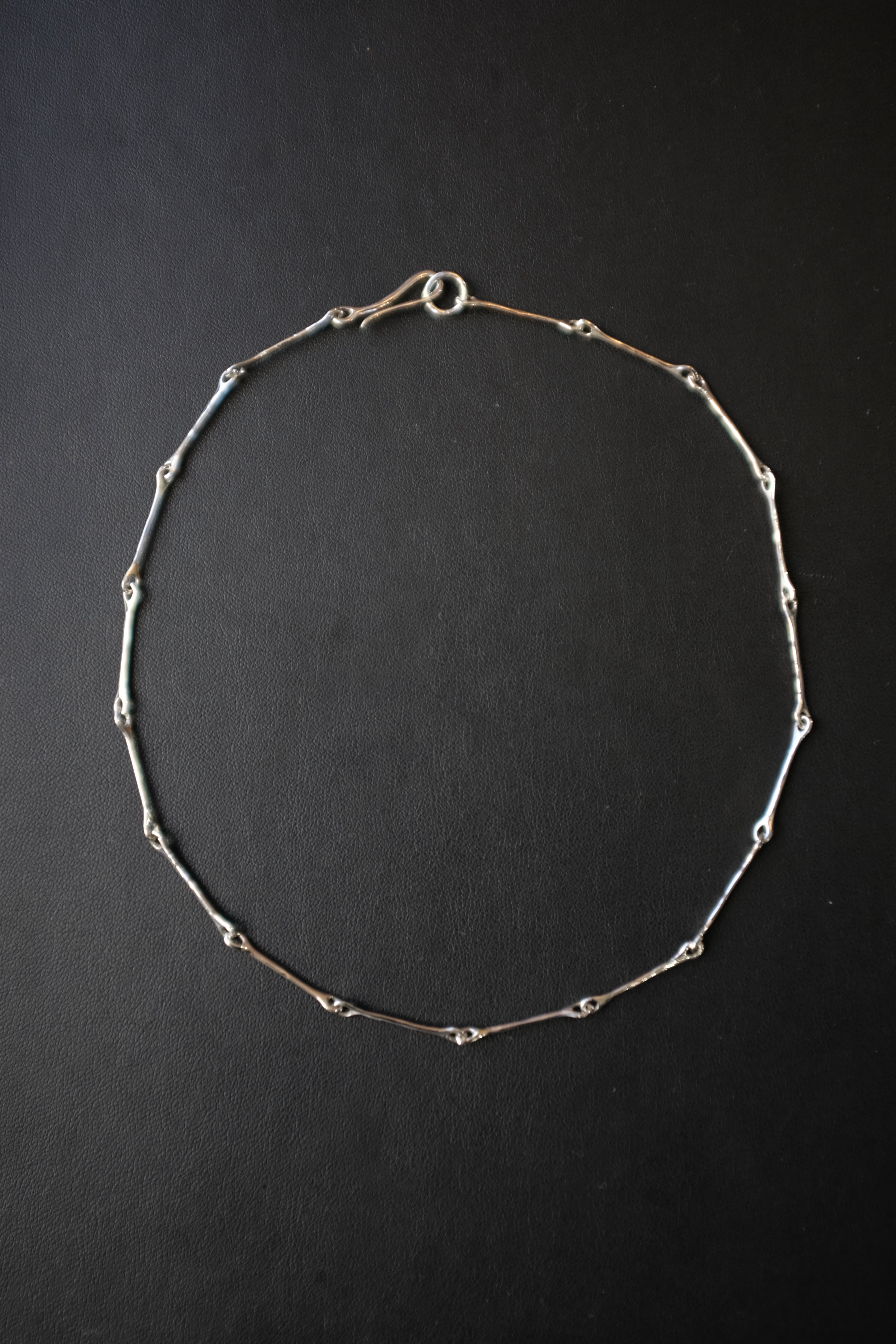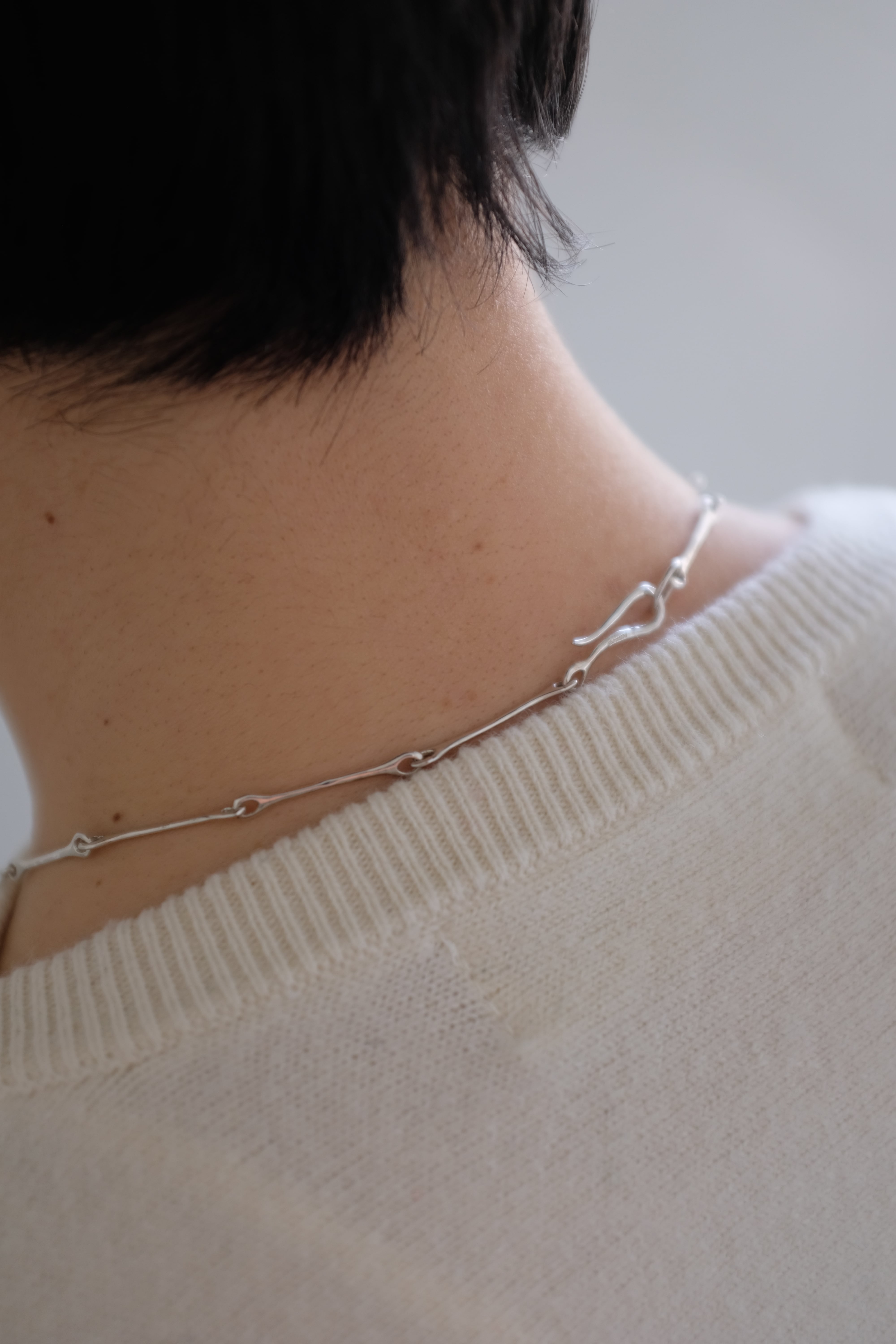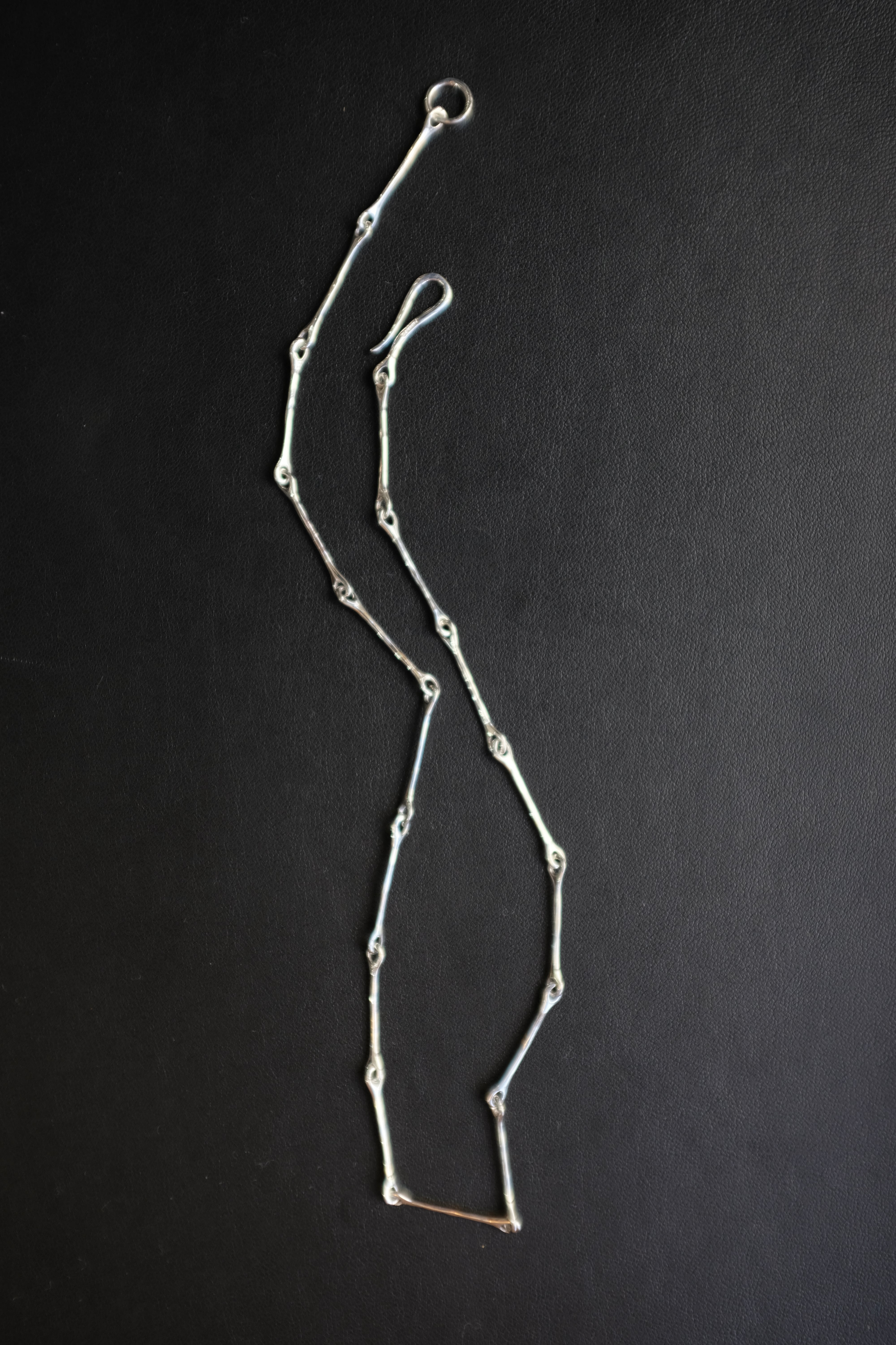 骨のような形をチェーンにして、造形美とフレッシュさが相まったネックレス。