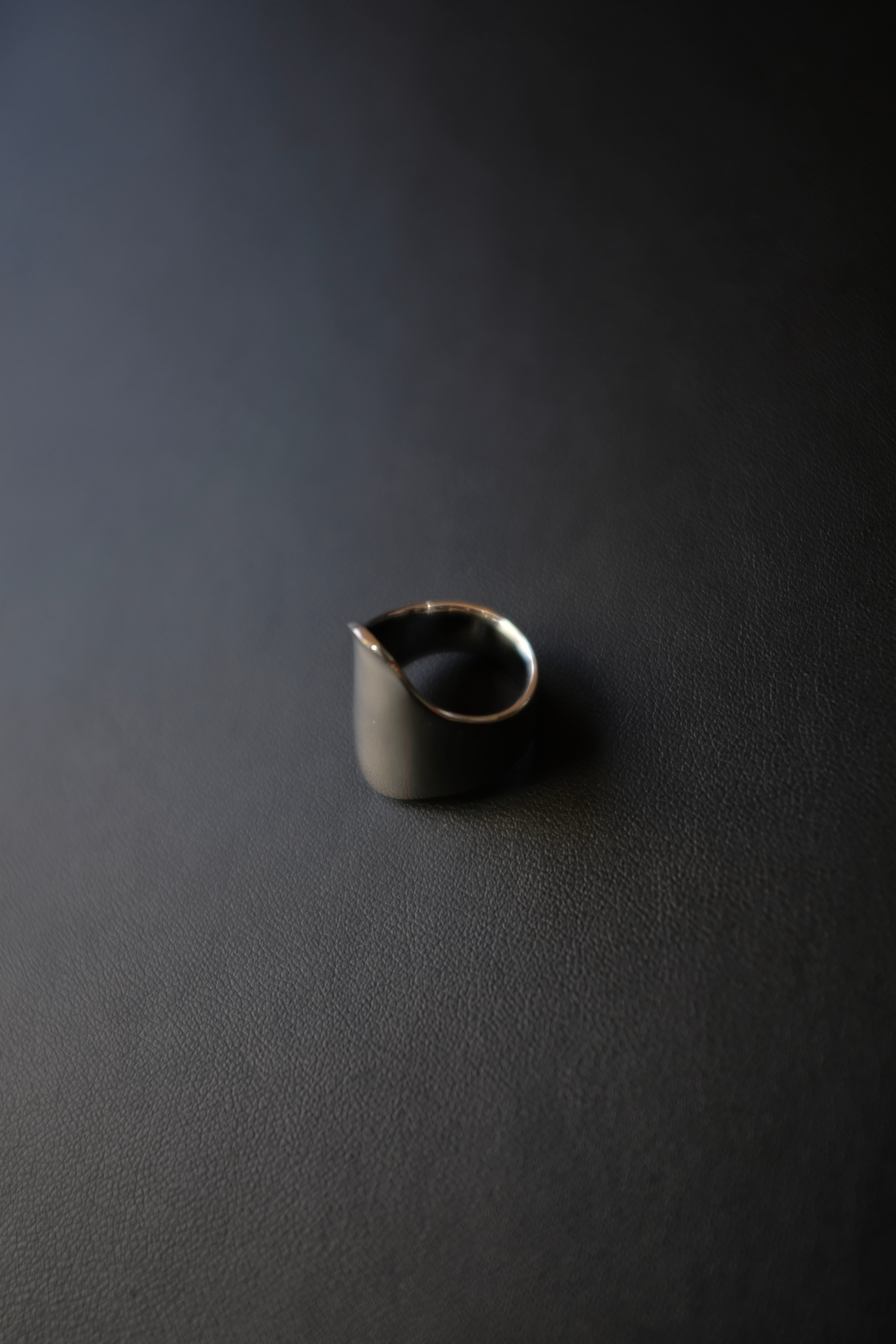 一枚の皮膚をゆっくりと剥いたような造形のリングです。