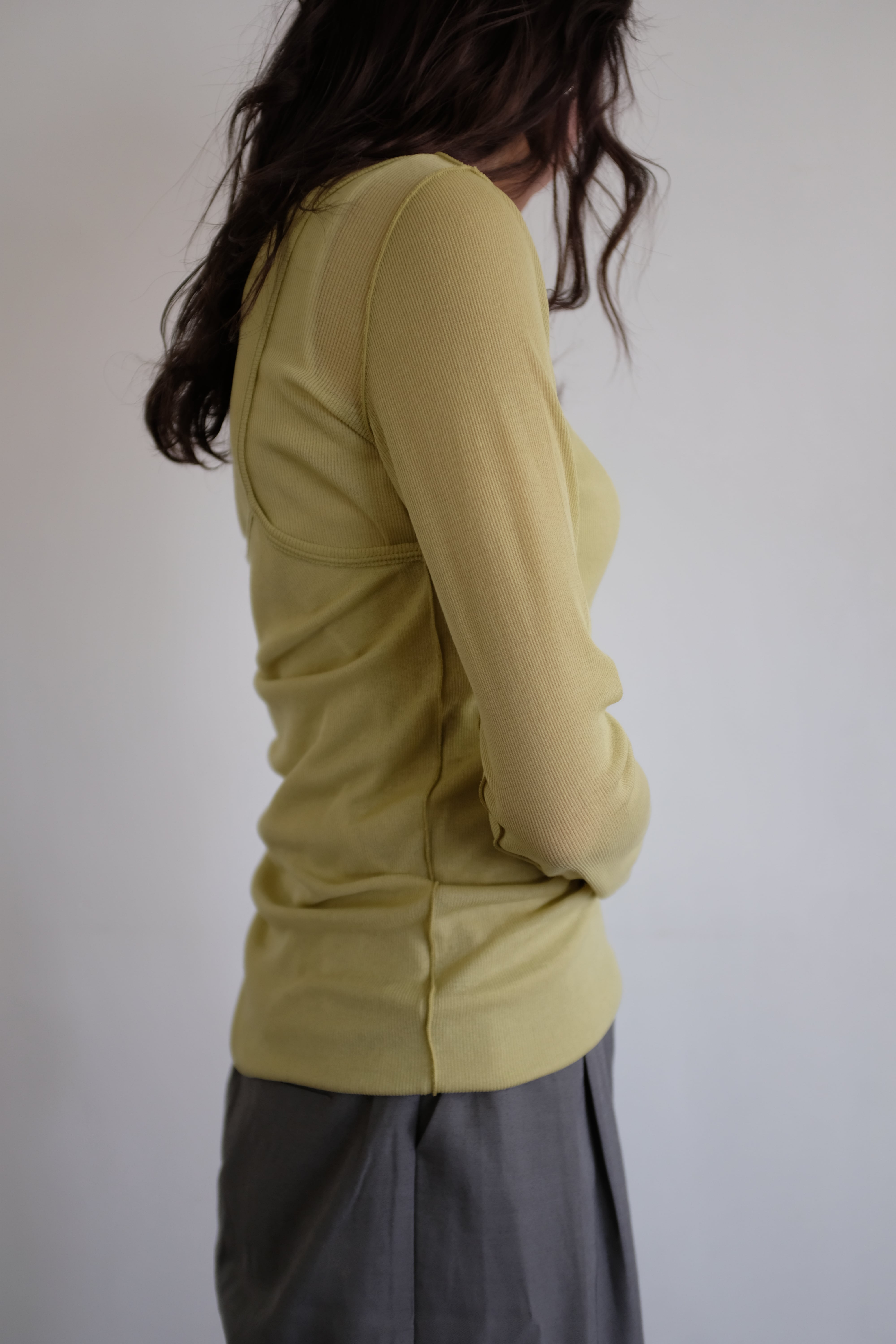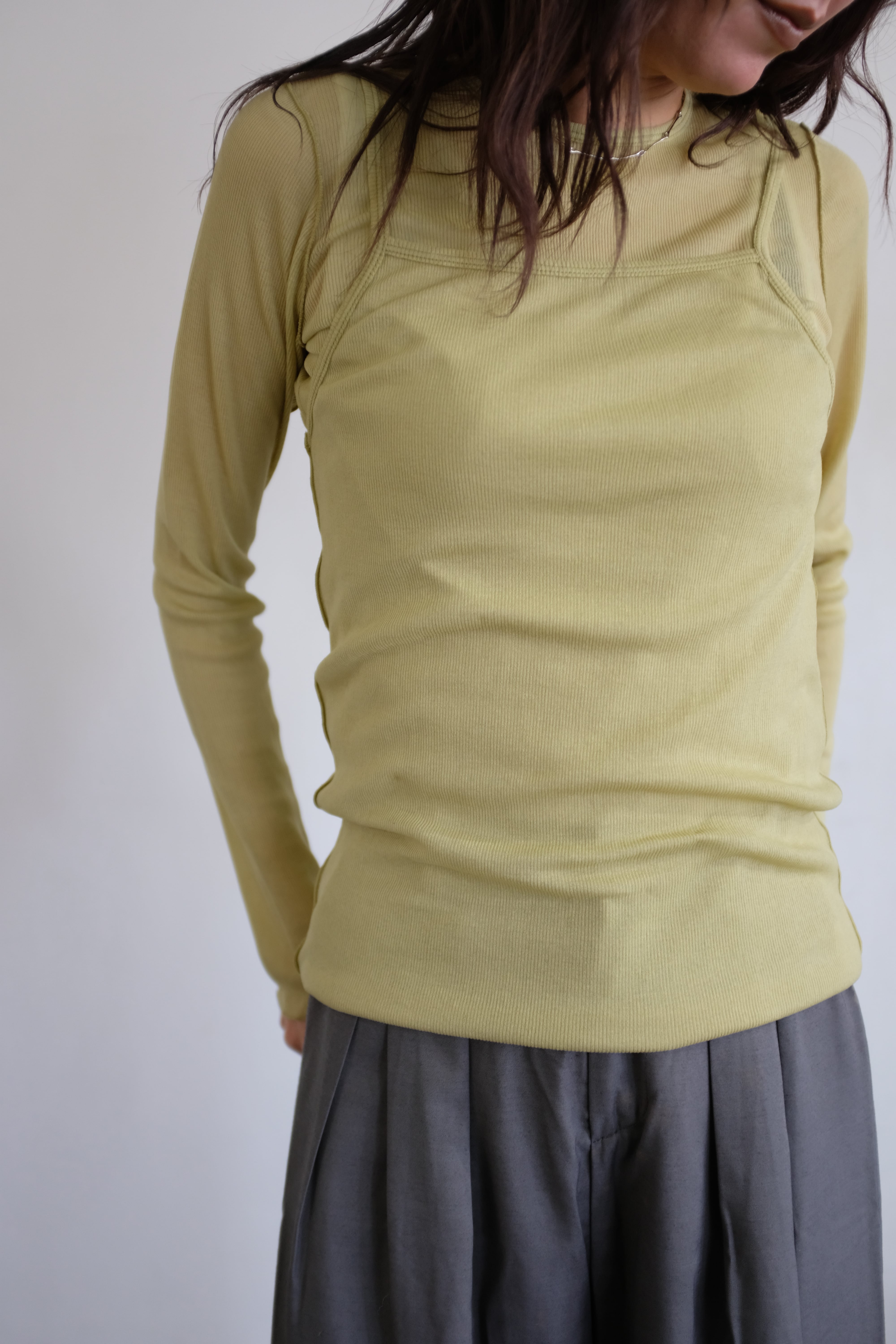 [HAKUJI] Sheer rib layered LS PO / Yellow