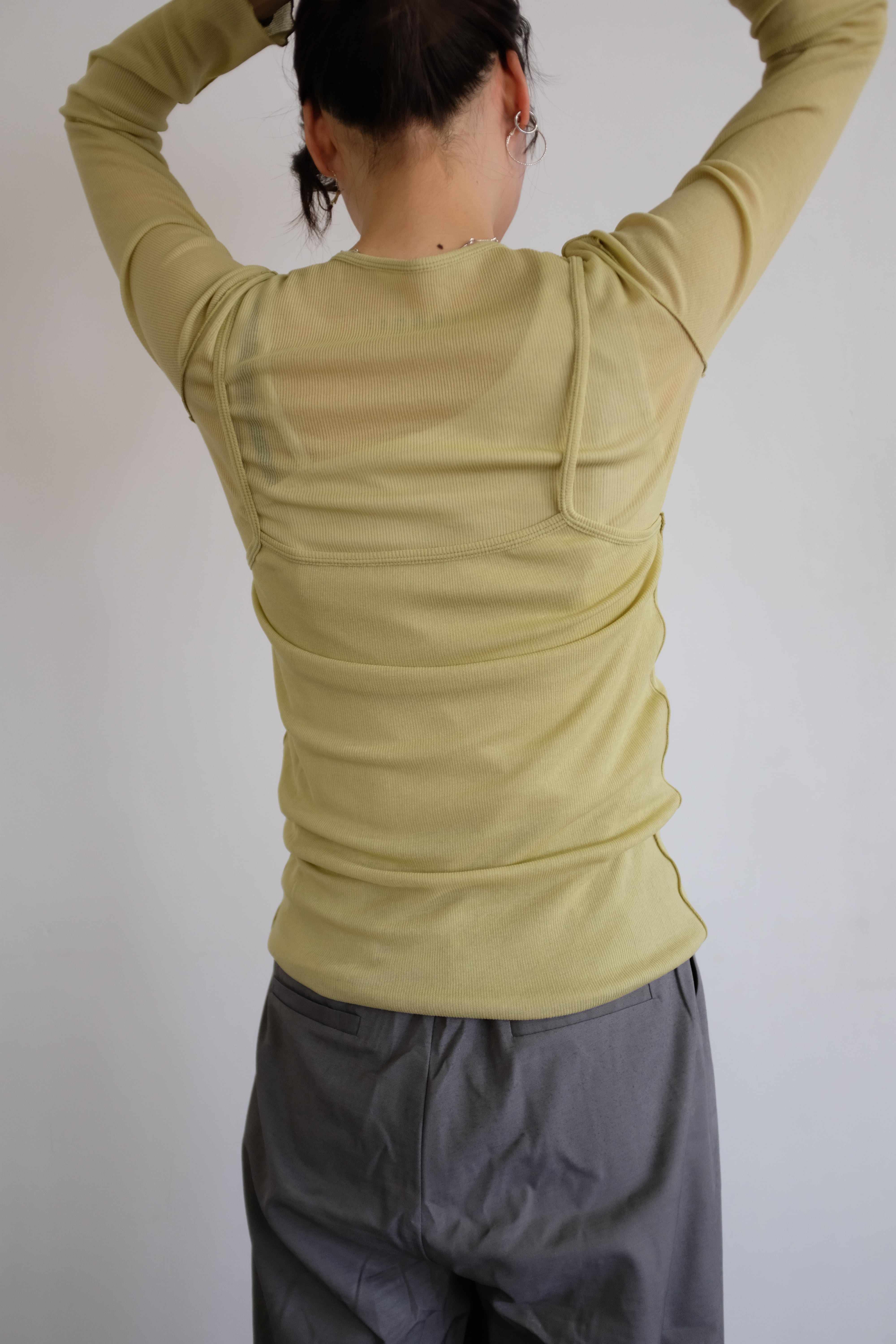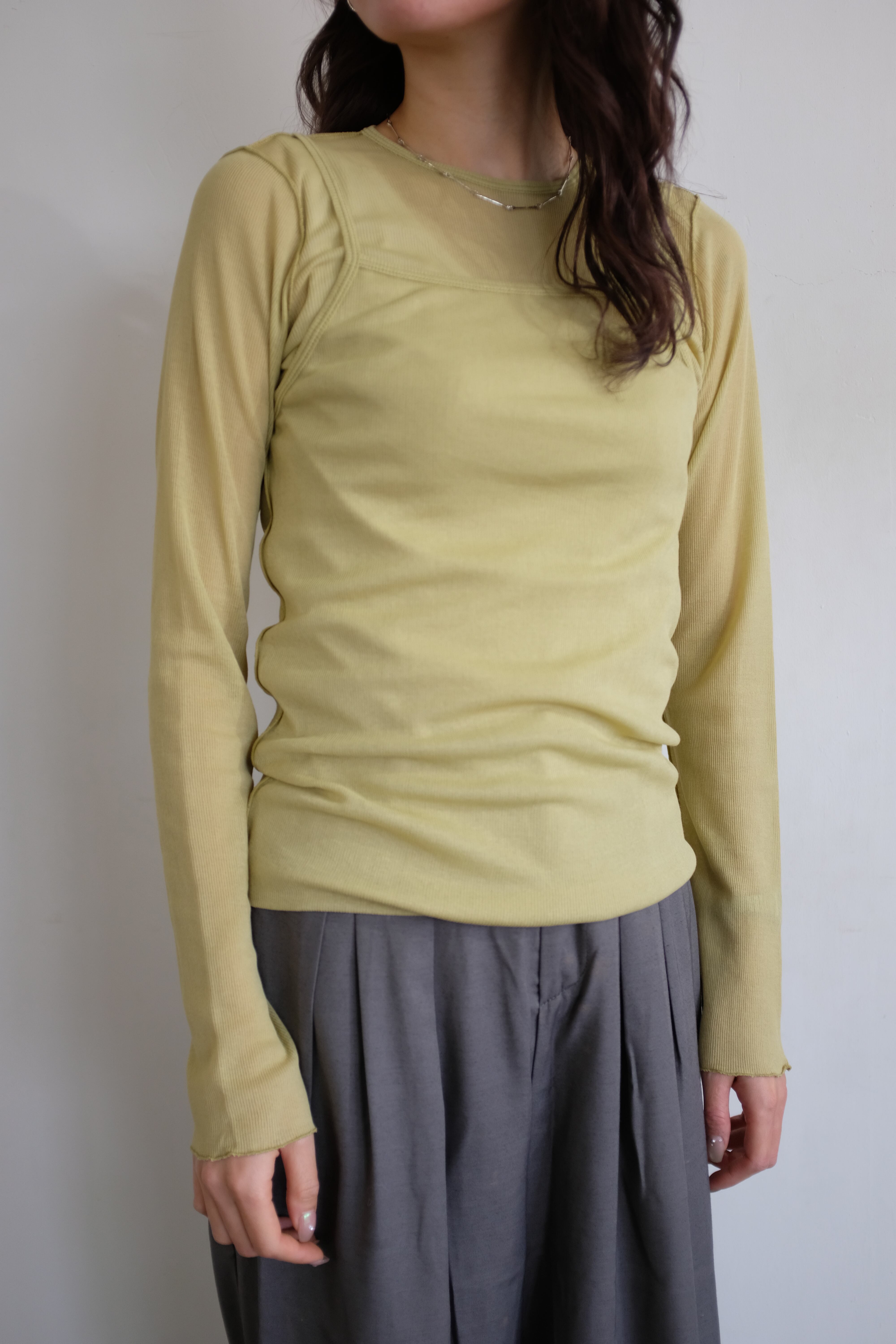 [HAKUJI] Sheer rib layered LS PO / Ivory