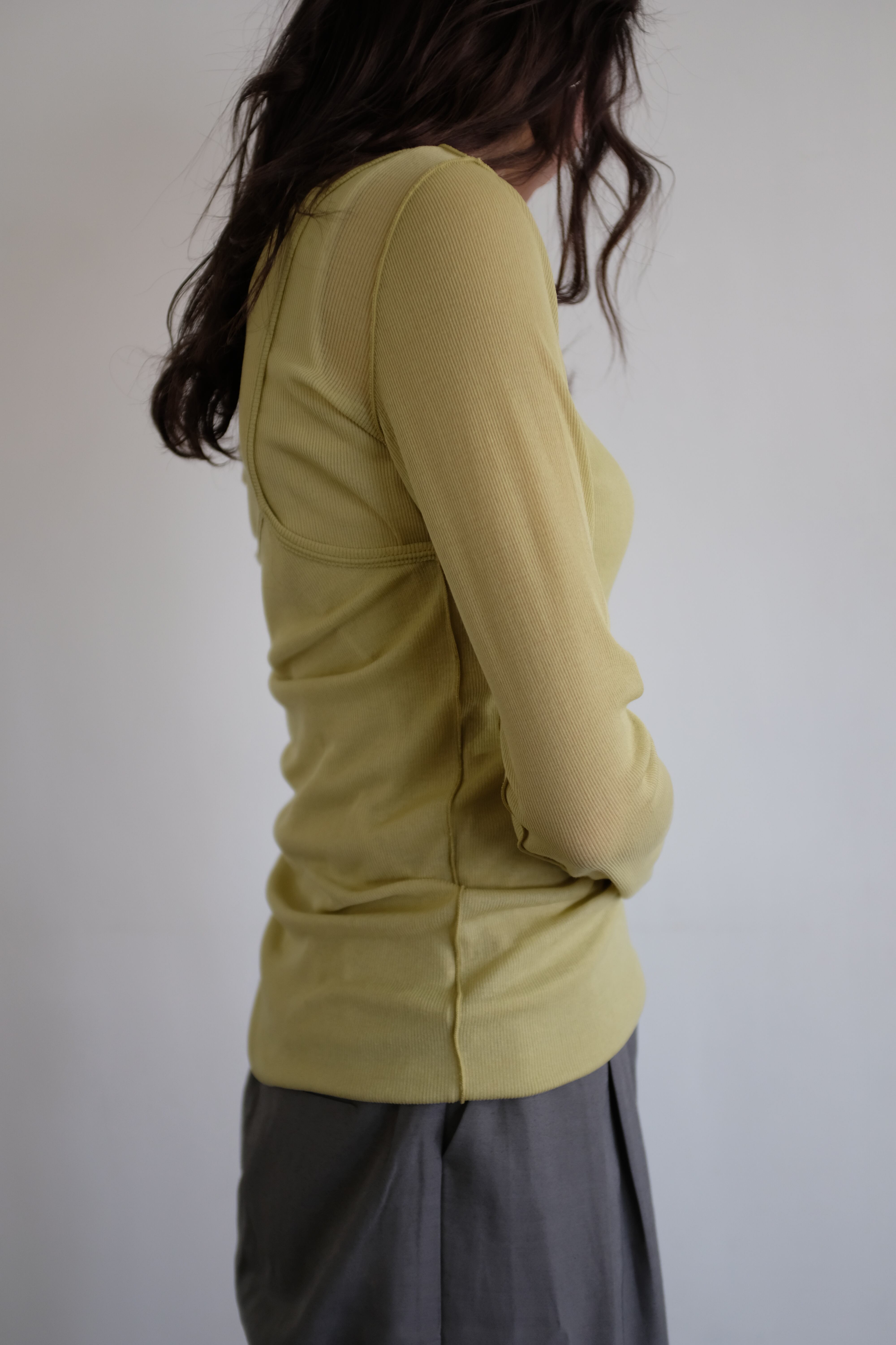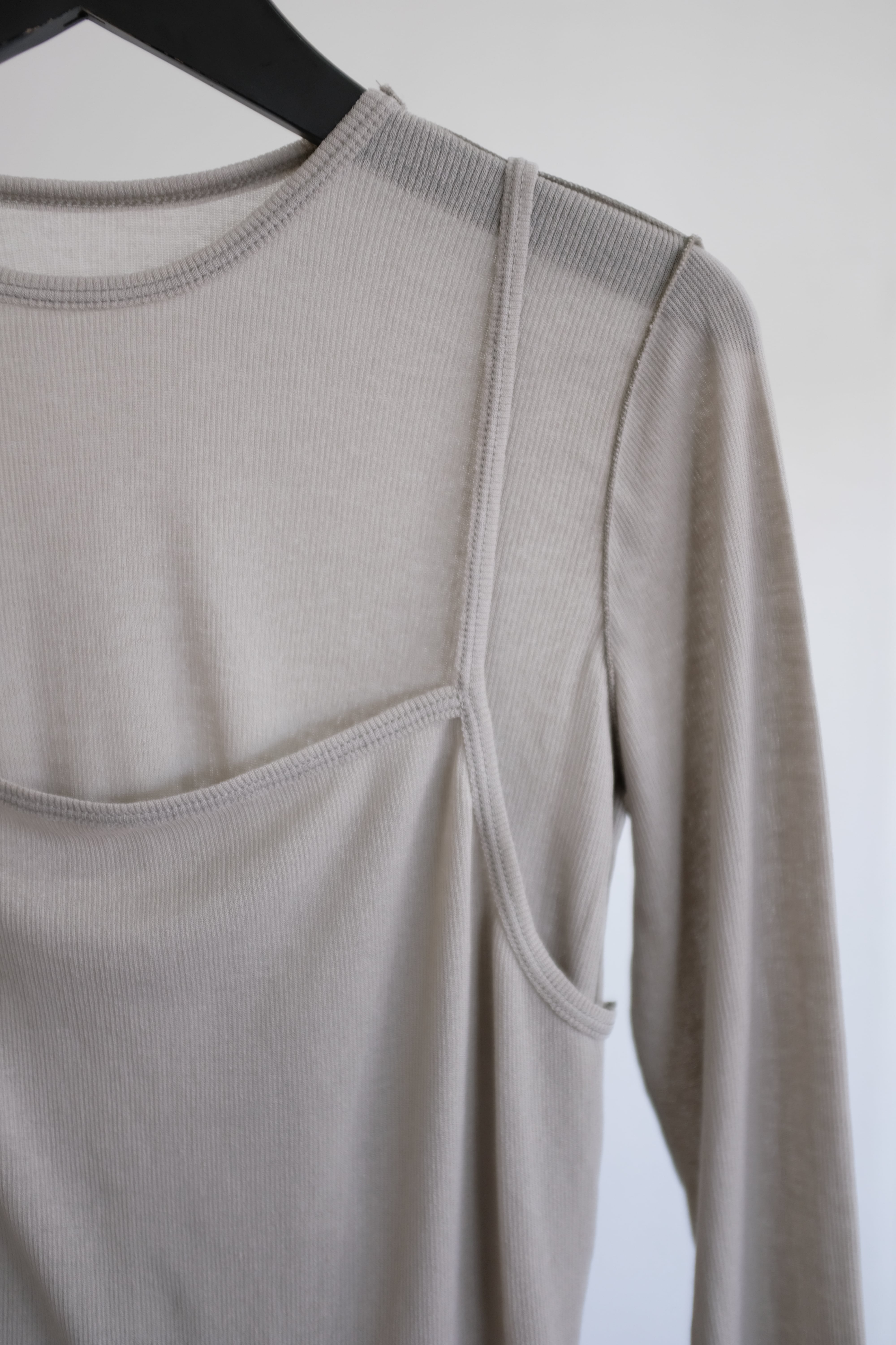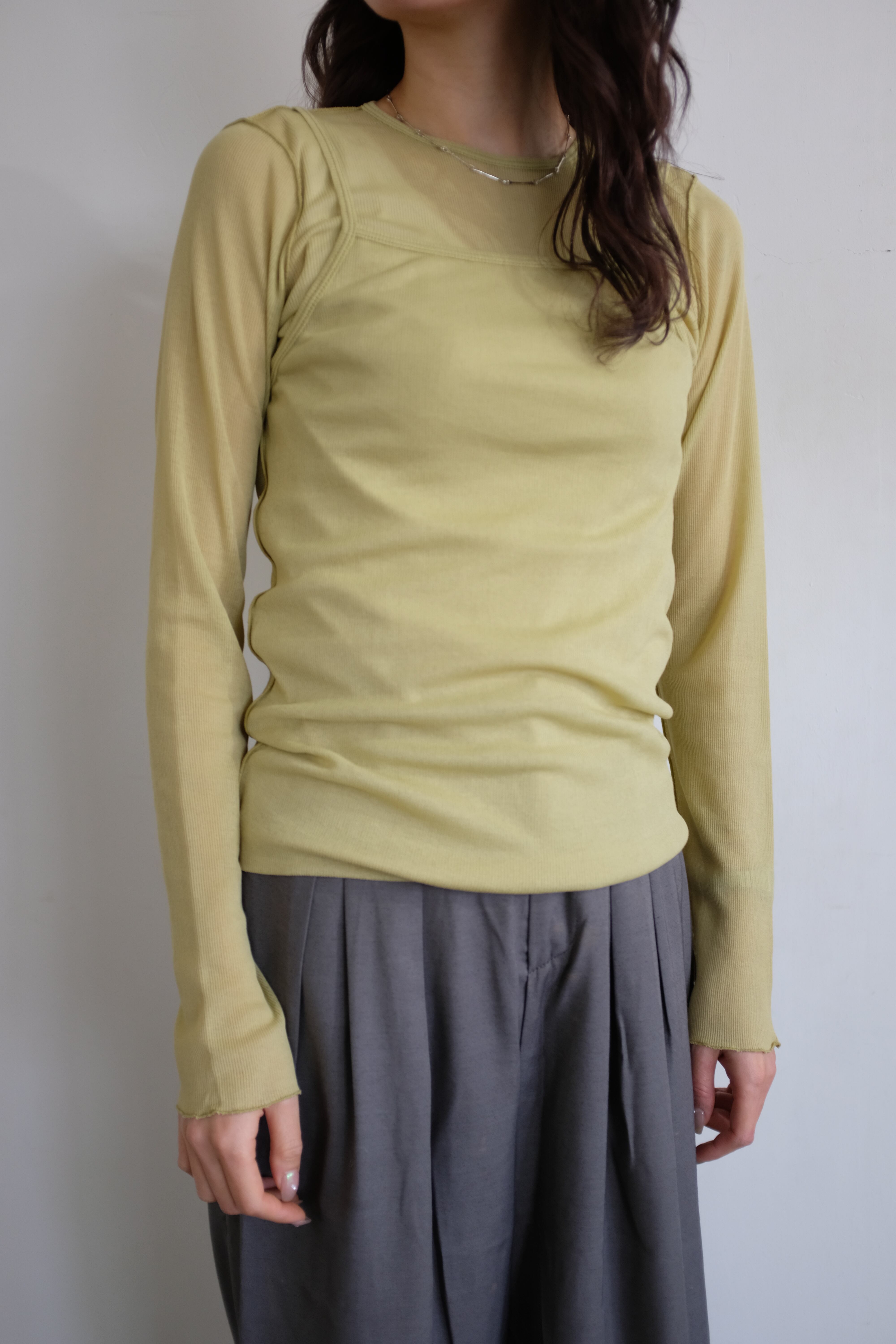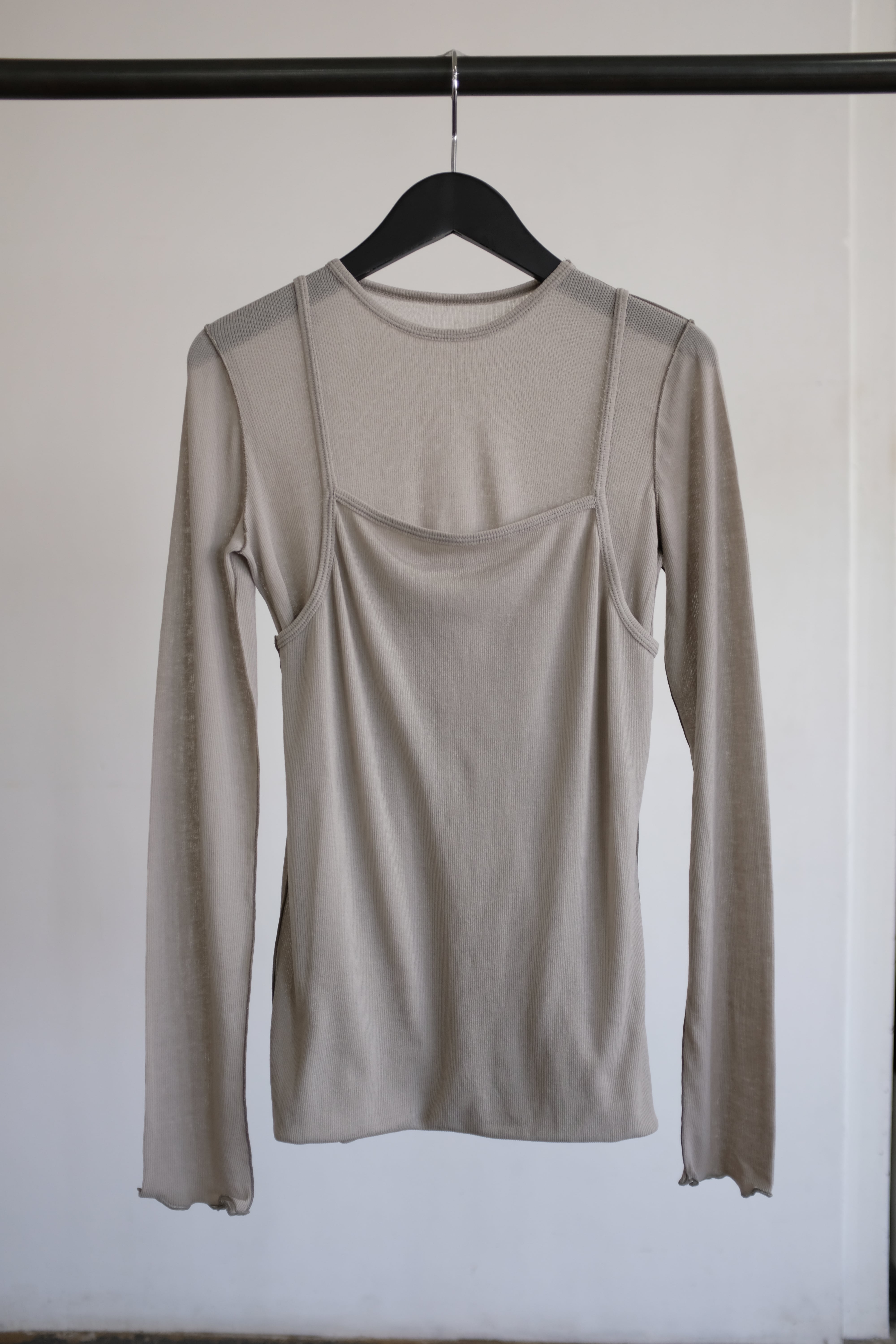 [HAKUJI] Sheer rib layered LS PO / Tan