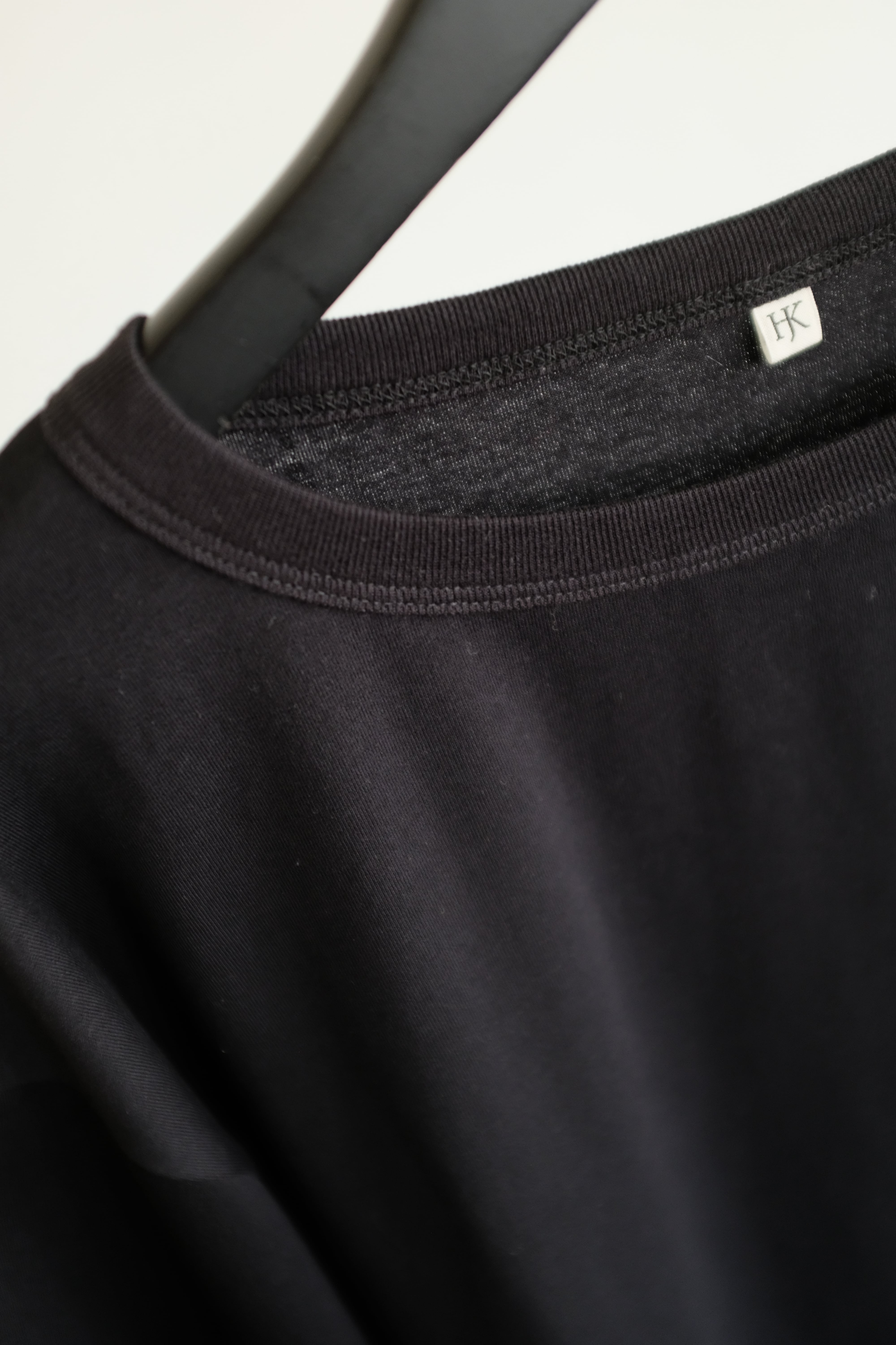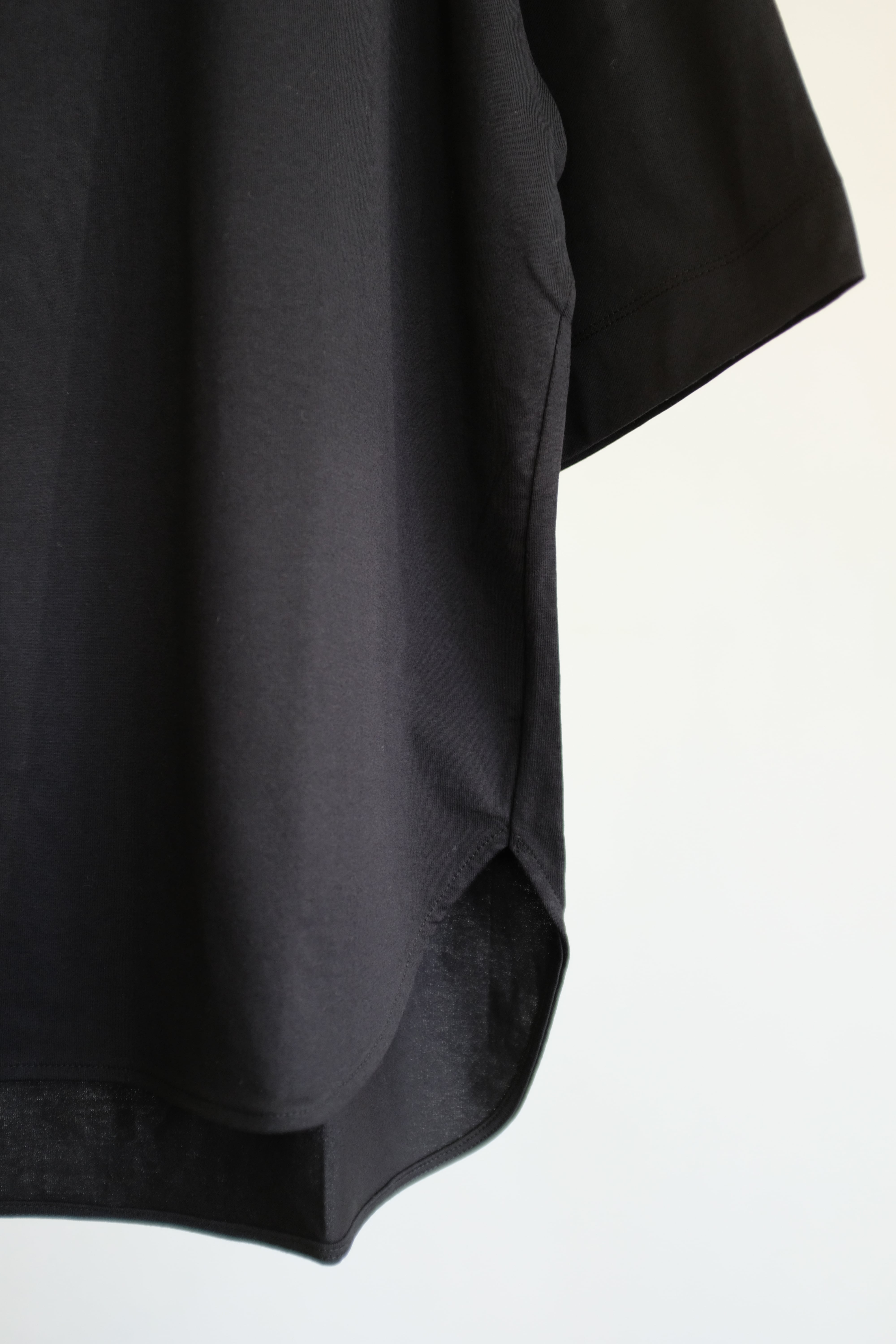 ハリ感がありながらも、しなやかな風合いを併せ持つコットン天竺を使用した5分袖Tシャツ。