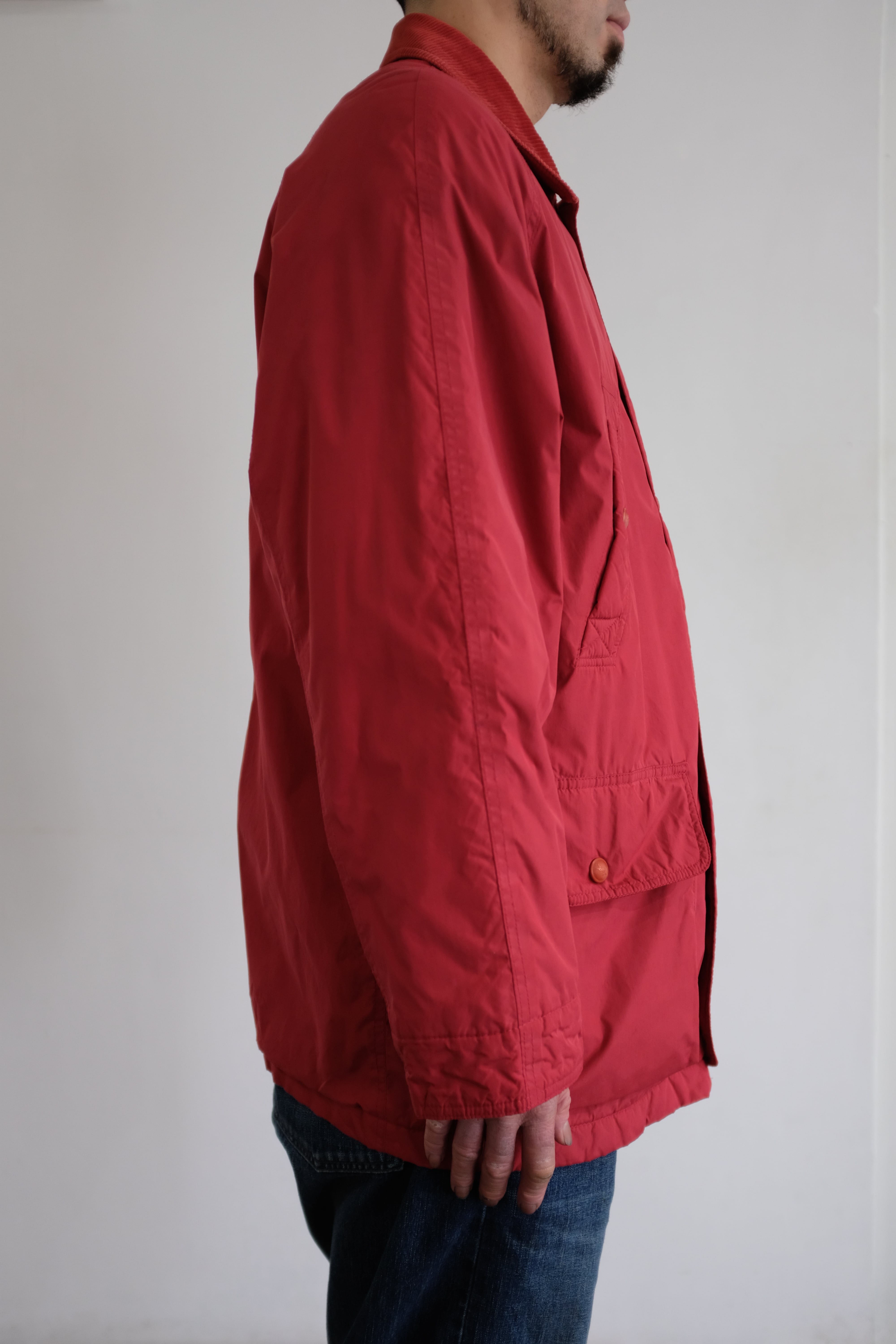 襟はコーデュロイ、フラップポケット、ライナーはコットンネル生地チェック柄。