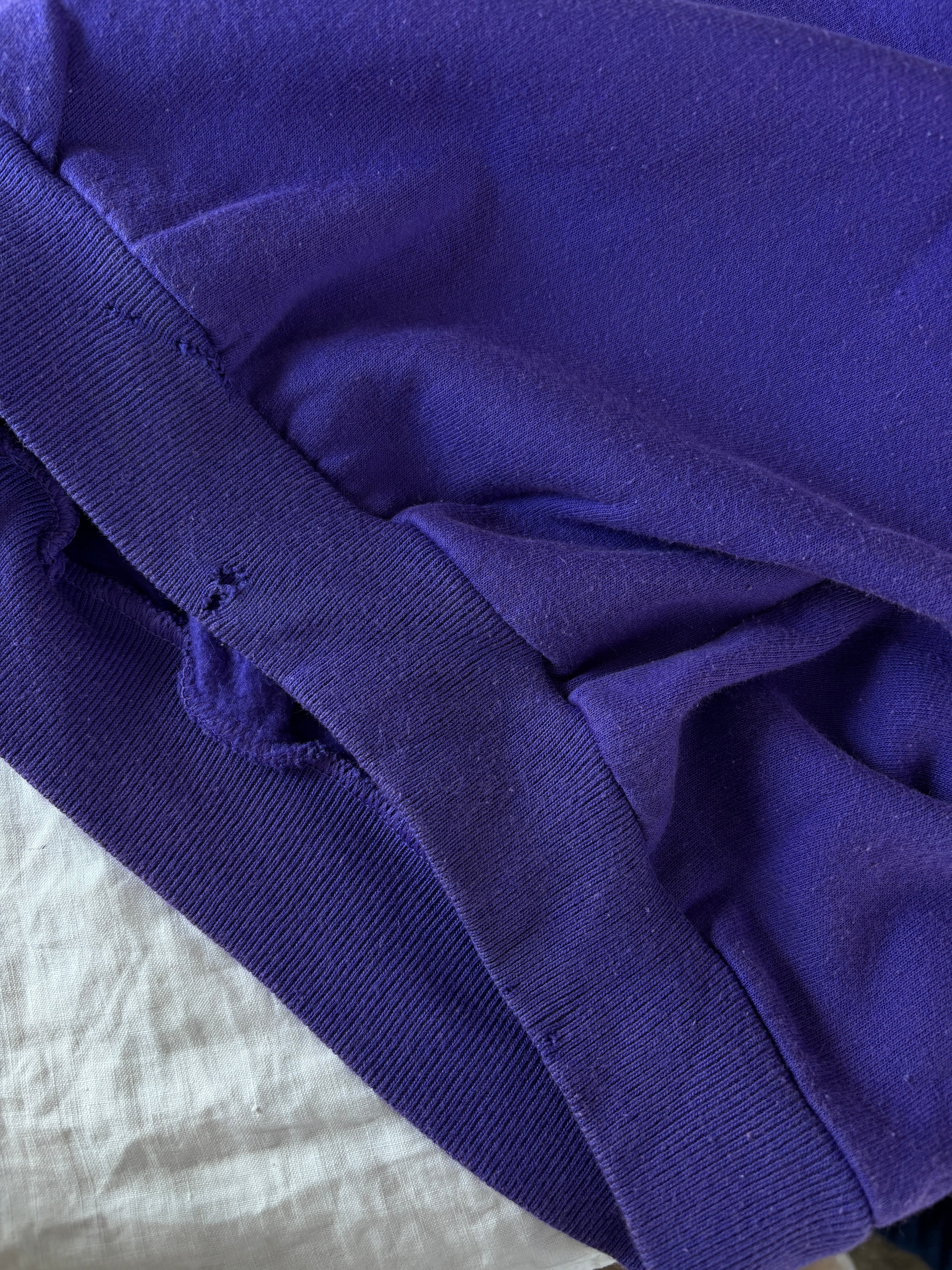 着用感あり、裾リブ後ろ見頃ダメージあり。画像8枚目をご参照ください。