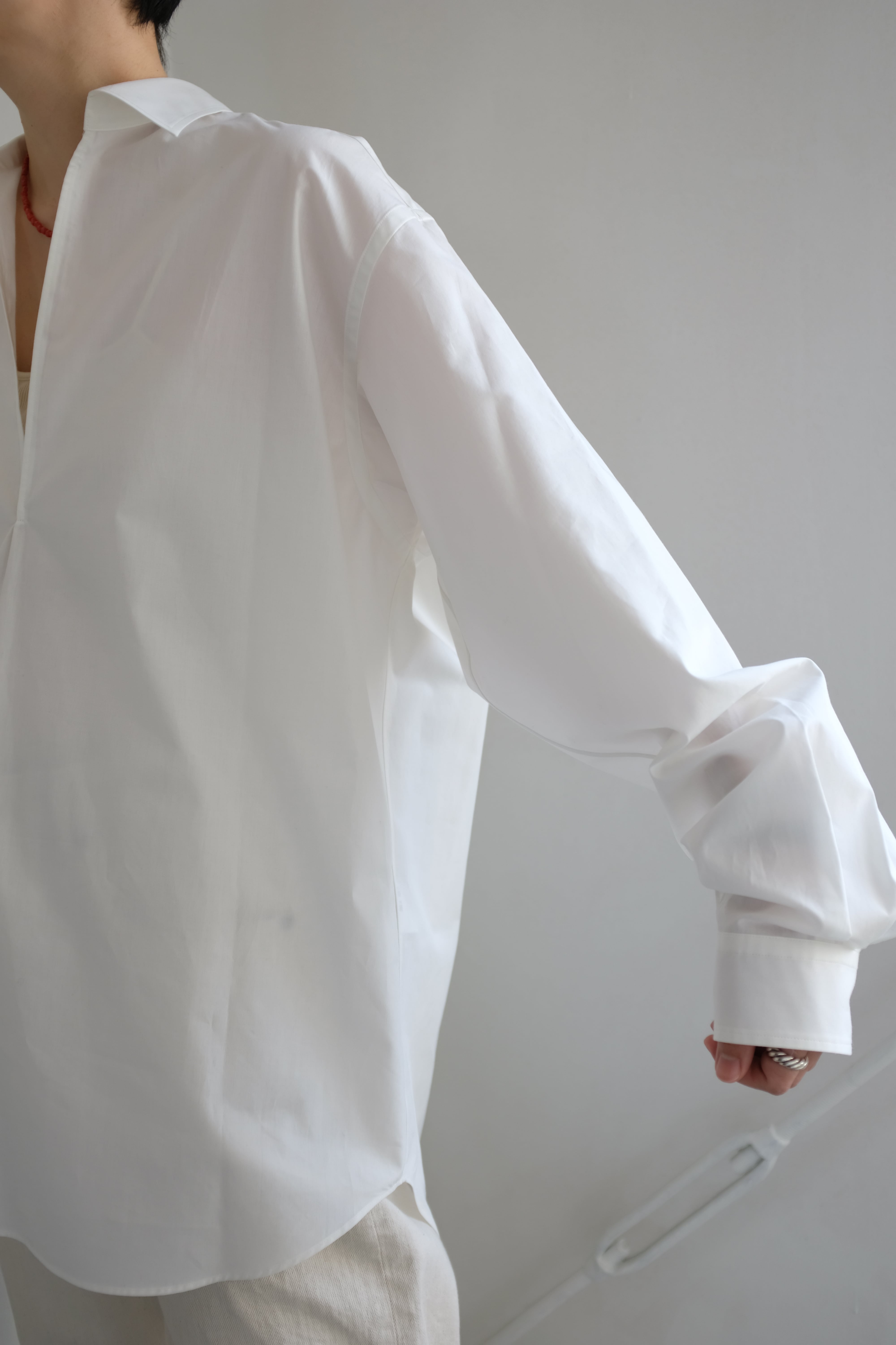 [YLÈVE] COTTON SILK TYPEWRITER SKIPPER SH / WHITE