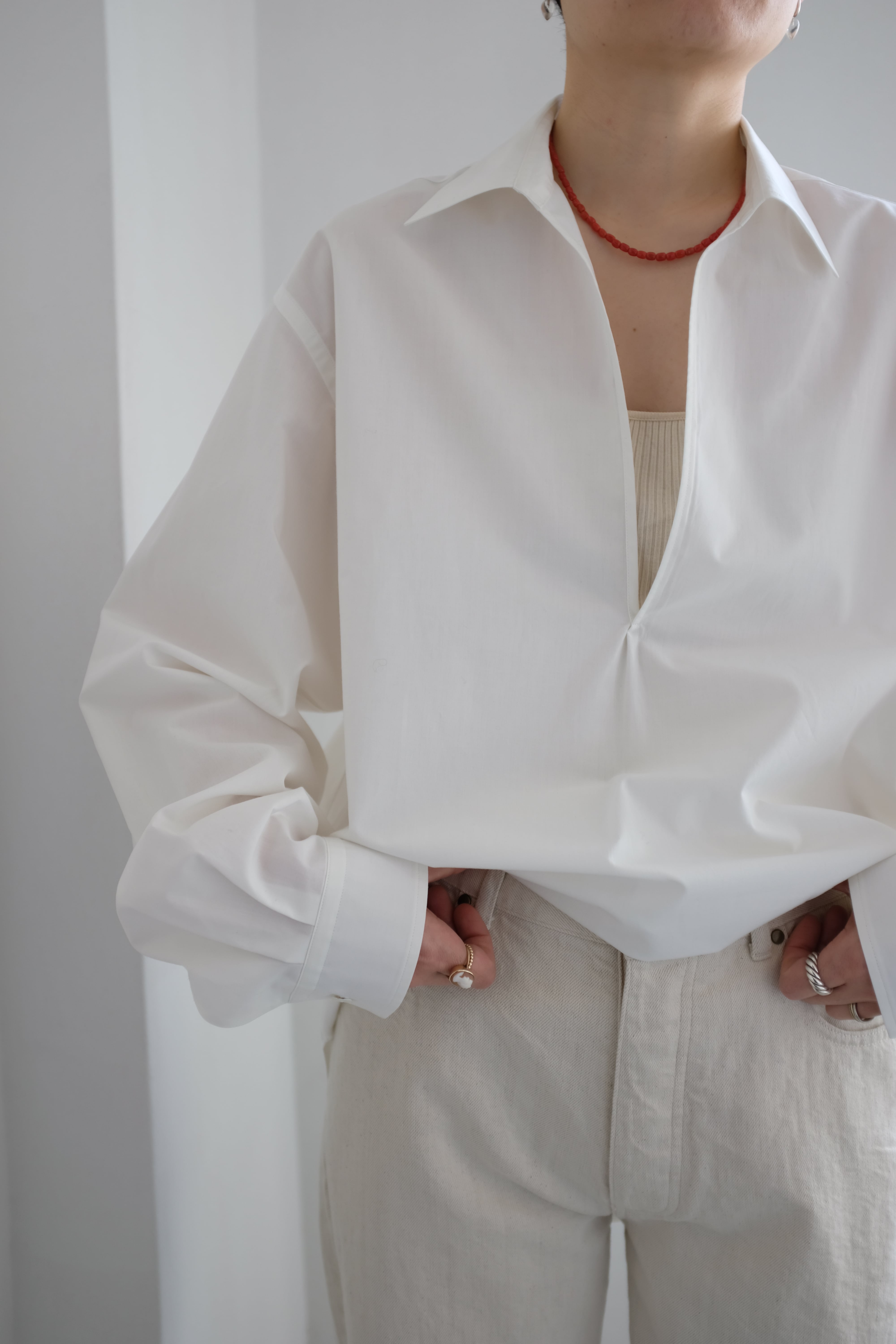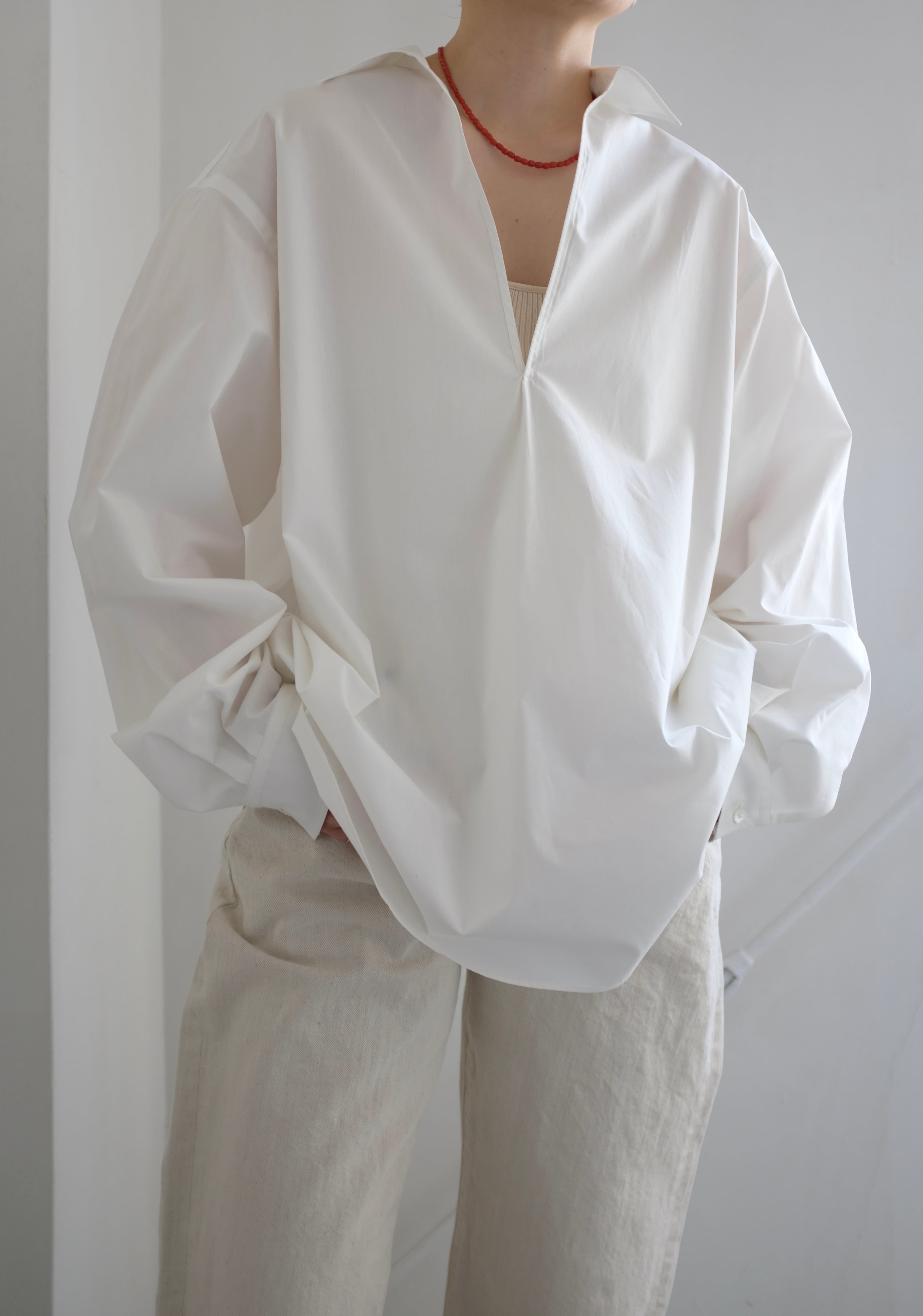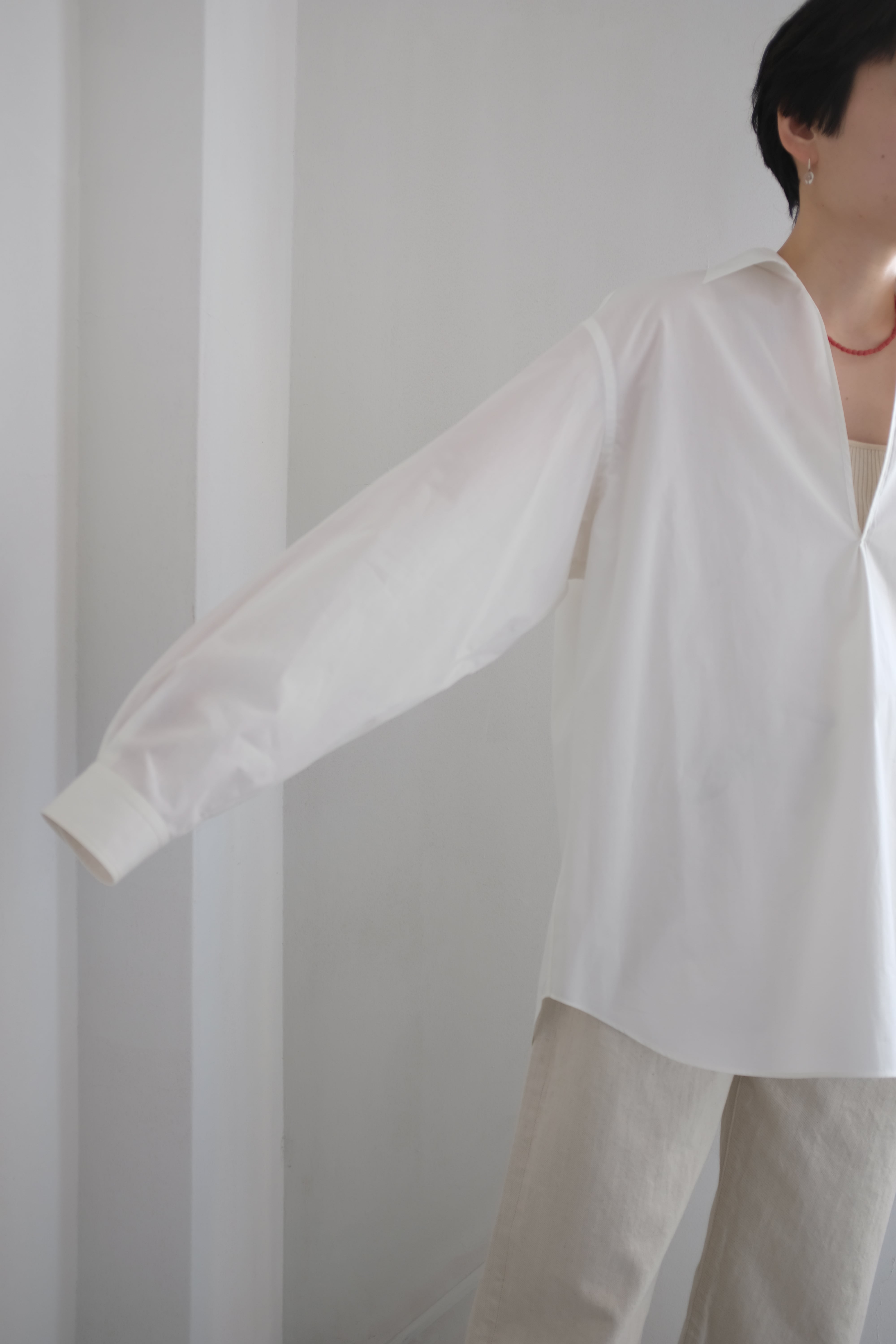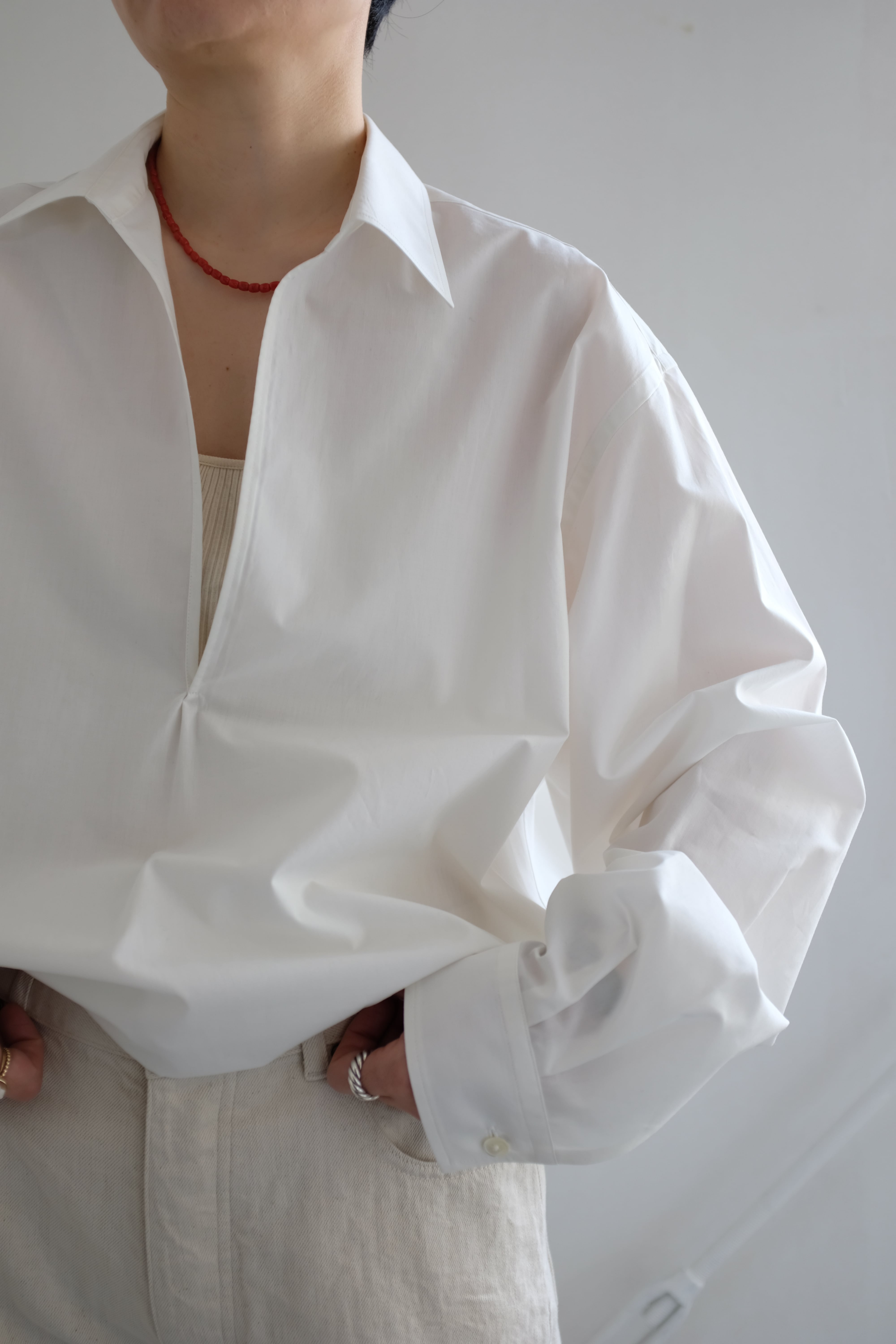 ゆったりとしたサイジングでリラックス感のあるヴァルーズシャツに仕上げています。