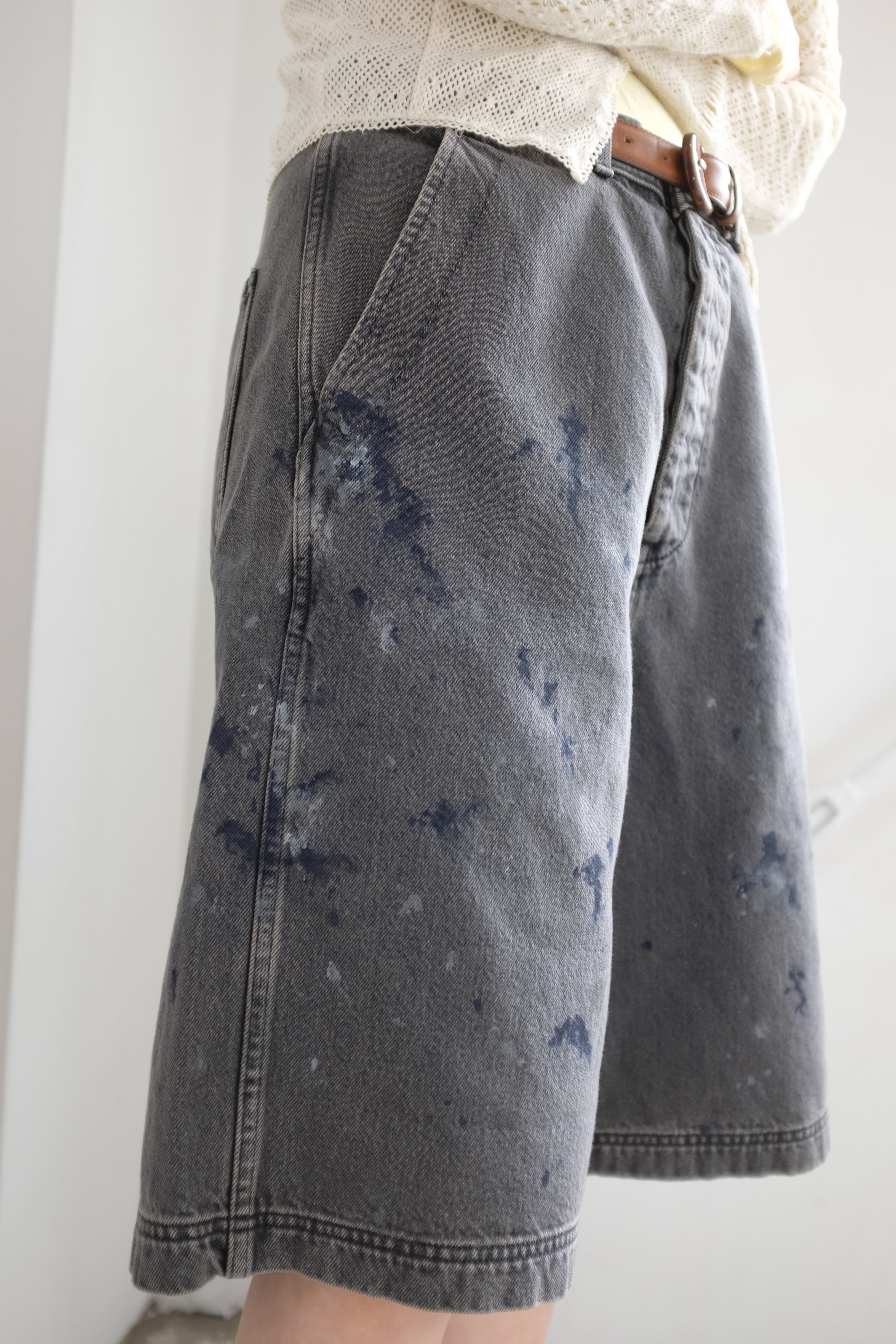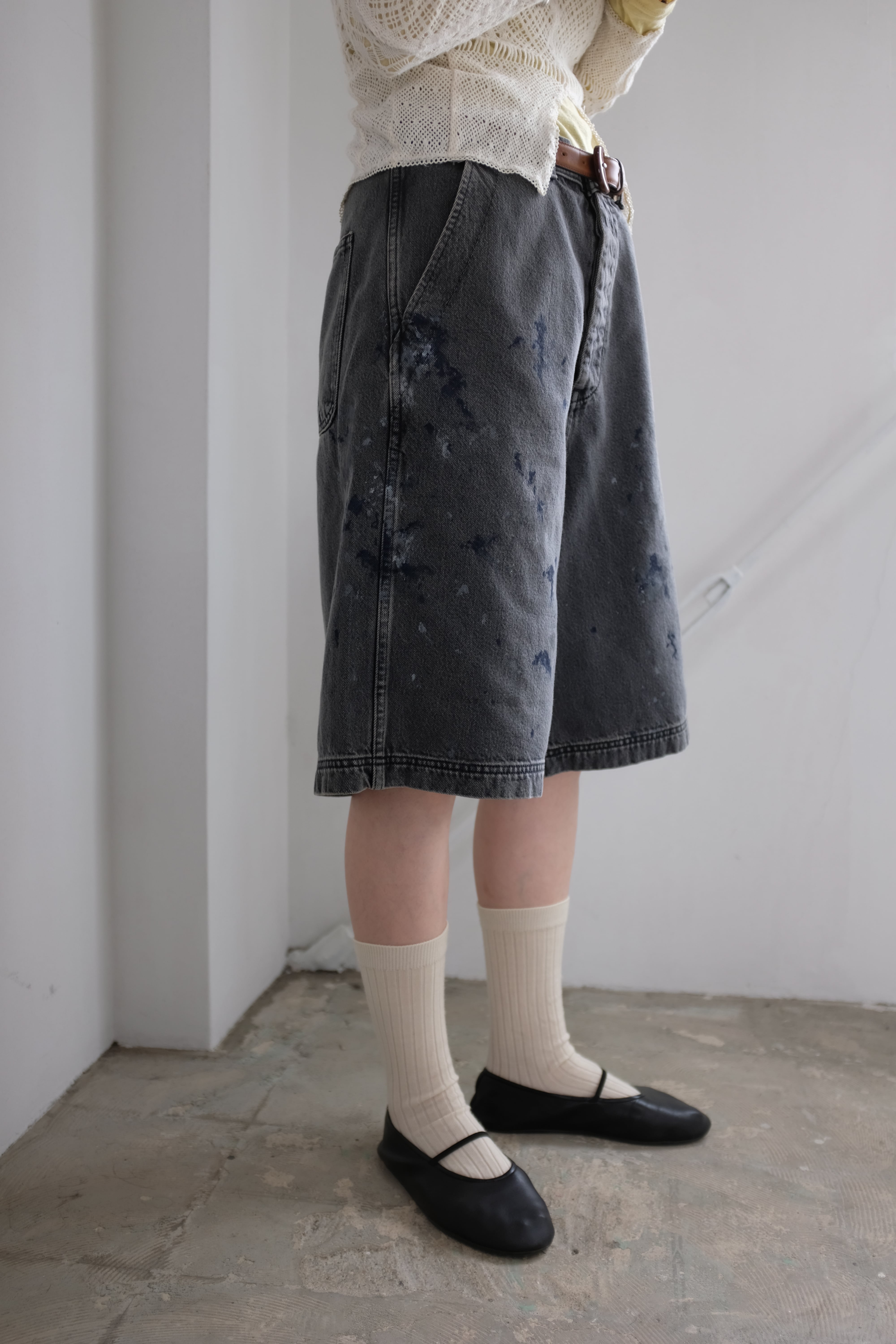[YLÈVE] HAND PAINT DENIM SHORTS / BLACK