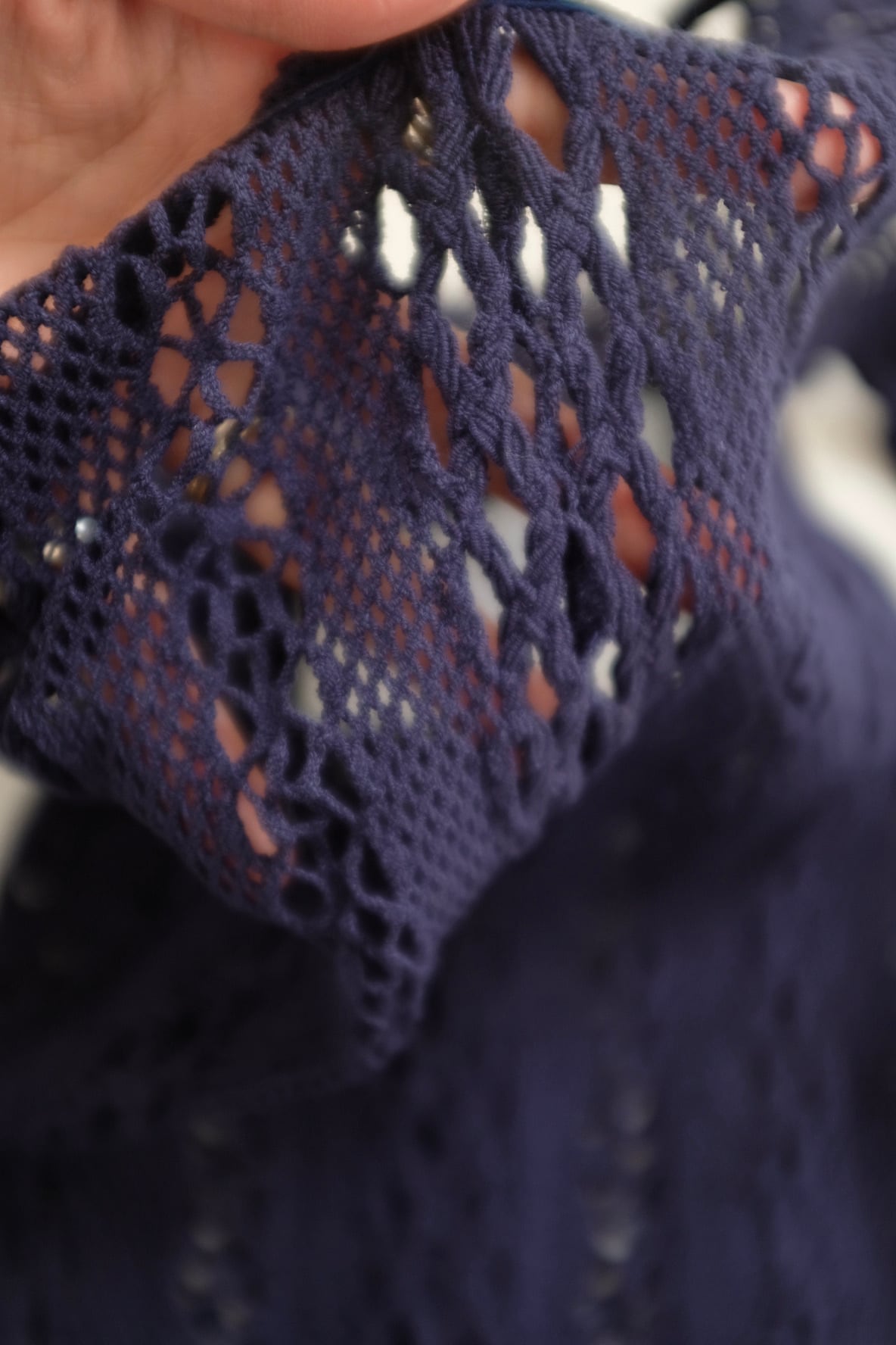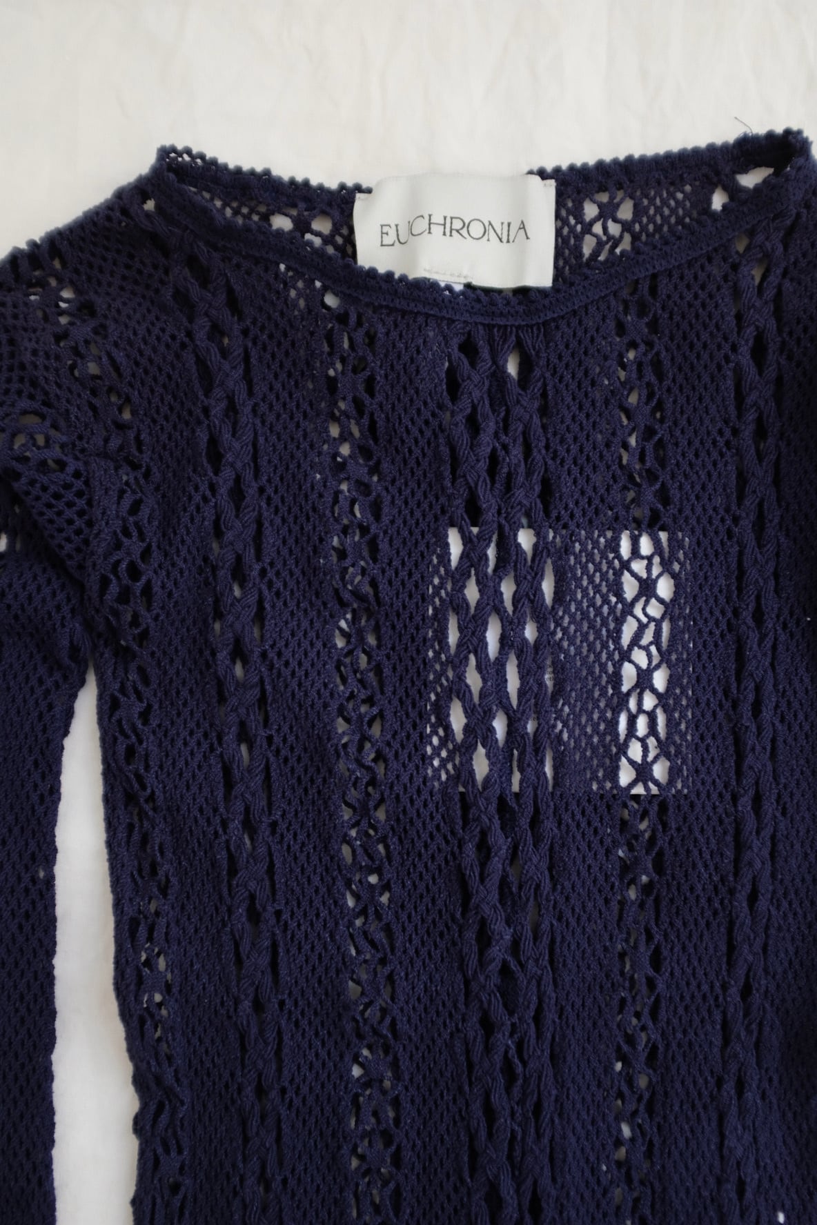 [EUCHRONIA]Strech lace long sleeve tee / Navy