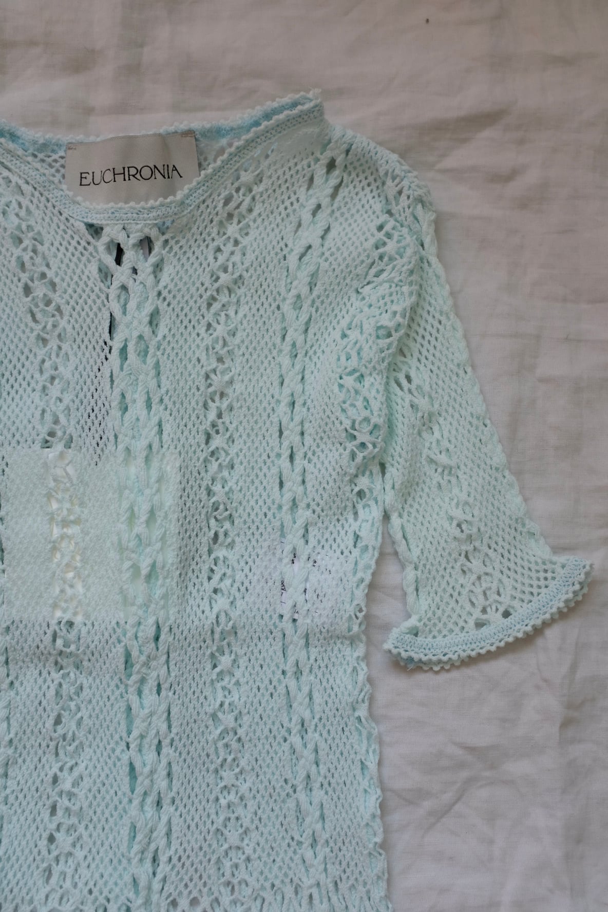 [EUCHRONIA]Strech lace short sleeve tee / pale blue