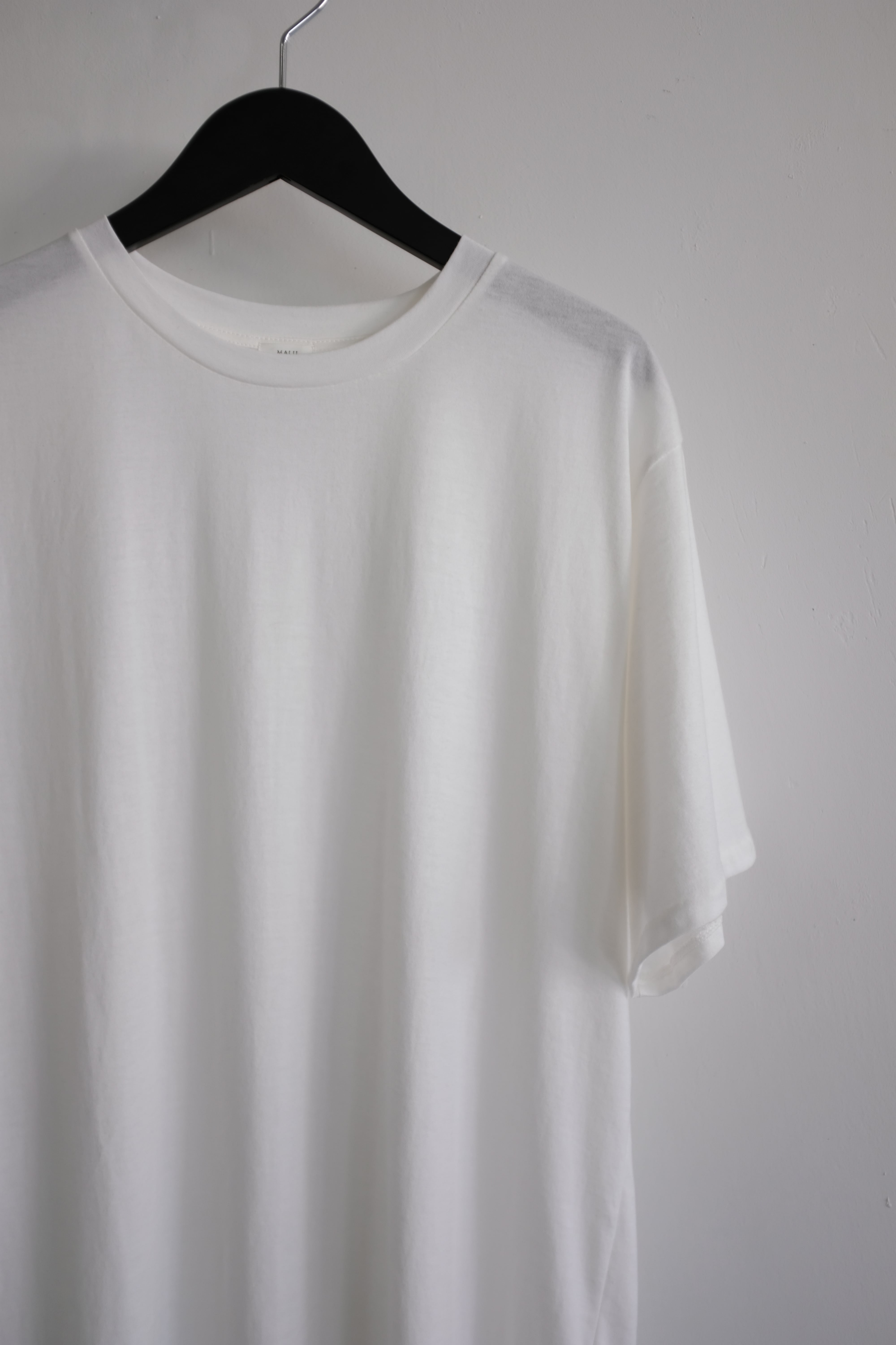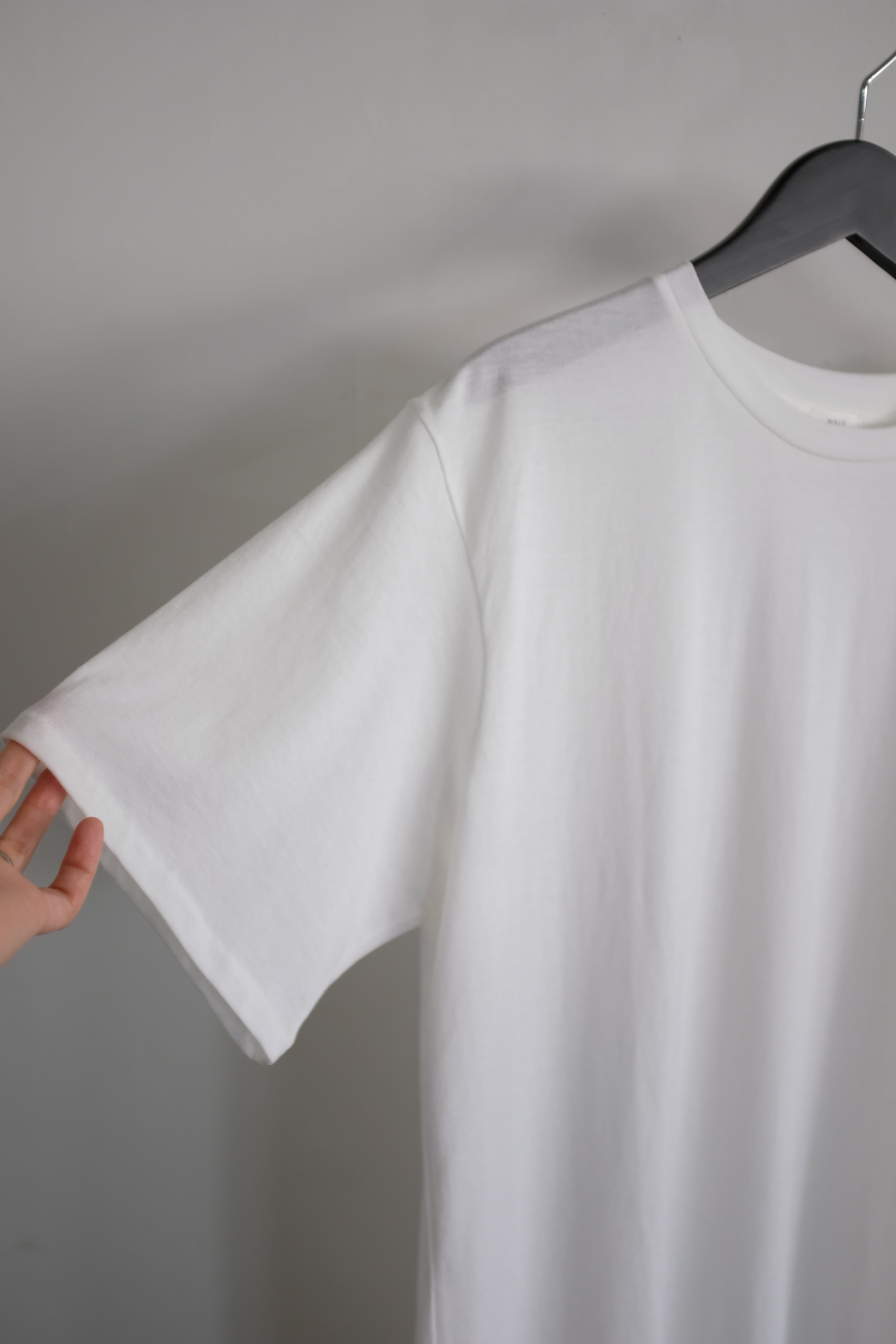 インドのSUVINコットン100%の天竺素材はたっぷりの油分を含み、Sea Island Cottonに比べてしっとりと柔らかな肌触り。170番手の糸を4本撚り合わせ、強さと滑らかさ、均一性を追求した高級糸です。ふんわりと仕上げて、優しい着心地を実現しました。