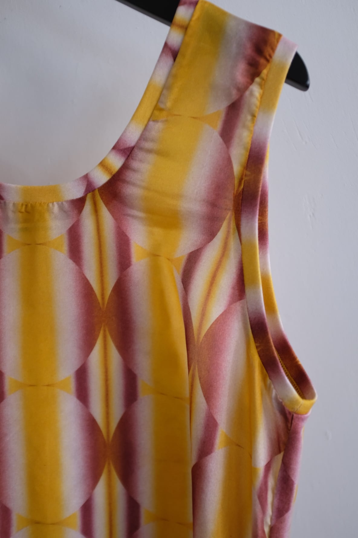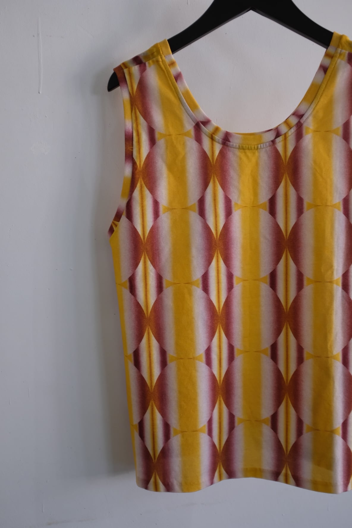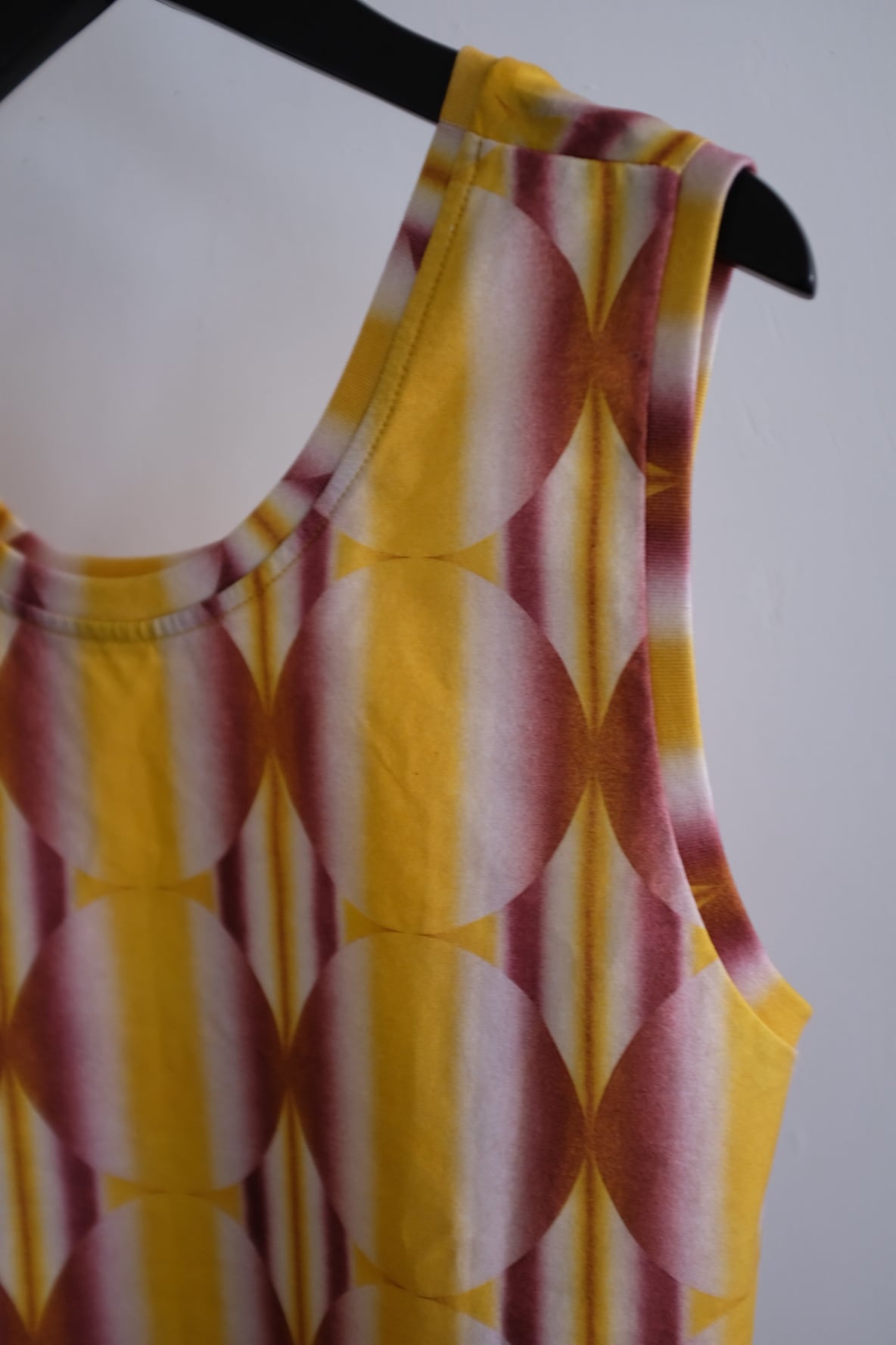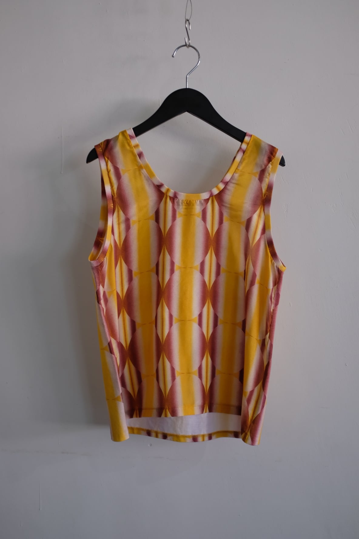 シーズンを象徴する幾何学デザインにグラデーションのような美しいカラーが目を惹くスリーブレスブラウス。