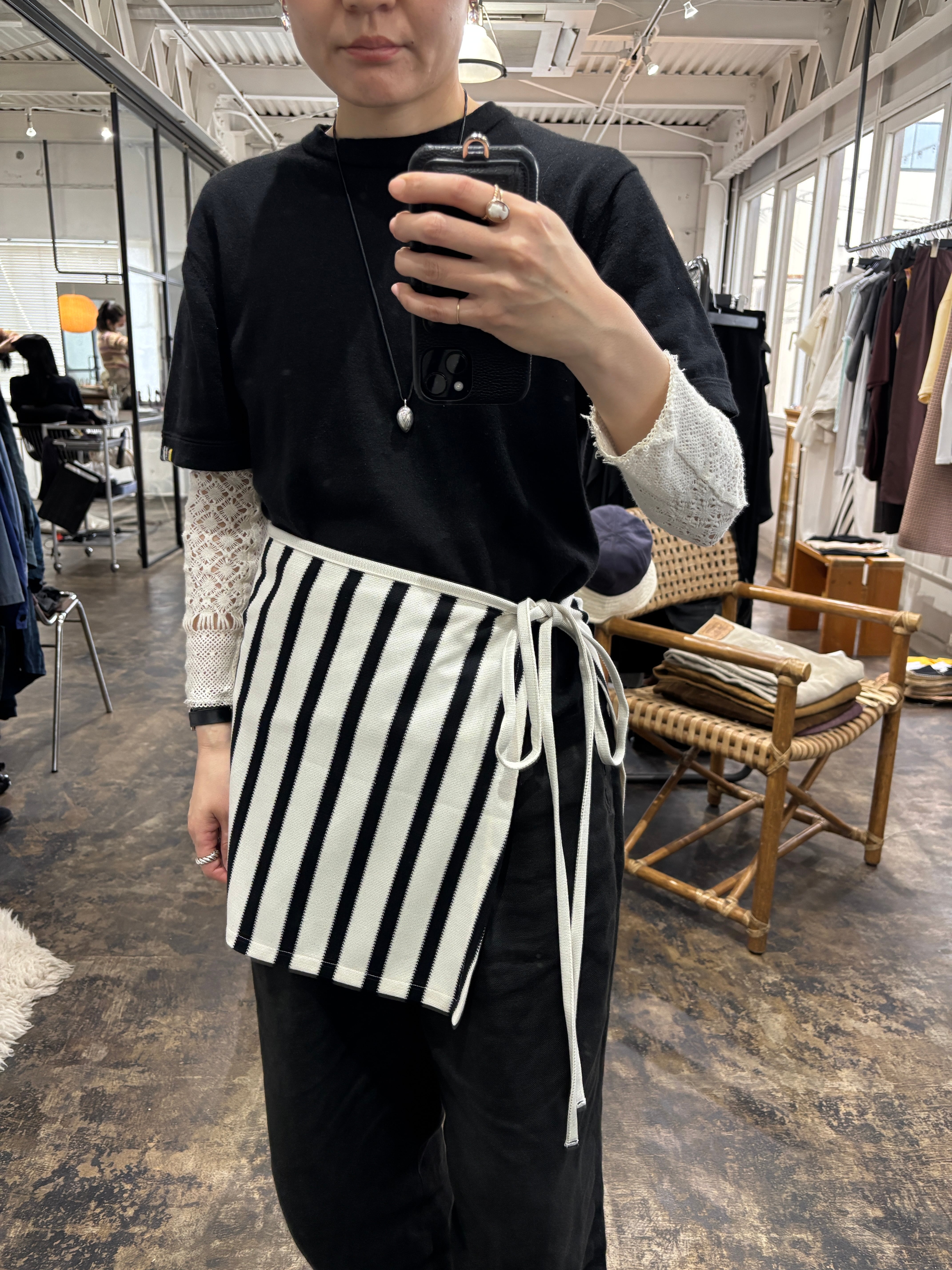 エプロン使いで様々なスタイリングが楽しめます。