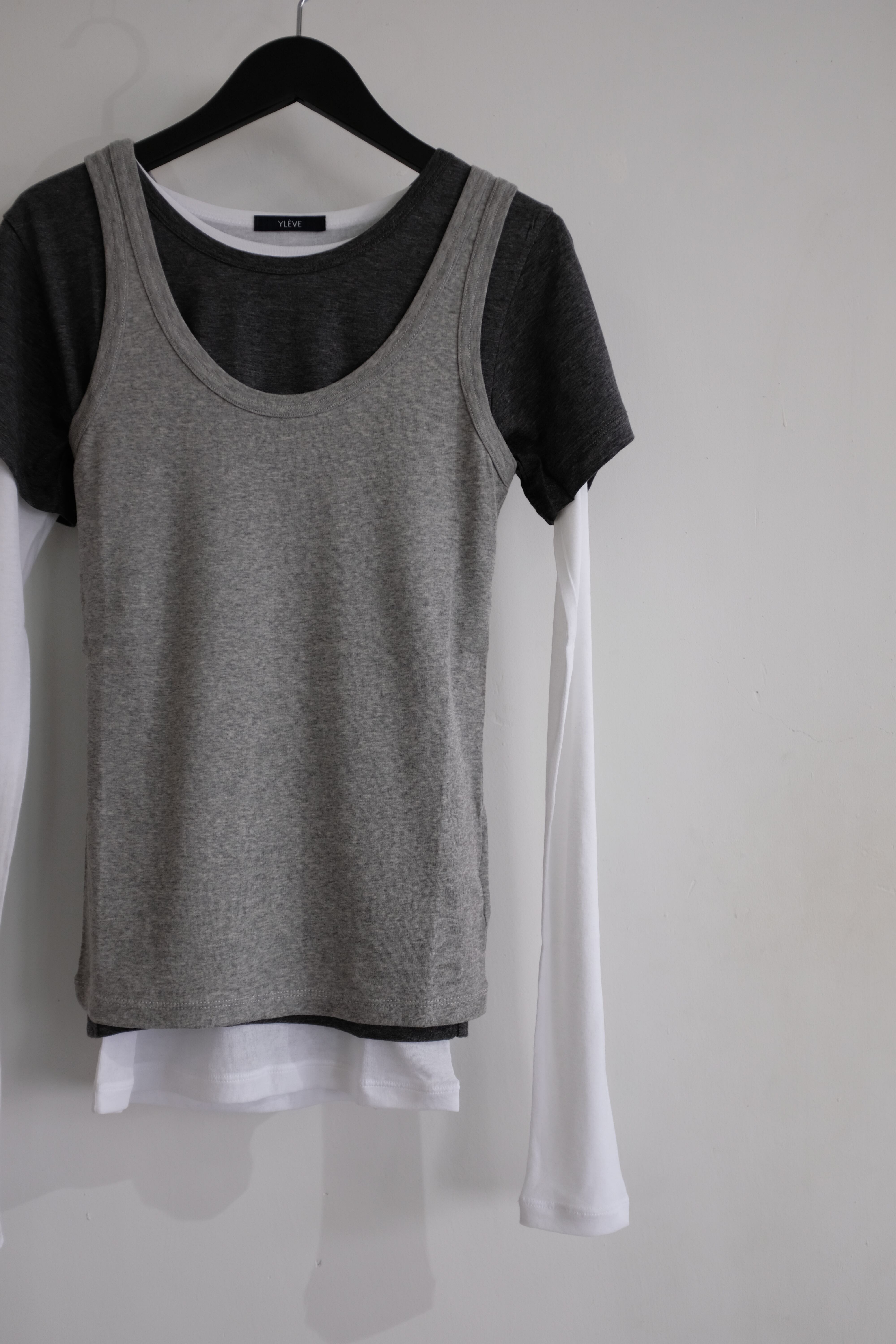 清涼感のある素材をコントラストでレイヤードしたセットアイテムです。